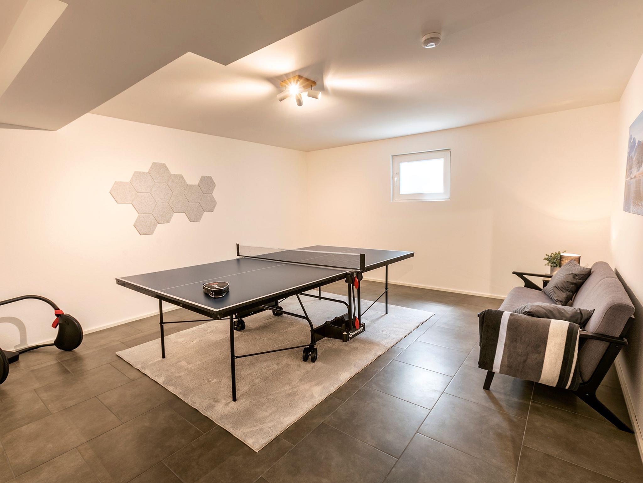Außerdem bietet Ihnen die Wohnung einige Extras im Untergeschoss. Hier im Keller stehen Ihnen eine Tischtennisplatte, ein Leseraum, eine Waschmaschine und ein Fitnesseck zur Verfügung.