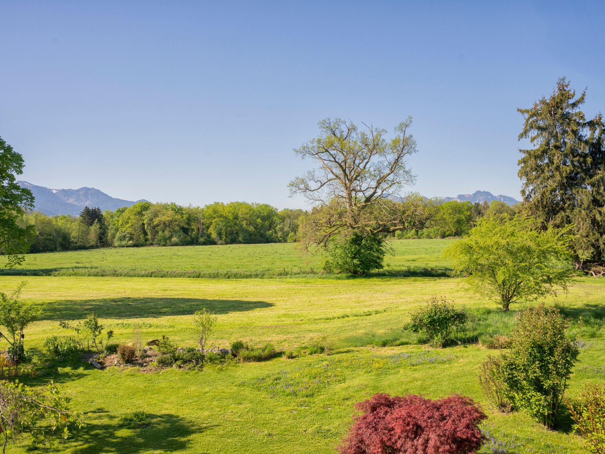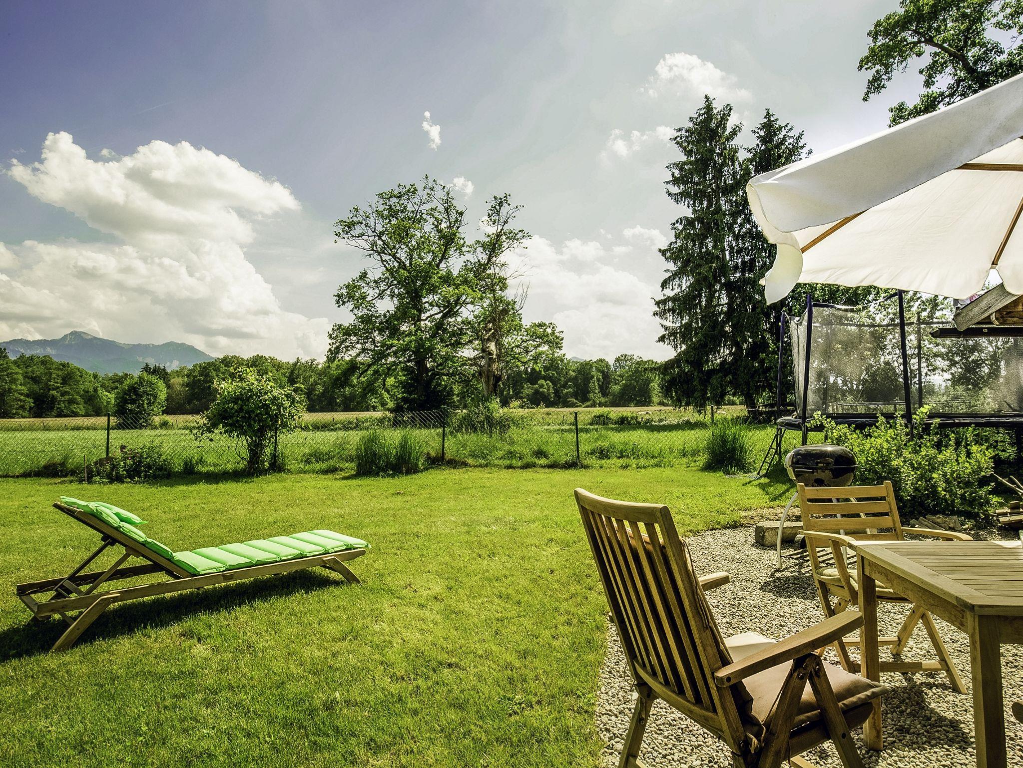 Erholen Sie sich in unserer 5 Sterne FeWo Chiemsee Sonne mit 180 Grad Bergblick, Garten und Sauna in einer Top Lage: Nur 2 Kilometer vom Chiemsee. Die FeWo verzaubert mit südlichem Ambiente und ist mit viel Liebe zum Detail eingerichtet, so dass Sie sich gleich vom ersten Tag an wohlfühlen. Mit wunderschönem Blick über das Naturschutzgebiet in die Berge. Zur FeWo gehört eine Sauna, ein großer Garten mit Grill, Sonnenliegen und einem Trampolin. Vor Ort werden Sie von unserer Verwalterin persönlich begrüßt.