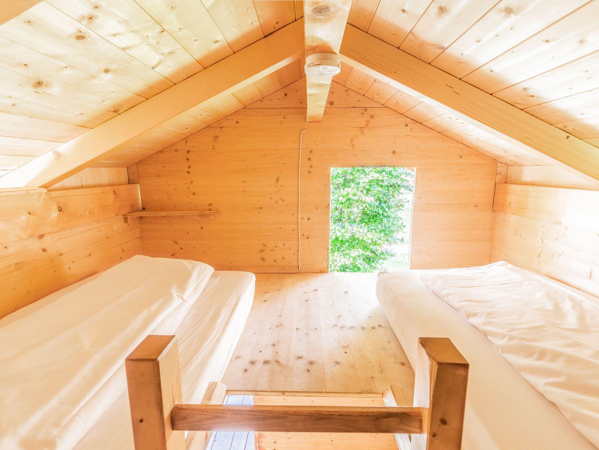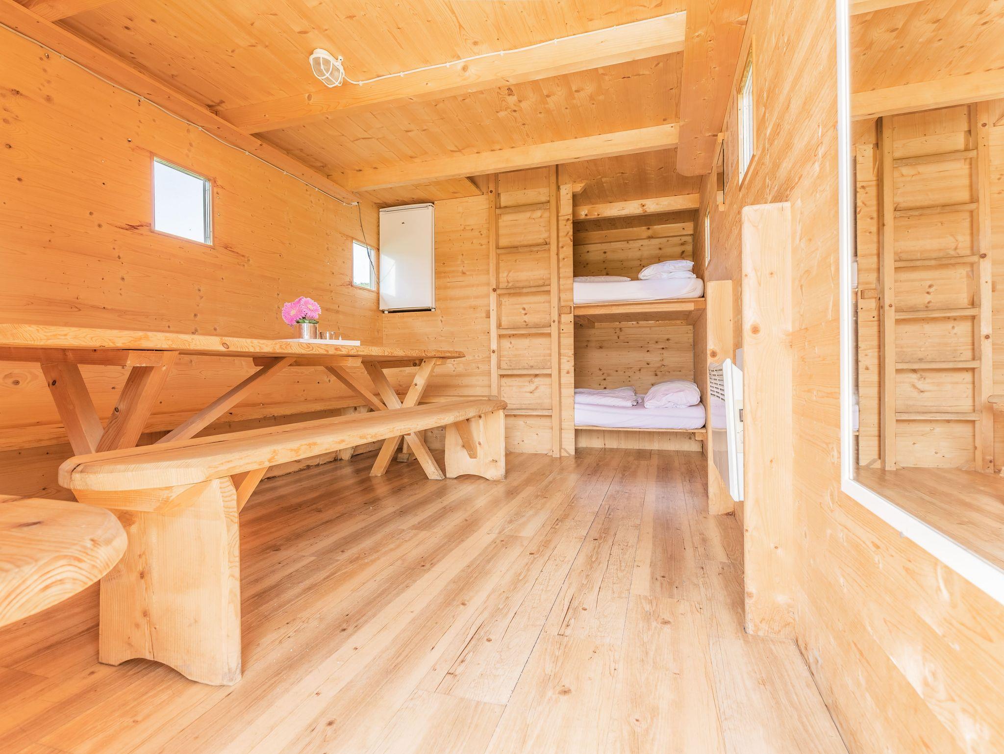 Die Holzhütten gibt es in drei verschiedenen Größen und sie sind alle mit Bettwäsche, Heizung und Kühlschrank ausgestattet. Jeder Wohnbereich ist mit einer kleinen gemütlichen, heimisch hergestellten Sitzecke eingerichtet. Frühstück kann auf Wunsch bestellt werden.