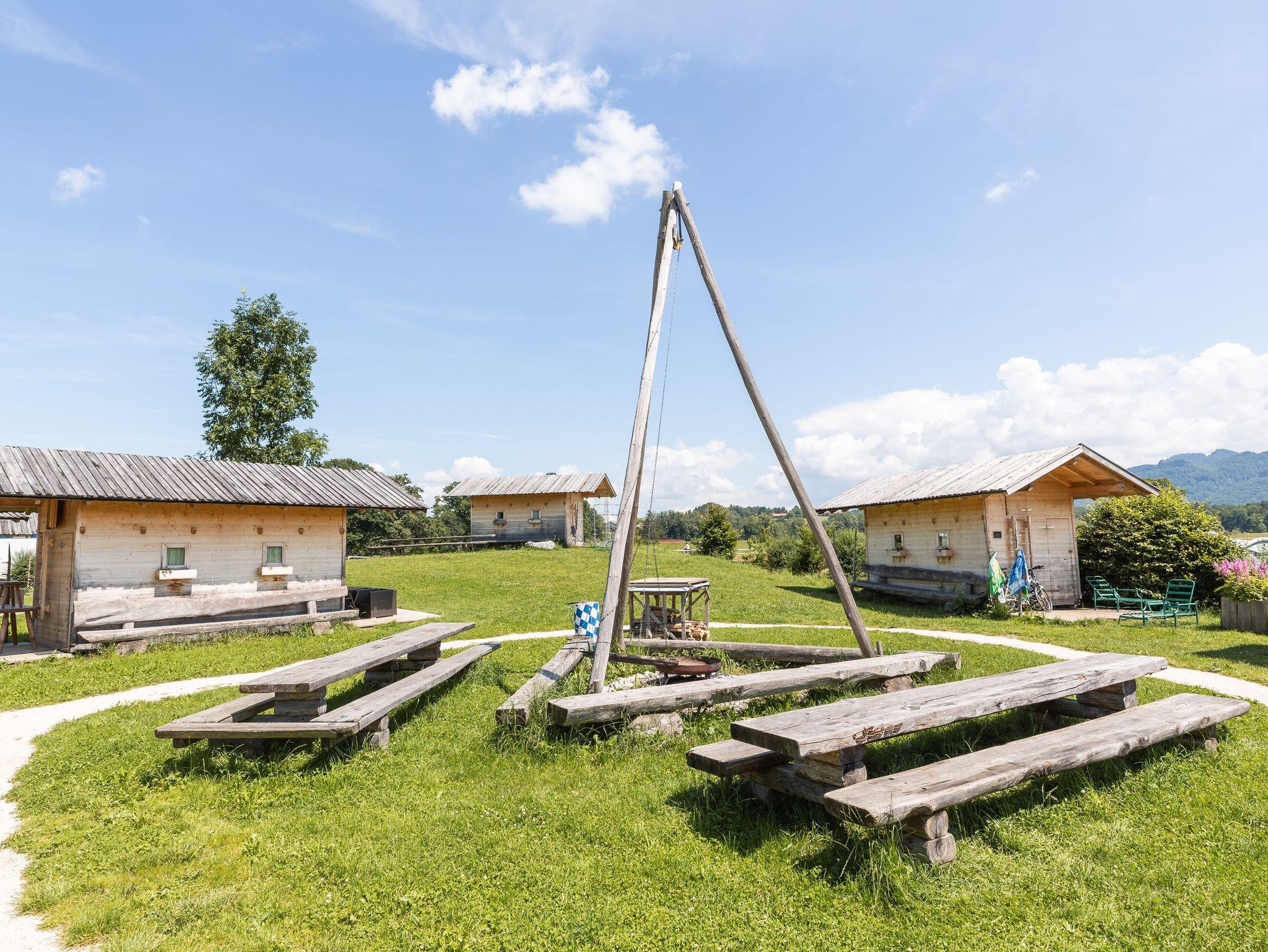 Vor dem Almhüttendorf gibt es schöne Grünflächen, die als Liegewiese dienen und große Massivholz-Sitzgruppen, die zum Picknick einladen. Am Abend können wir auf Wunsch Feuerholz zur Verfügung stellen, damit Sie grillen oder Ihren Tag am romantischen Lagerfeuer ausklingen lassen können.