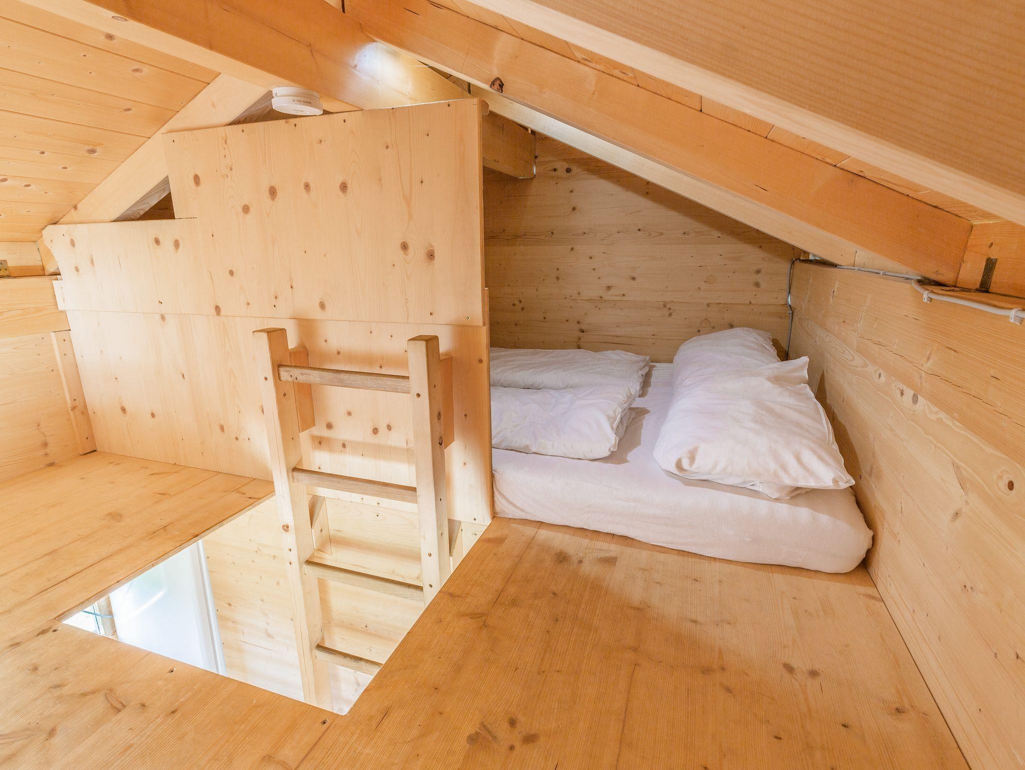 Ausstattung auf 2 Etagen: Die Almhütte Hochfelln ist ausgestattet mit 5 Doppelbetten, Bettwäsche - Bettdecke und Kissen, Heizung, Strom, Kühlschrank. Die Sanitären Anlagen befinden sich in der extra Waschhütte auf dem Gelände. Diese ist ausgestattet mit wassergespülten Toiletten und Duschen. Die Almhütte für maximal 5-10 Personen ist bis zu 3 x verfügbar