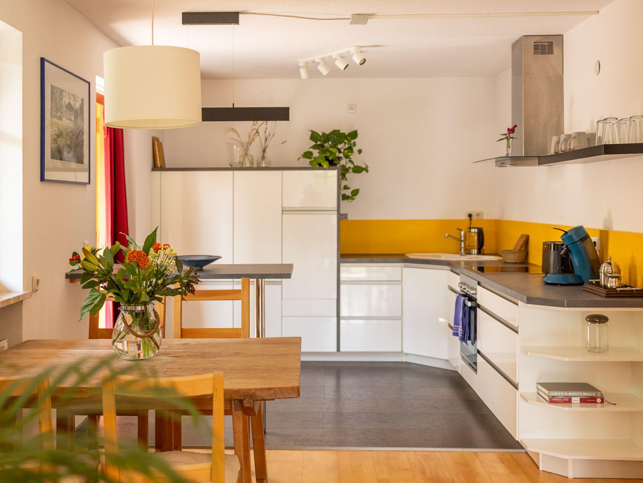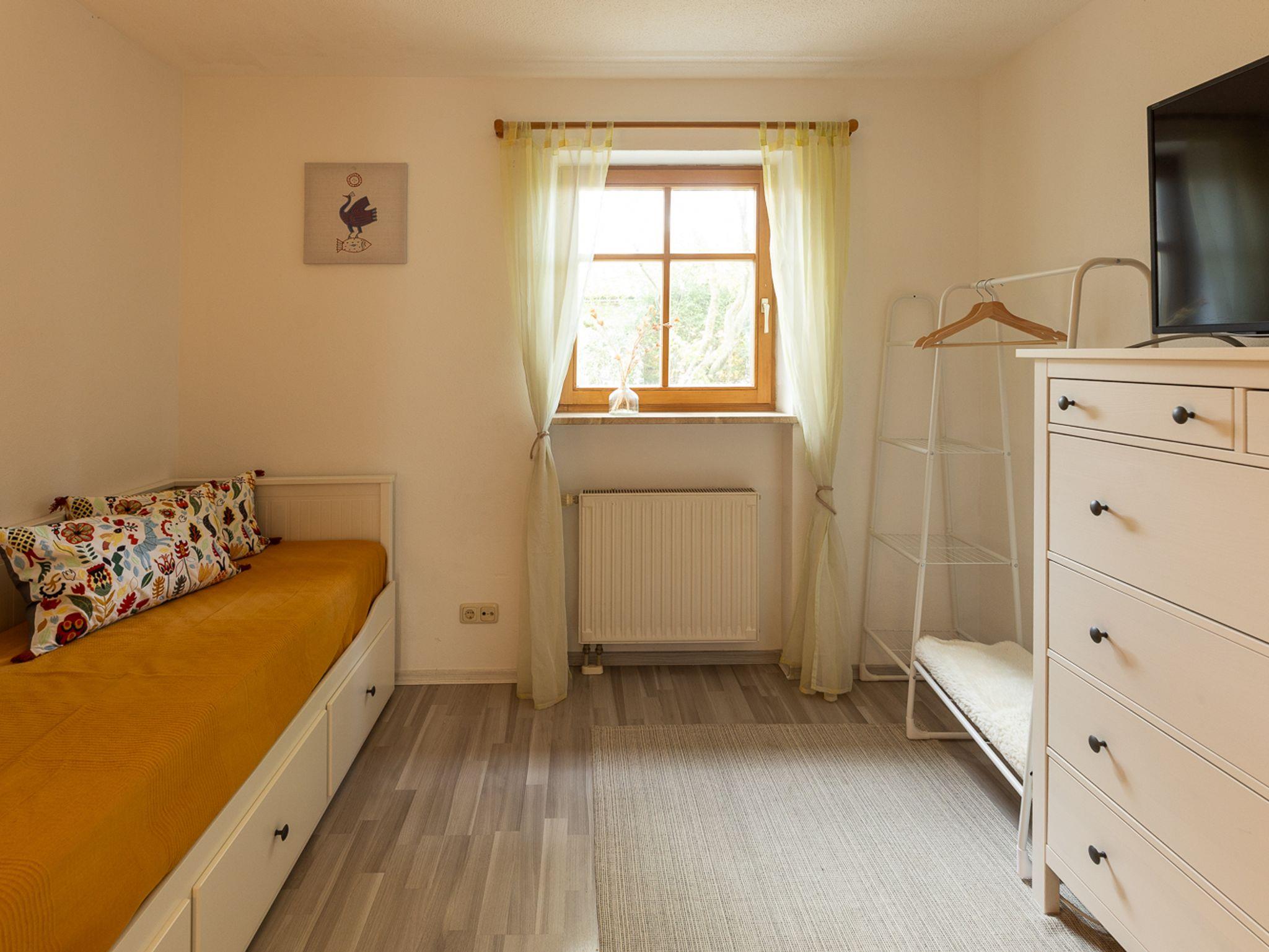 Großzügige drei Zimmer Gartenwohnung nur wenige Minuten vom Chiemseeufer in Übersee entfernt. Der Chiemseerundweg verläuft direkt vor dem Garten. Nur wenige Minuten zu Fuß an den Chiemsee, zum Bäcker oder in den traditionellen Biergarten, finden Sie im geschützten Garten dennoch Ruhe zum Entspannen oder Lesen. Der komplett ausgestattete Wohn- und Essbereich lädt mit dem elektrischen Kamin zum Verweilen ein. Daneben befindet sich eine weiter überdachte Terrasse. Das Hauptschlafzimmer ist mit einem extra breiten Bett (2 Meter) ausgestattet womit auch noch ein Kind bis 6 Jahre bei den Eltern bequem Platz hätte. Das zweite Schlafzimmer kann mit Sofa, Einzelbett oder Doppelbett konfiguriert werden. Neben dem barrierefreien Bad mit Waschmaschine, gibt es ein zusätzliches WC. Die Wohnung ist Barrierearm, allerdings sind die Tür mit 80 cm nicht Rollstuhlgerecht und es gibt einen Absatz zur Terasse und am Hauseingang. Vor dem Haus haben Sie einen eigenen Parkplatz außerdem steht ein Kanu zur freien Verfügung.