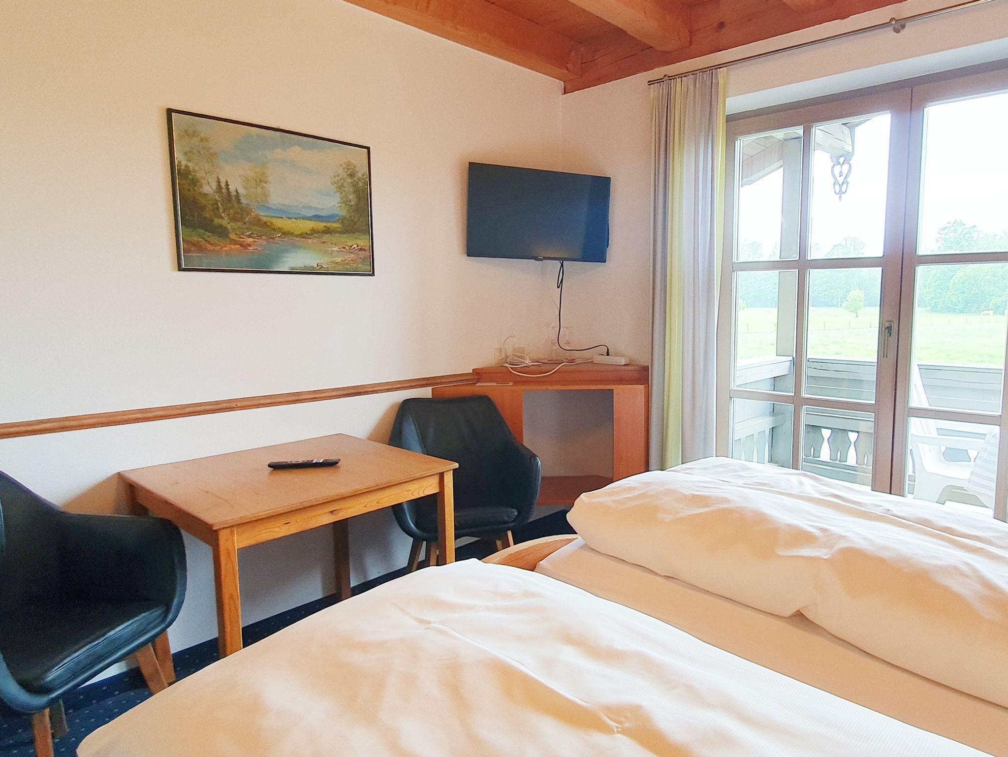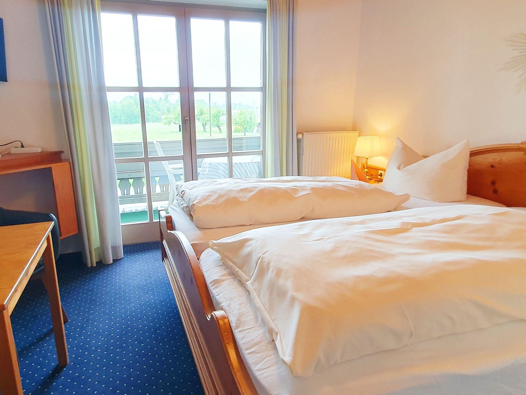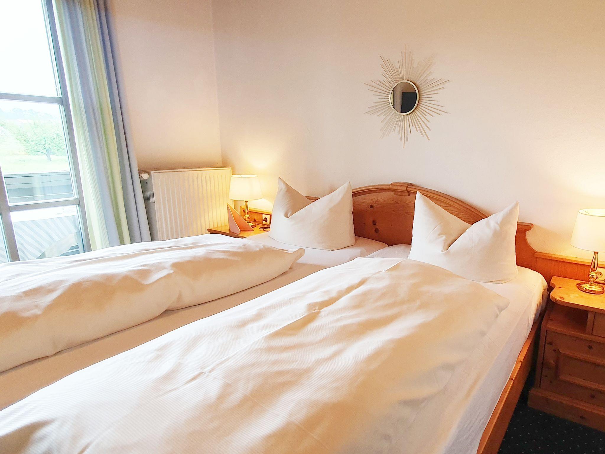 Moderne im Landhausstil eingerichtete Doppelzimmer. Sie sind ausgestattet mit Dusche und WC, Kabel-TV (Flachbildfernseher) und teilweise mit Balkon. Reisebett für Babys auf Anfrage möglich.