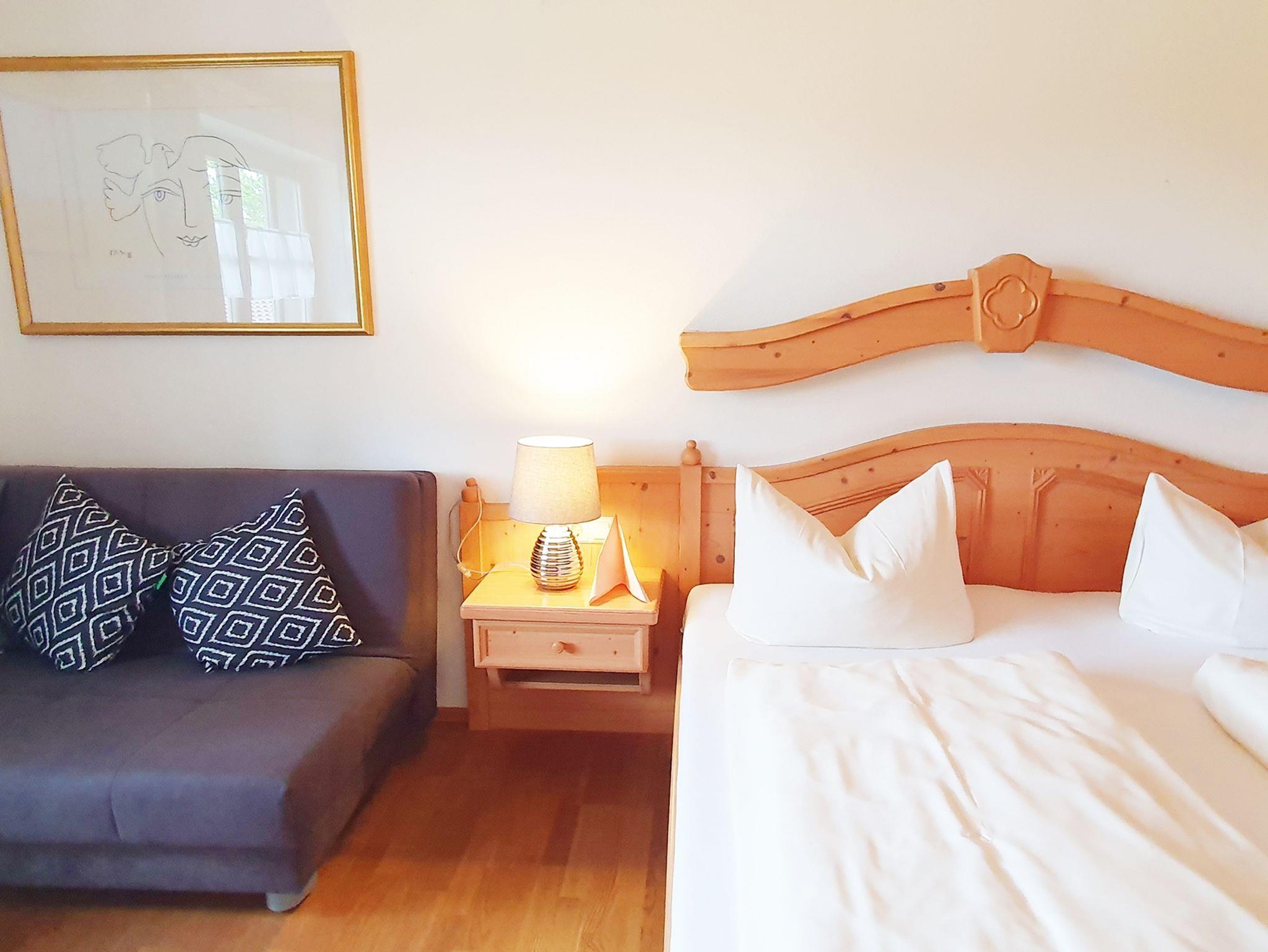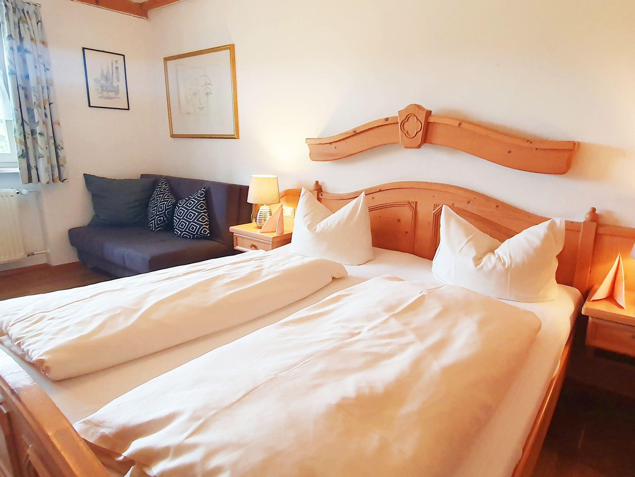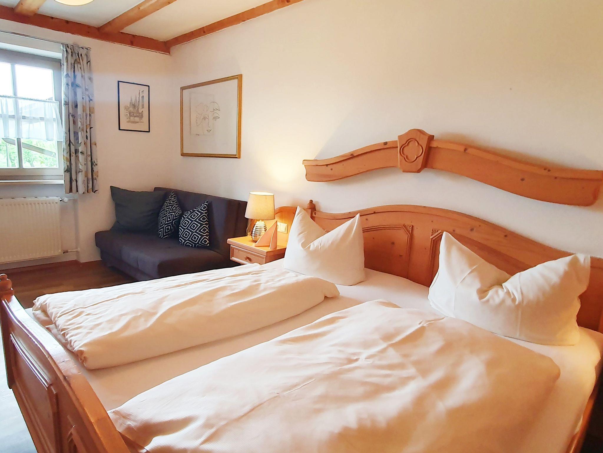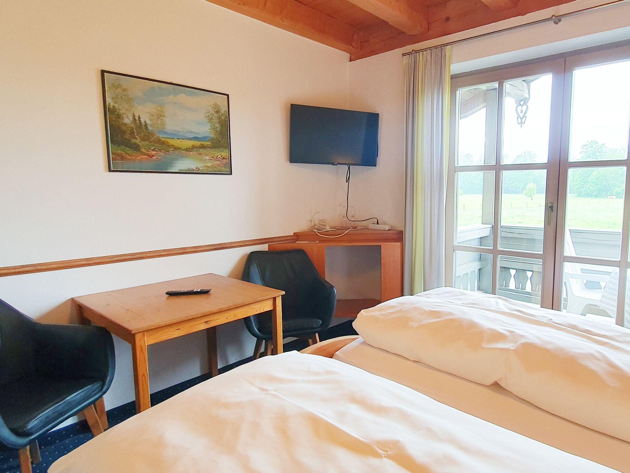 Moderne im Landhausstil eingerichtete Doppelzimmer. Sie sind ausgestattet mit Dusche und WC, Kabel-TV (Flachbildfernseher) und teilweise mit Balkon. Reisebett für Babys auf Anfrage möglich.