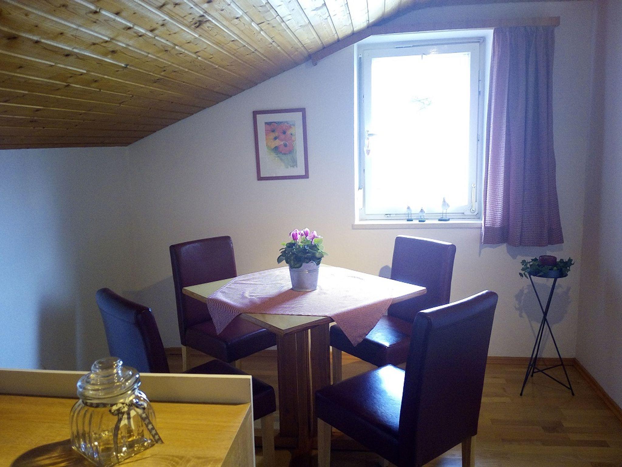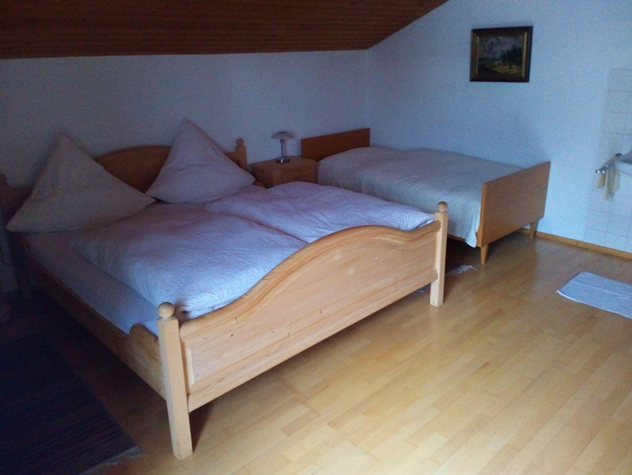 Unserer Ferienwohnung befindet sich im 1. Stock mit Ostbalkon. Für 3 Personen bietet die Wohnung Platz. Die Küche mit Sitzgruppe lädt zum gemütlichen Verweilen ein. Im Wohn-Bereich befindet sich eine Couch, sowie eine zusätzliche Essecke. Das Schlafzimmer besteht aus einem Doppelbett und einem Einzelbett, von dort aus erreichen Sie den Balkon. Im hellen und freundlichen Bad finden Sie eine Badewanne, wie auch eine Dusche vor. Die Toilette befindet sich einem seperaten Raum. Im Garten haben Sie die Möglichkeit, den überdachten Freisitz mit Liegewiese zu nutzen. Wir bieten Ihnen, Kabel-TV, DVD-Player, Radio, Kaffeemaschine, Wasserkocher, Eierkocher, Toaster, Bachkofen, Tiefkühlfach, Kühlschrank, Bettwäsche, Handtücher, Fön, Heizung, Nichtraucher, Liegewiese, Grillmöglichkeit. Für Fahrräder bieten wir Ihnen einen Unterstellplatz.