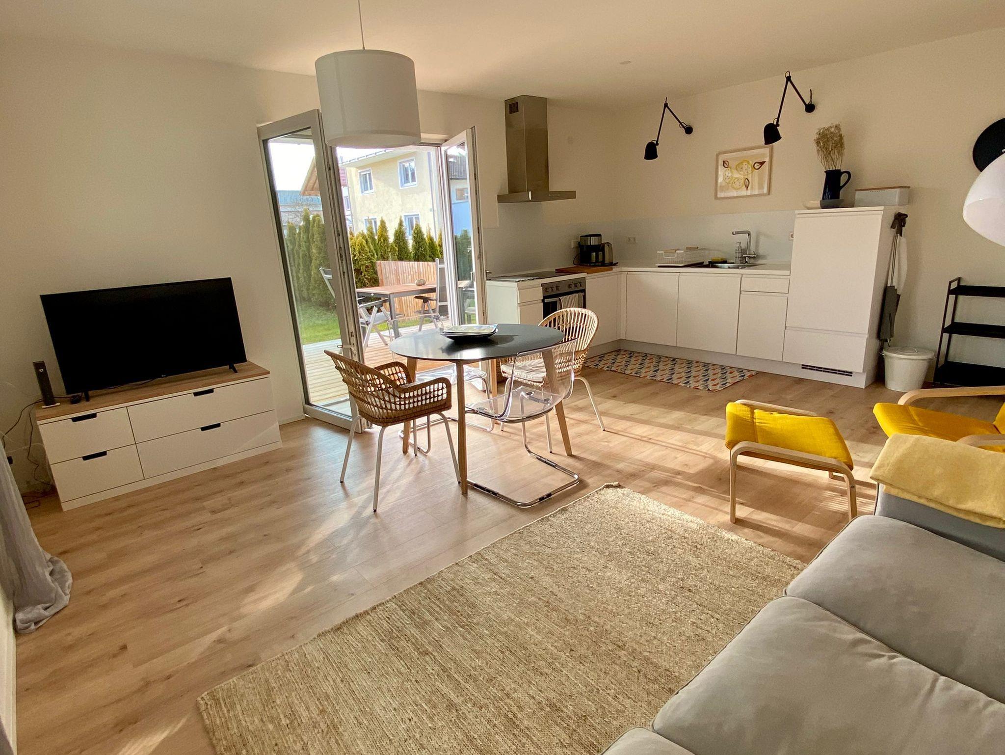 Ferienwohnung Am bayrischen Meer, Ferienwohnung in Strandnähe, 75qm, 2 separate Schlafzimmer, Terrasse