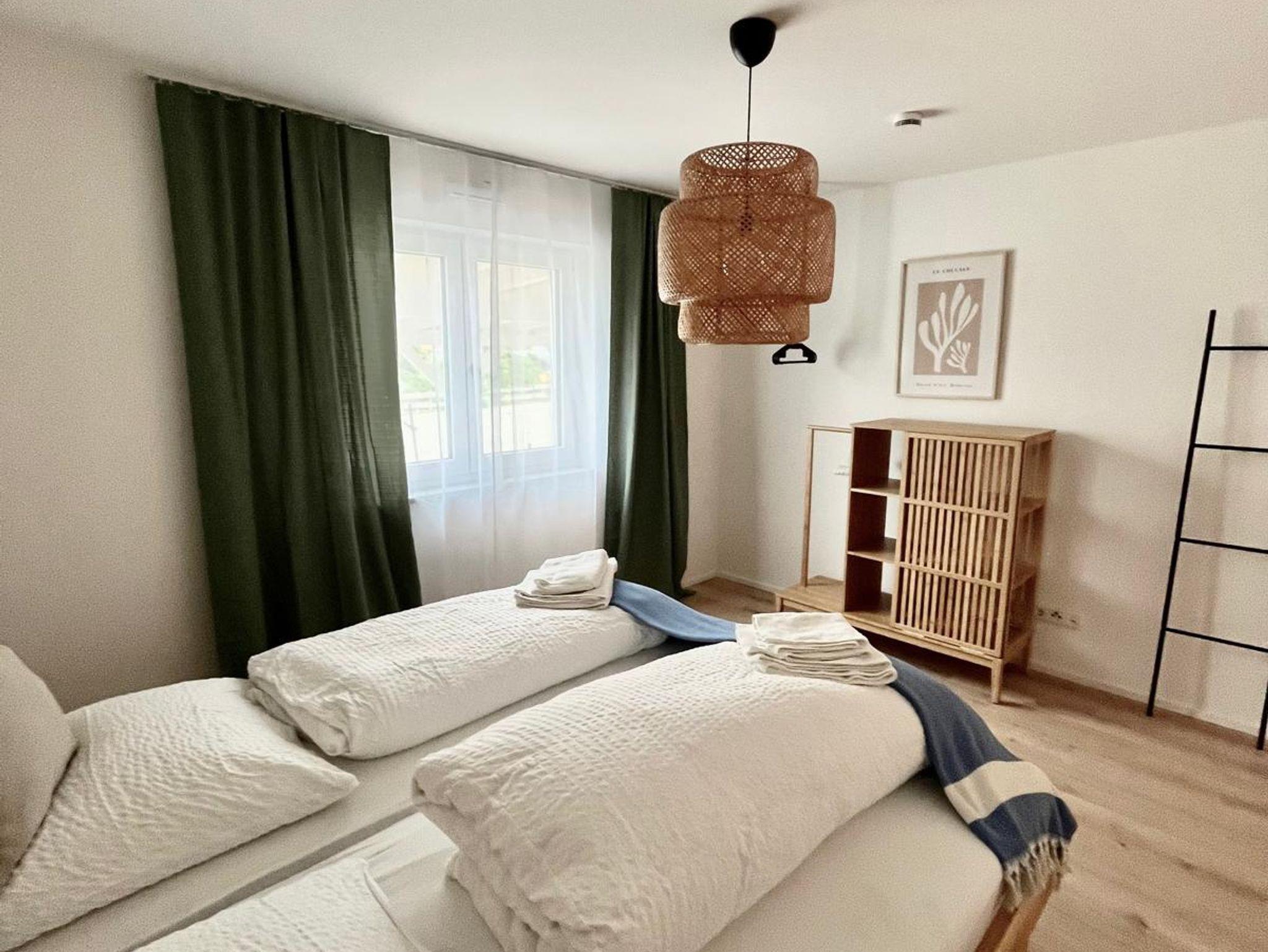 Die Wohnung verfügt über 2 sep. Schlafzimmer, ein Bad, sep. WC, sowie eine voll ausgestattete Küche mit Wohn-/Essbereich. Smart-TV, sowie W-Lan stehen kostenfrei zur Verfügung. Handtücher und Bettwäsche werden gestellt.