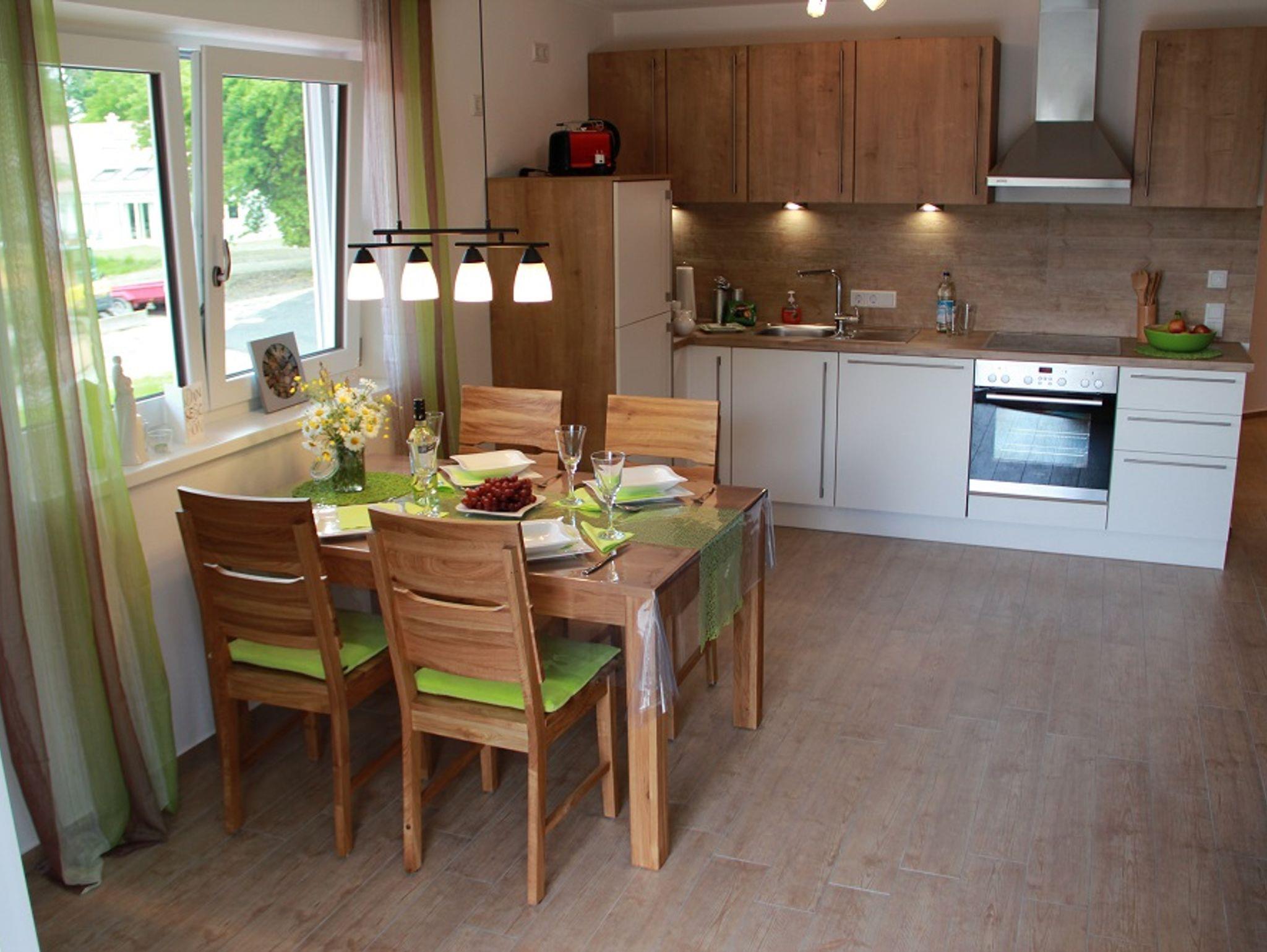 Ein geräumiger Wohnraum bietet Wohlfühlambiente mit voll ausgestatteter Küche inkl.Kühl.-/Gefrierkombination, Geschirrspüler, Senseo Kaffeemaschine, Wasserkocher, Toaster und moderner Herd/Backofenkombination um sich kulinarisch zu verwöhnen, der Essbereich wurde mit Echtholzmöbel ausgestattet und ein Flatscreenfernseher ist selbstverständlich vorhanden. WLAN ist kostenfrei nutzbar.