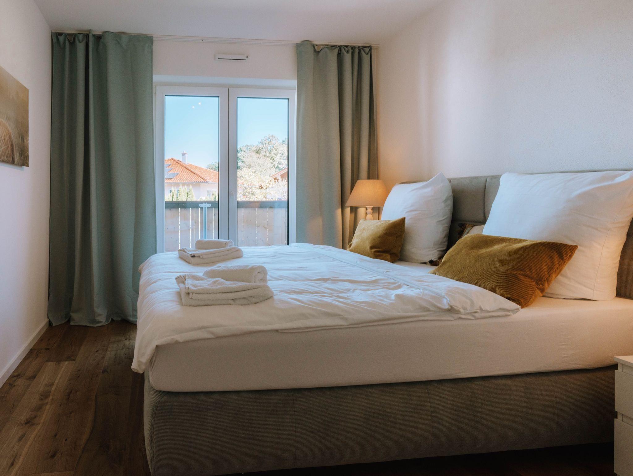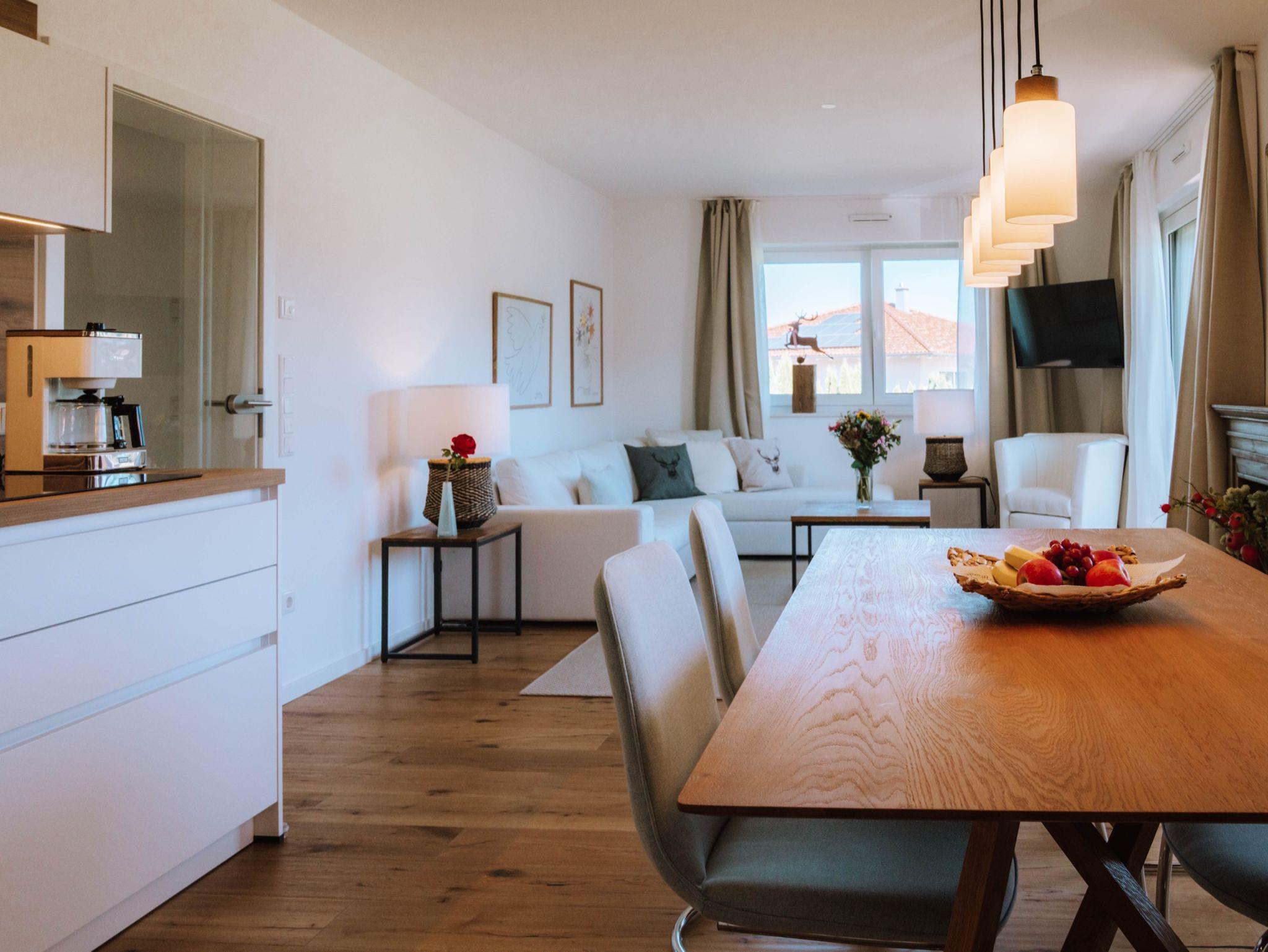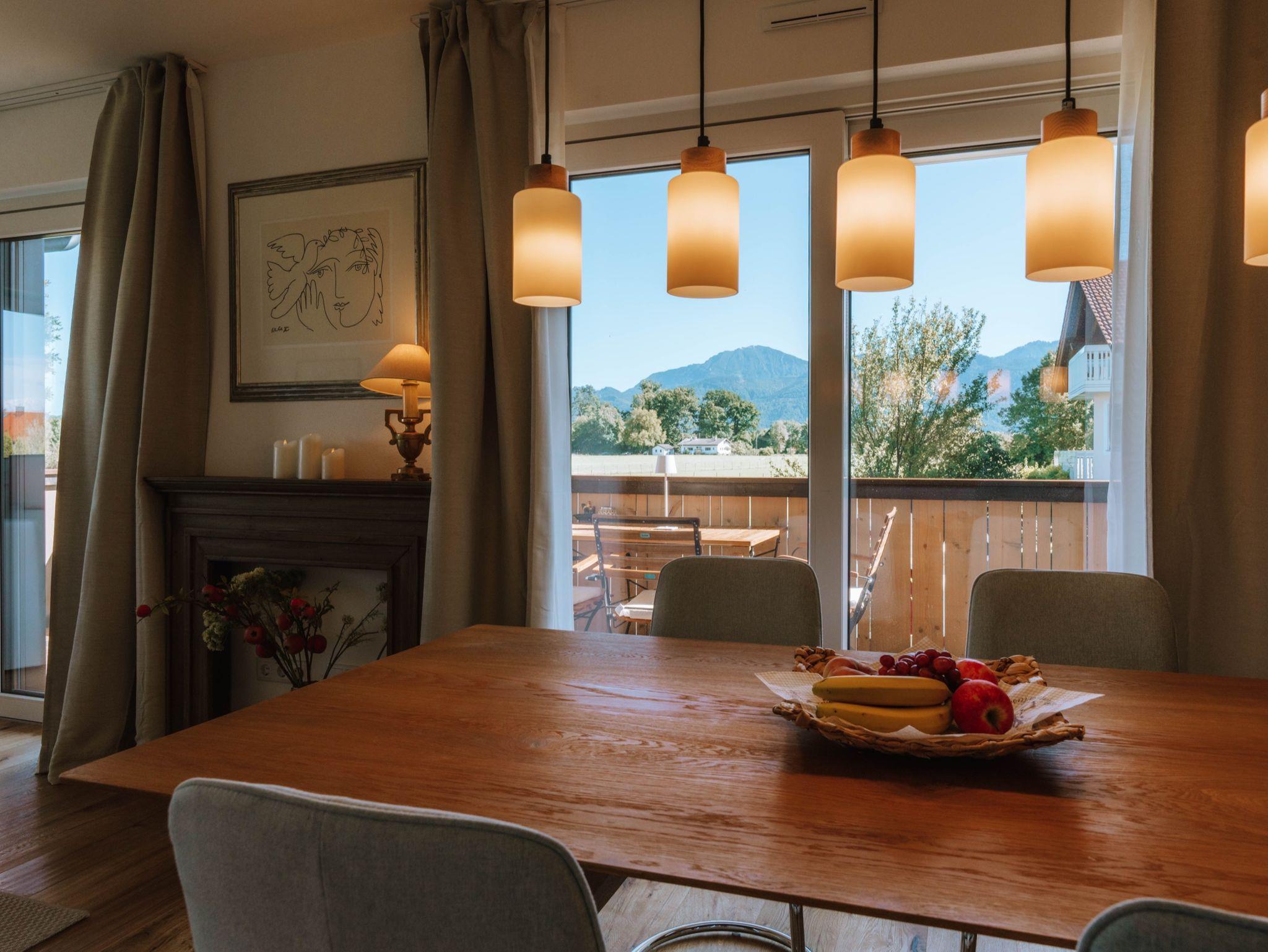 Die wunderschöne neue Ferienwohnung liegt zentral am Ortskern , einfach und schnell zu erreichen .Zur Rückseite des Hauses , direkter Blick in die Berge . Das Haus verfügt über einen Tiefgaragenstellplatz und Parkplätze für E Bikes sind vorhanden , geschützt und verschlossen .