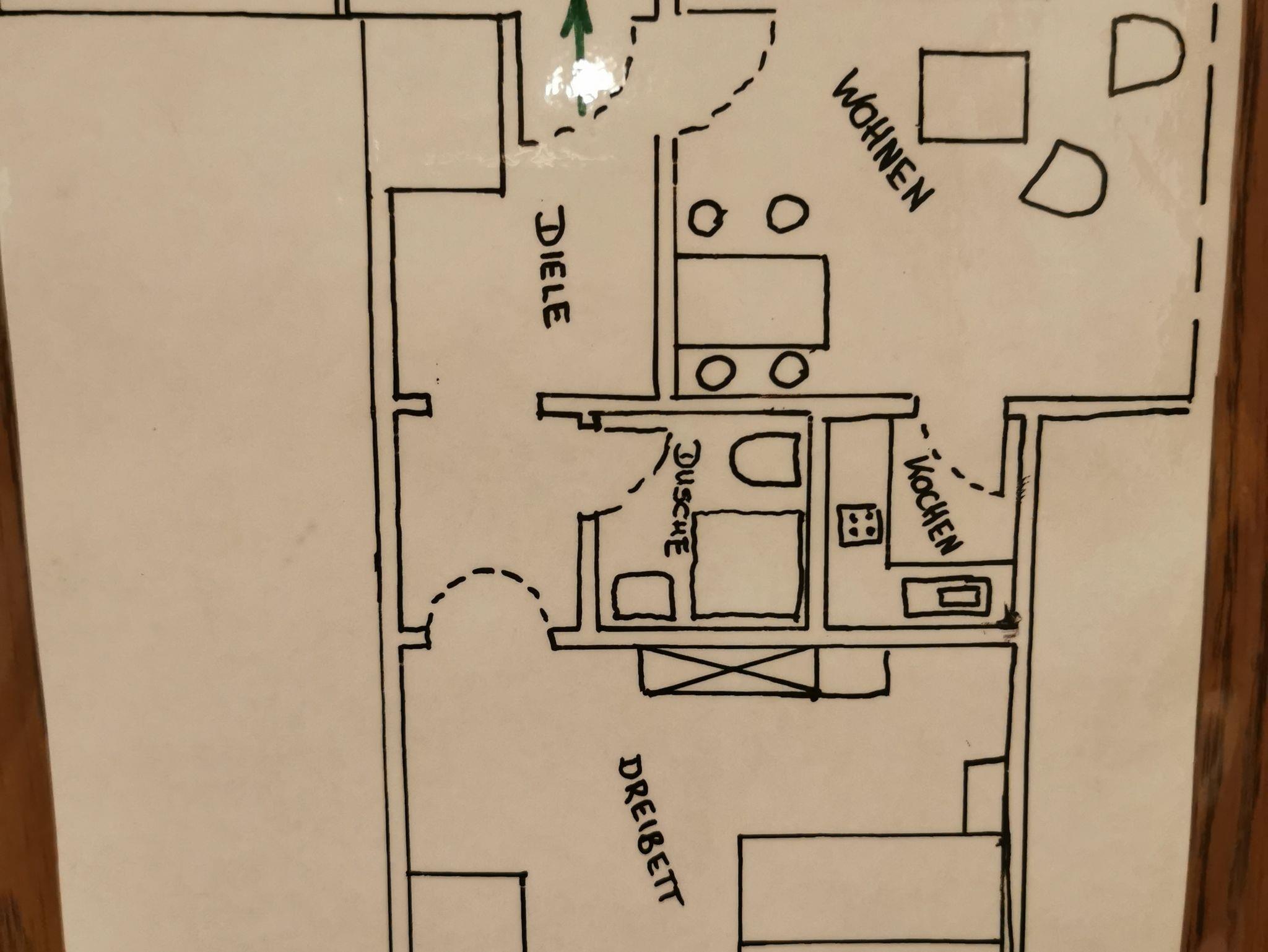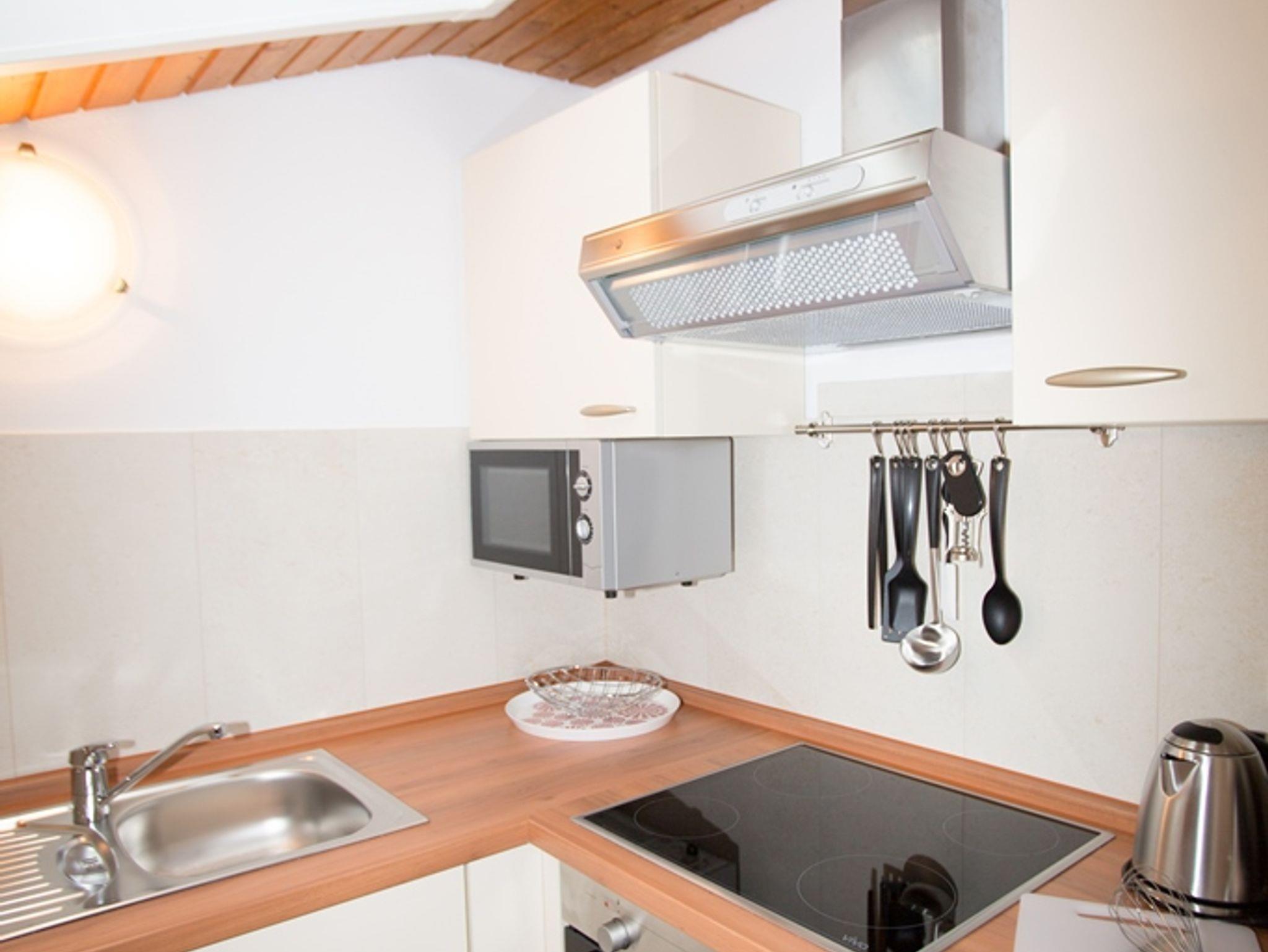 Die 46 qm große Ferienwohnung bietet Platz für bis zu 4 Personen. Die Küche ist komplett ausgestattet mit Kaffemaschine, Kühlschrank, Geschirrspülmaschine usw.