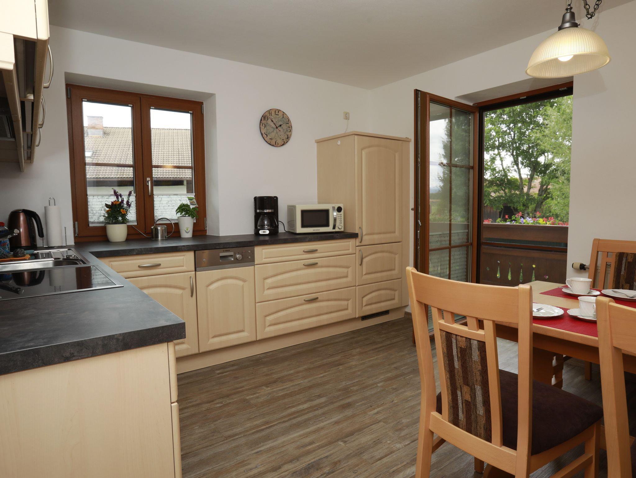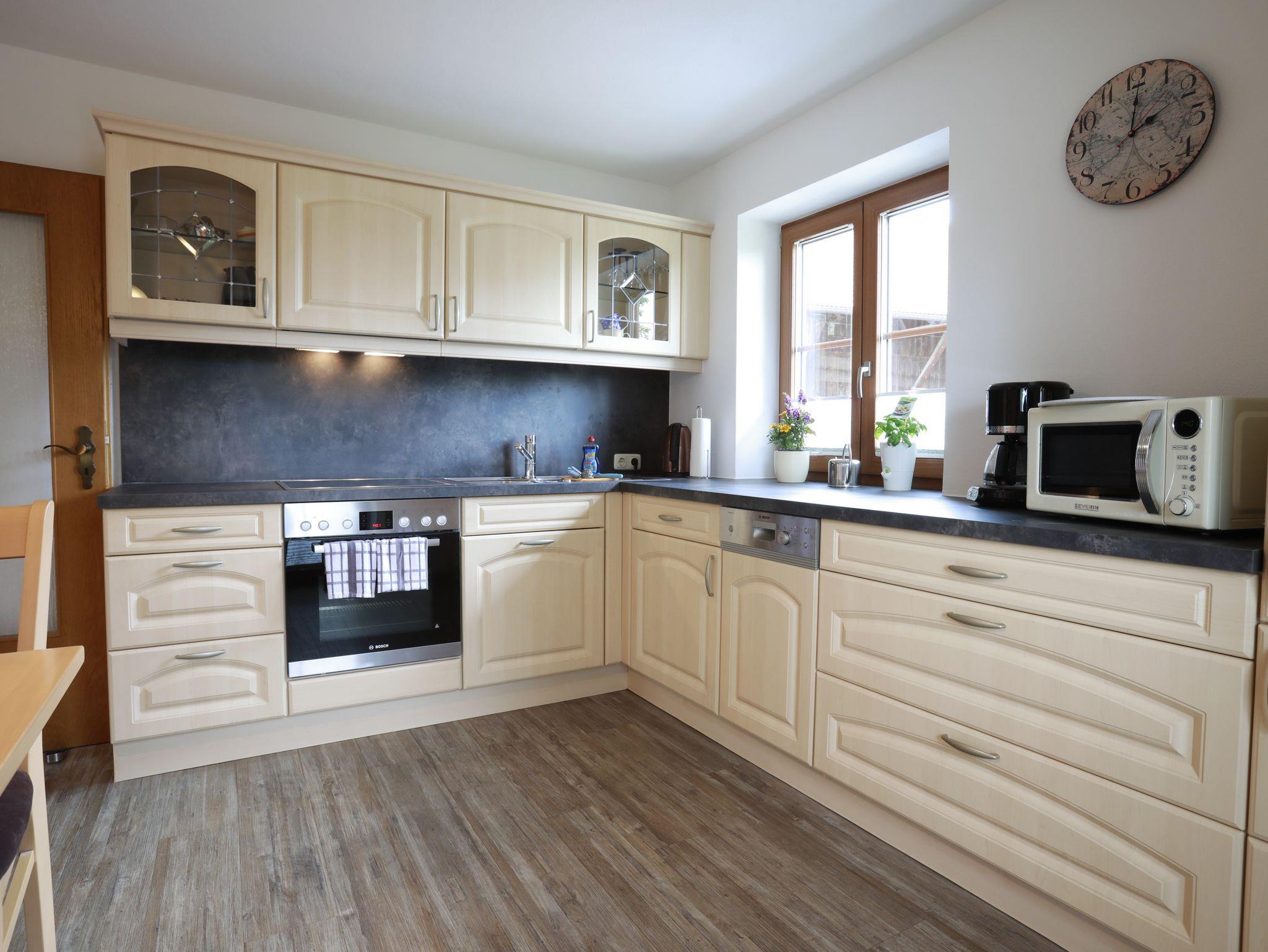 • Große Küche mit Spülmaschine und vielen Küchengeräten wie z.B. Mikrowelle, Backofen, Kaffeemaschine, Kühlschrank mit Gefrierfächern, Eierkocher, Ceranfeld usw.