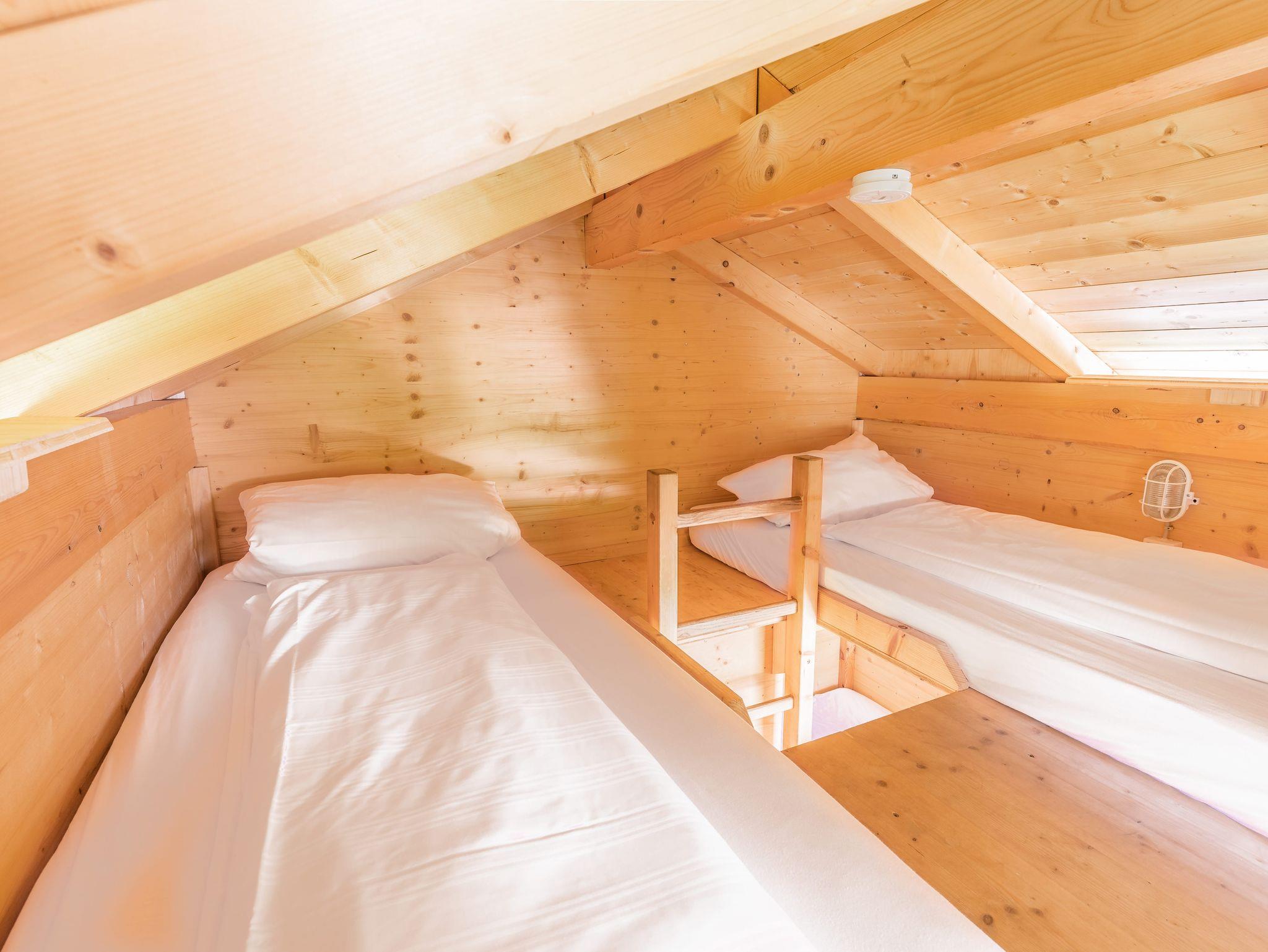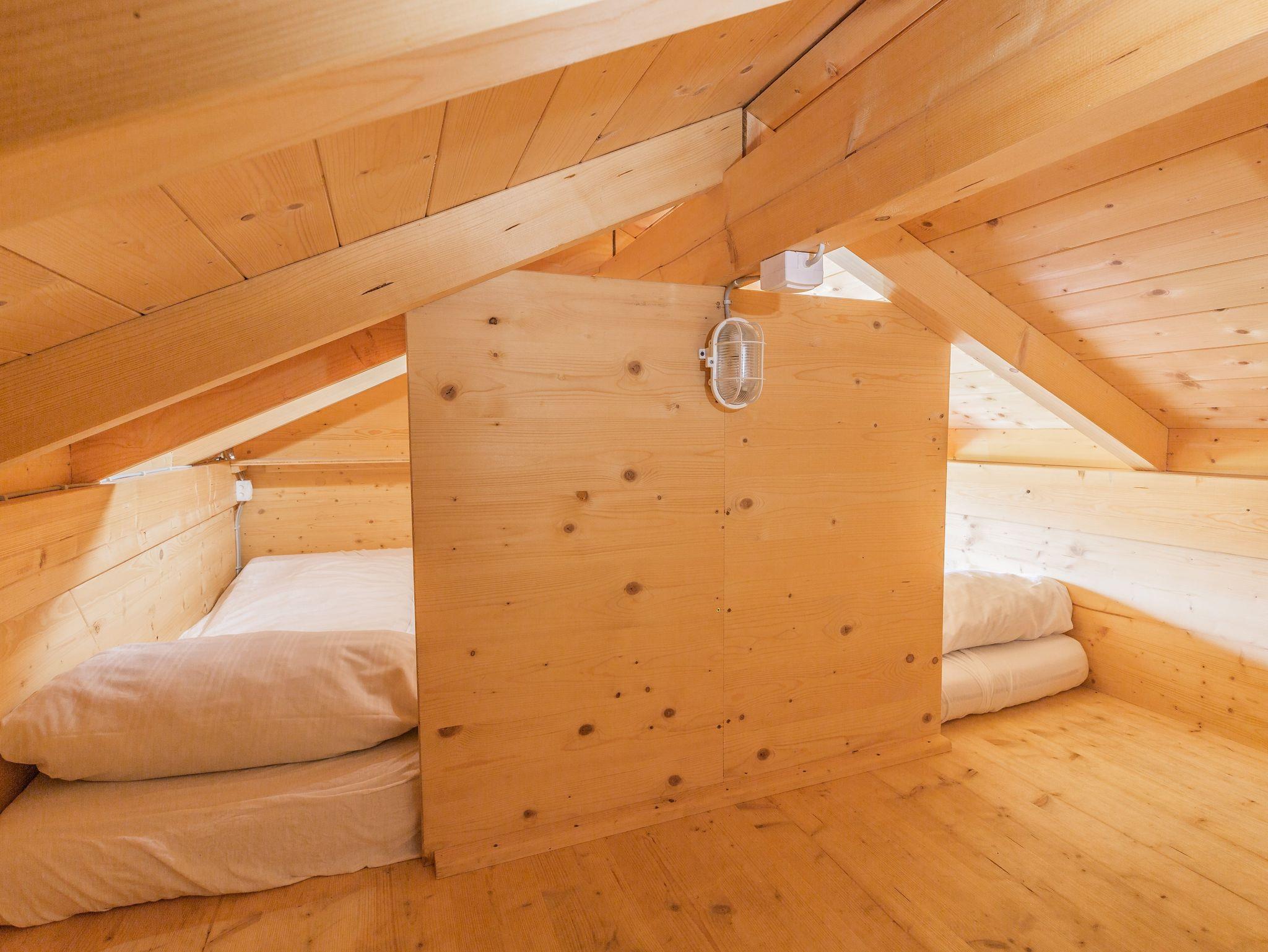 Ausstattung auf 2 Etagen: Die Almhütte Rauschberg ist ausgestattet mit 4 Einzelbetten, Bettwäsche - Bettdecke und Kissen, Heizung, Strom und einem Kühlschrank. Die Sanitären Anlagen befinden sich in der extra Waschhütte auf dem Gelände. Diese ist ausgestattet mit wassergespülten Toiletten und Duschen. Die Almhütte für maximal 4 Personen ist bis zu 10 x verfügbar