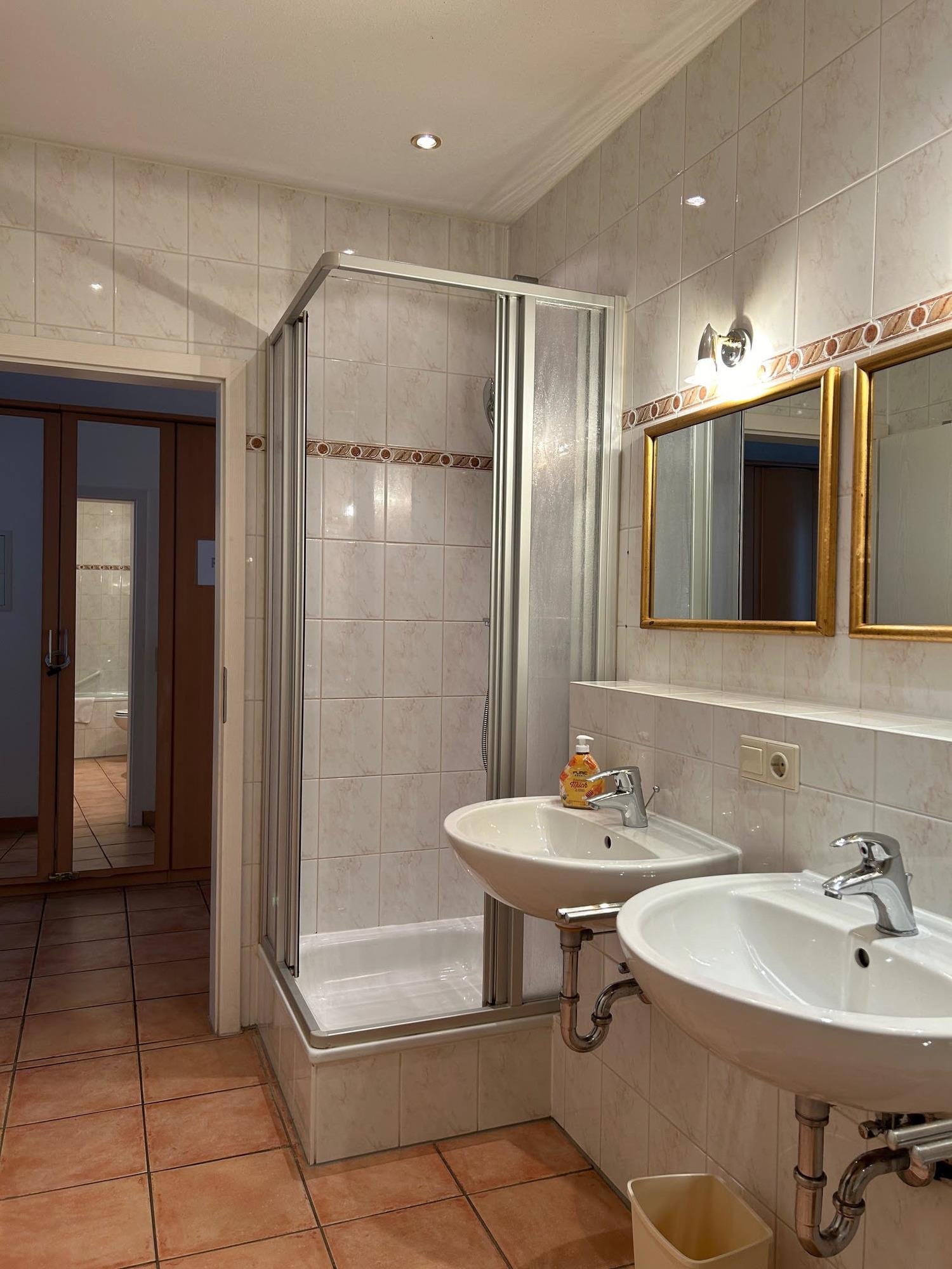 Badeværelse med bruser og badekar