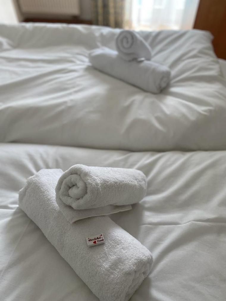Bettwäsche und Handtücher sind inklusive.