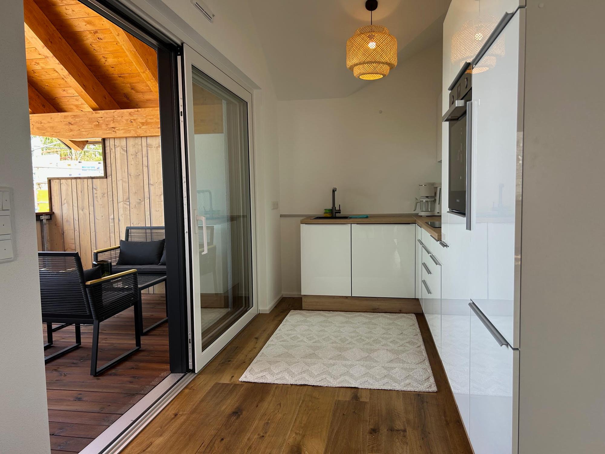Auf 74 Quadratmetern bietet die Ferienwohnung ausreichend Platz für bis zu vier Personen. Die voll ausgestattete Küche mit Geschirrspüler, Backofen und Ceranfeld bietet pure Freude beim Zubereiten Ihrer Lieblingsgerichte. Das elegante Badezimmer verfügt über eine komfortable begehbare Dusche, während das Schlafzimmer mit dem großzügigen Boxspringbett (180x200 cm) direkten Zugang zum Südbalkon bietet. Von hier aus genießen Sie den freien Blick auf die naheliegenden Chiemgauer Alpen. Das Schlafzimmer bietet auch ausreichend Platz für ein Baby Reisebett (wird nicht angeboten). Im Wohnzimmer sorgt ein bequemes Schlafsofa (140x200 cm) für zusätzliche Übernachtungsmöglichkeiten. Auch verfügt die Wohnung über eine Waschmaschine in der Wohnung. Die Loggia mit Westausrichtung lädt zum gemütlichen Verweilen ein. Ein Stellplatz im Freien, ein Fahrradraum sowie ein Aufzug runden das Angebot ab. Auch Ihr vierbeiniger Freund ist bei uns herzlich willkommen (gegen Gebühr).