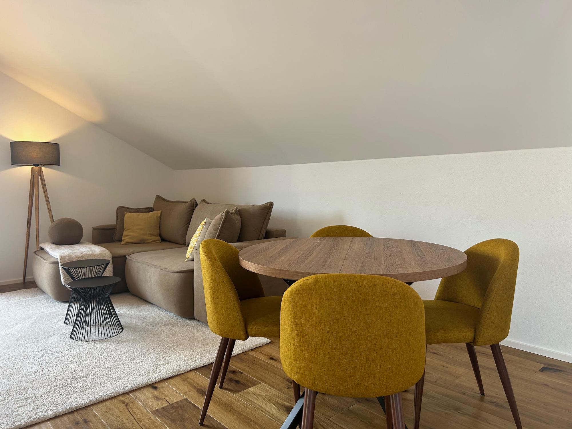 Die lichtdurchflutete "Bergzauber Suite" begeistert mit ihrem modernen Design und dem großzügigen Loftfeeling, das durch teils bis zu 3,60 Meter hohe Decken entsteht. Das stilvolle Ambiente schafft eine sehr besondere Wohnqualität, die Sie sofort in ihren Bann ziehen wird.