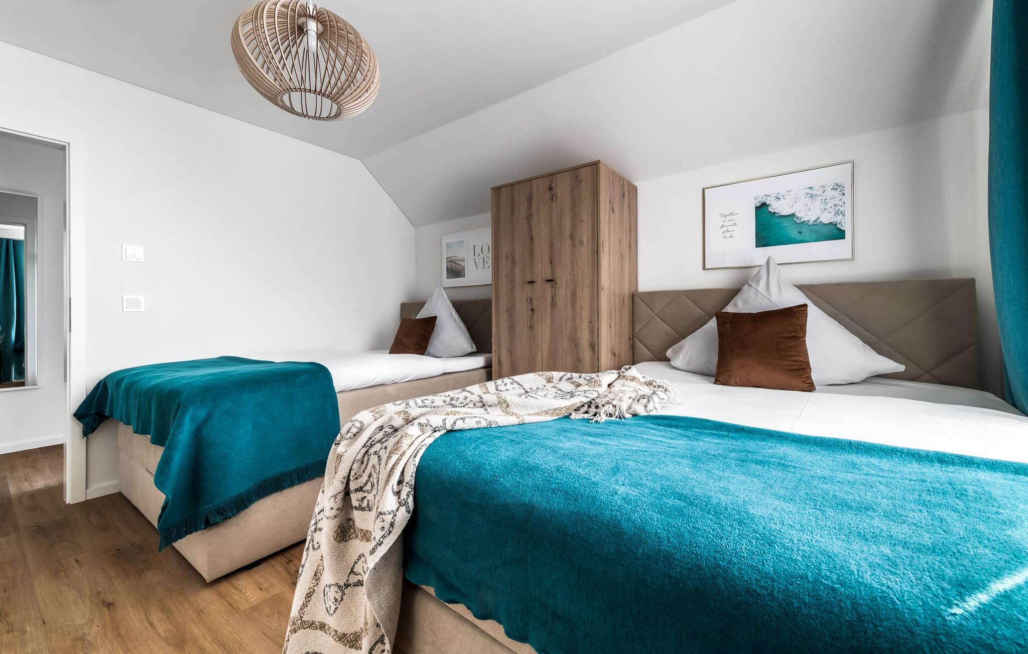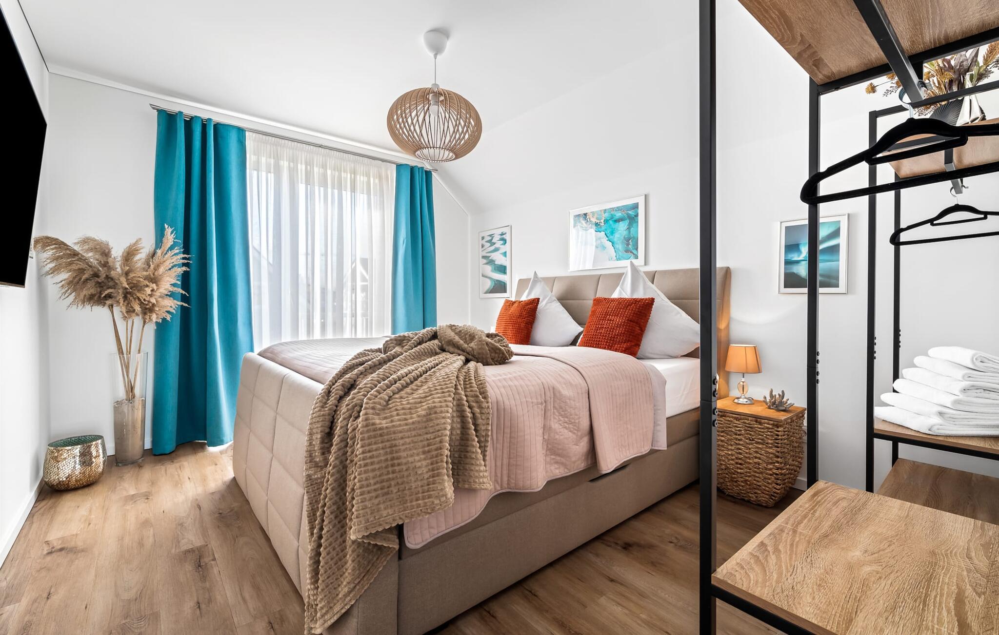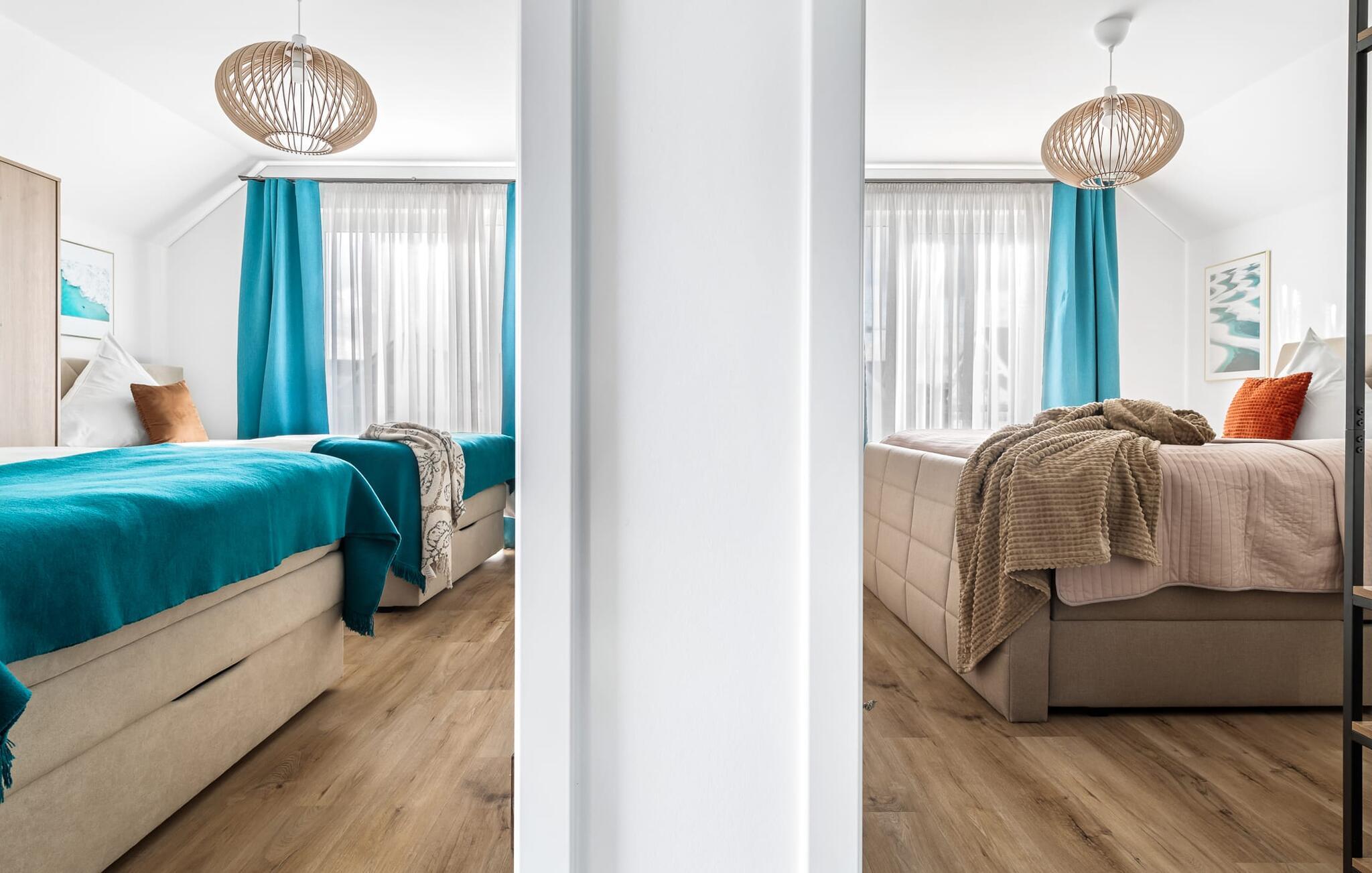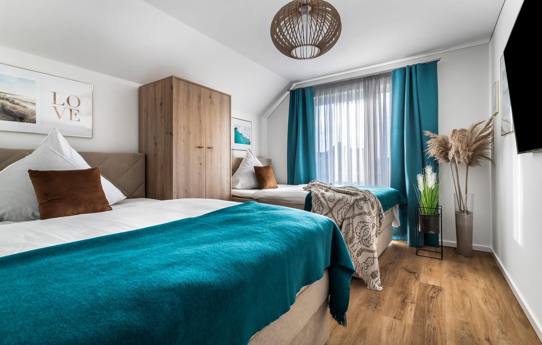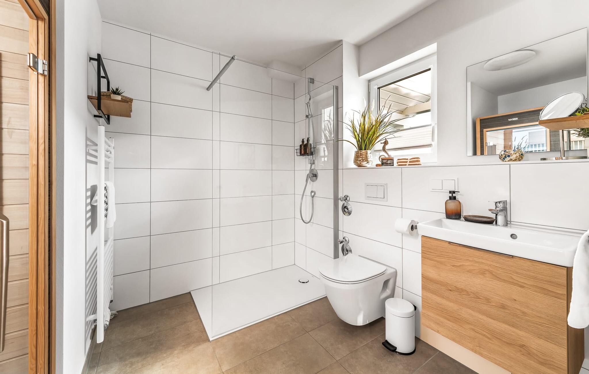 Velkommen til Überseegold! Møbler af høj kvalitet i maritim stil venter jer her. Den rummelige ferielejlighed på øverste etage scorer med en rummelig følelse, en terrasse til solbadning og plads til op til 5 personer. Her kan I nyde jeres ferie og glemme hverdagen. En anden lille terrasse ved indgangen giver en ekstra feriefølelse. Sandstranden Weidefelder med kiosk, restaurant og strandstole ligger i gåafstand og er et attraktivt rejsemål på alle tider af året. Minigolfbanen med maritimt tema ligger også i umiddelbar nærhed og glæder både store og små. Den livlige havnepromenade med indkøbsmuligheder og lystbådehavnen er også i nærheden. Med sine gulv-til-loft-vinduer og den store tilstødende terrasse er den åbne stue/spisestue hjertet af Überseegold. Den stilfulde indretning og den hyggelige opholdsstue skaber en afslappet atmosfære og inviterer jer til at slappe af. Ren afslapning! Skulle vejret nogensinde vise sin nordiske side, sørger pejsen og den infrarøde sauna (varmekabinen) for hyggelig varme og komfort. Når solen skinner, venter terrassen allerede på jer. Nyd dagen her i den friske Østersøluft eller ring ind til en grillaften sammen. Det åbne køkken er ideelt udstyret og vil få amatørkokkenes hjerter til at slå hurtigere. To soveværelser er tilgængelige til afslapning om natten. Det ene soveværelse er udstyret med en stor dobbelt boxmadras, mens det andet soveværelse har to store enkeltsenge (140x200). I opholdsstuen kan sofaen omdannes til endnu et soverum med få enkle trin. Efter en travl feriedag giver badeværelset med brusebad på gulvniveau og en infrarød sauna beroligende øjeblikke. En dag på Østersøen kunne ikke ende bedre. For at give en hel feriekomfort finder I jeres egen parkeringsplads og et aflåseligt cykelskur foran ferielejligheden. Vores favoritsted: At tilbringe en hyggelig grillaften på terrassen efter en dag på stranden... Bemærk venligst: OstseeResort Olpenitz er meget populært, og der bygges fortsat i parken. Ikke desto mindre kan I se frem til en 5-stjernet standard og et førsteklasses ophold. Byggeaktiviteterne kommer ikke til at forstyrre jer på ferien, og derfor gives der ikke yderligere afslag i prisen.
