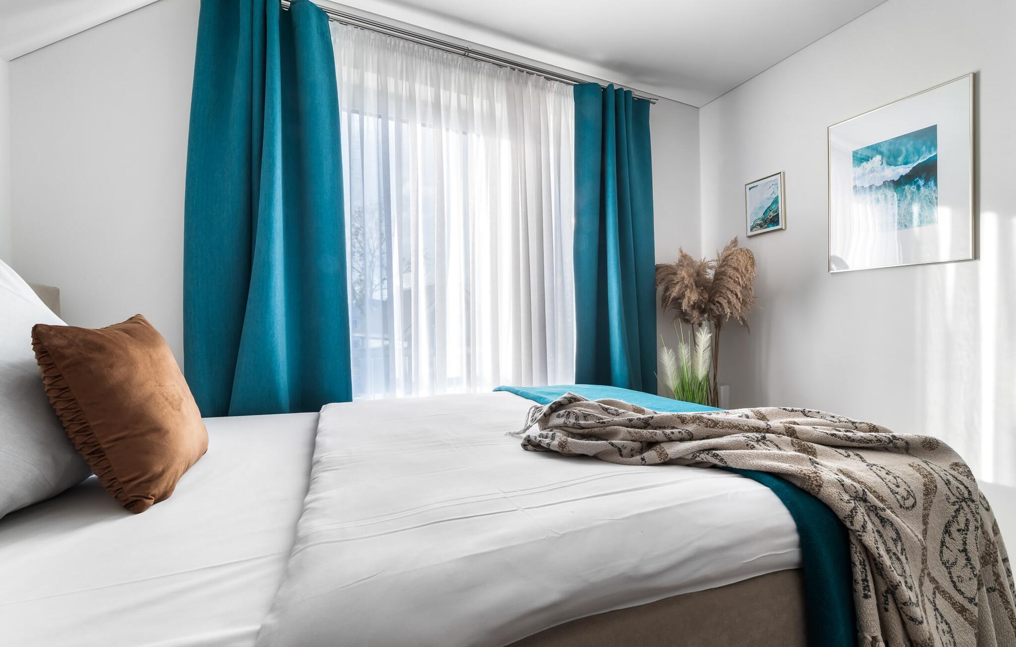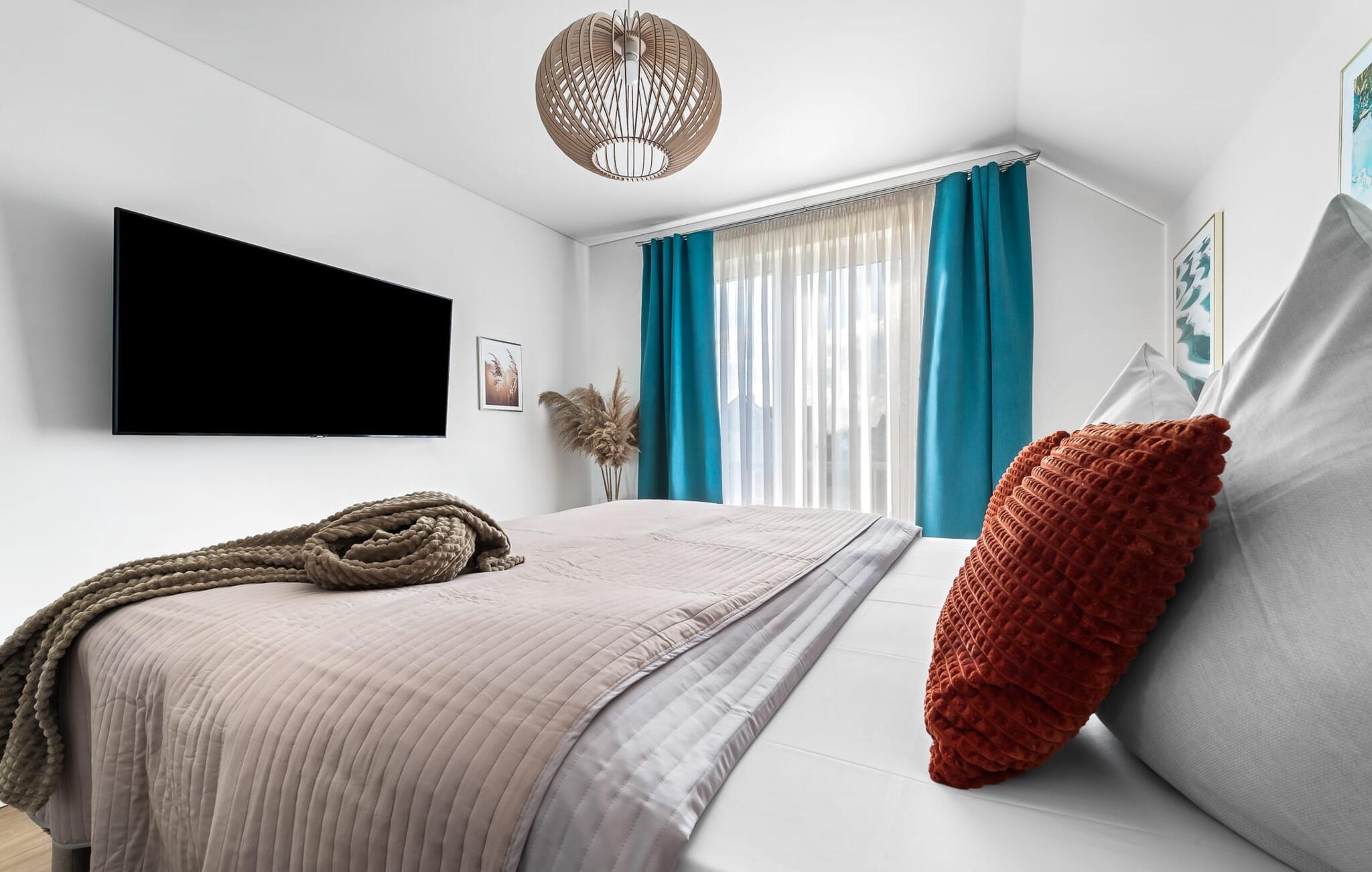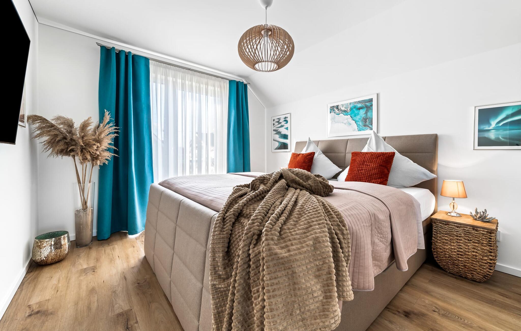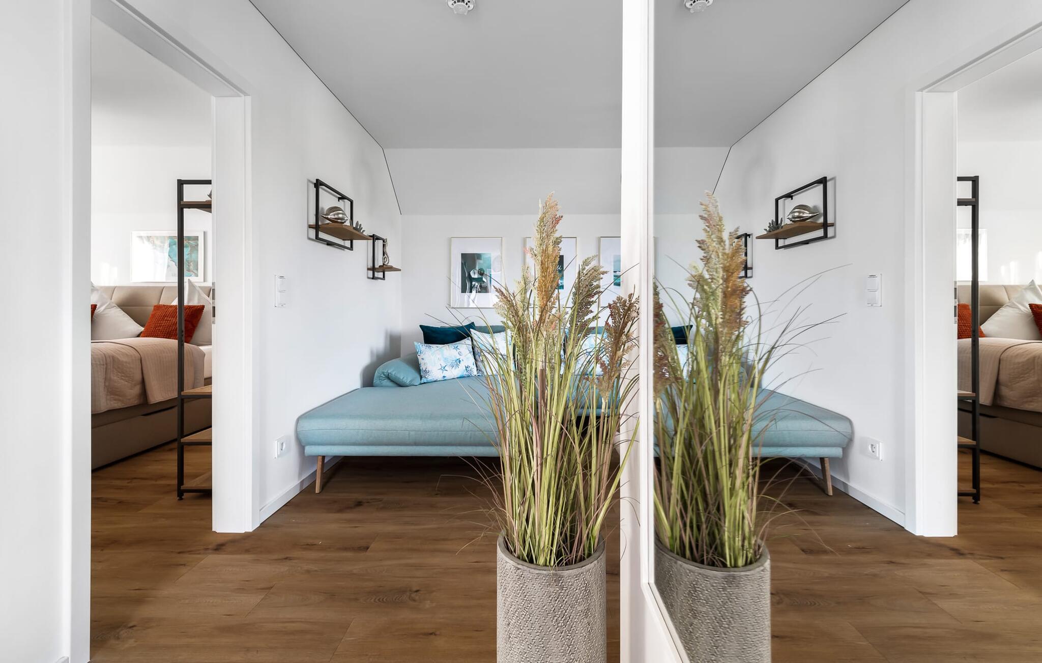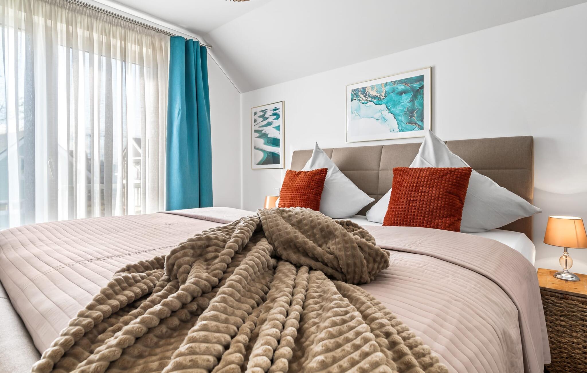 Velkommen til Überseegold! Møbler af høj kvalitet i maritim stil venter jer her. Den rummelige ferielejlighed på øverste etage scorer med en rummelig følelse, en terrasse til solbadning og plads til op til 5 personer. Her kan I nyde jeres ferie og glemme hverdagen. En anden lille terrasse ved indgangen giver en ekstra feriefølelse. Sandstranden Weidefelder med kiosk, restaurant og strandstole ligger i gåafstand og er et attraktivt rejsemål på alle tider af året. Minigolfbanen med maritimt tema ligger også i umiddelbar nærhed og glæder både store og små. Den livlige havnepromenade med indkøbsmuligheder og lystbådehavnen er også i nærheden. Med sine gulv-til-loft-vinduer og den store tilstødende terrasse er den åbne stue/spisestue hjertet af Überseegold. Den stilfulde indretning og den hyggelige opholdsstue skaber en afslappet atmosfære og inviterer jer til at slappe af. Ren afslapning! Skulle vejret nogensinde vise sin nordiske side, sørger pejsen og den infrarøde sauna (varmekabinen) for hyggelig varme og komfort. Når solen skinner, venter terrassen allerede på jer. Nyd dagen her i den friske Østersøluft eller ring ind til en grillaften sammen. Det åbne køkken er ideelt udstyret og vil få amatørkokkenes hjerter til at slå hurtigere. To soveværelser er tilgængelige til afslapning om natten. Det ene soveværelse er udstyret med en stor dobbelt boxmadras, mens det andet soveværelse har to store enkeltsenge (140x200). I opholdsstuen kan sofaen omdannes til endnu et soverum med få enkle trin. Efter en travl feriedag giver badeværelset med brusebad på gulvniveau og en infrarød sauna beroligende øjeblikke. En dag på Østersøen kunne ikke ende bedre. For at give en hel feriekomfort finder I jeres egen parkeringsplads og et aflåseligt cykelskur foran ferielejligheden. Vores favoritsted: At tilbringe en hyggelig grillaften på terrassen efter en dag på stranden... Bemærk venligst: OstseeResort Olpenitz er meget populært, og der bygges fortsat i parken. Ikke desto mindre kan I se frem til en 5-stjernet standard og et førsteklasses ophold. Byggeaktiviteterne kommer ikke til at forstyrre jer på ferien, og derfor gives der ikke yderligere afslag i prisen.