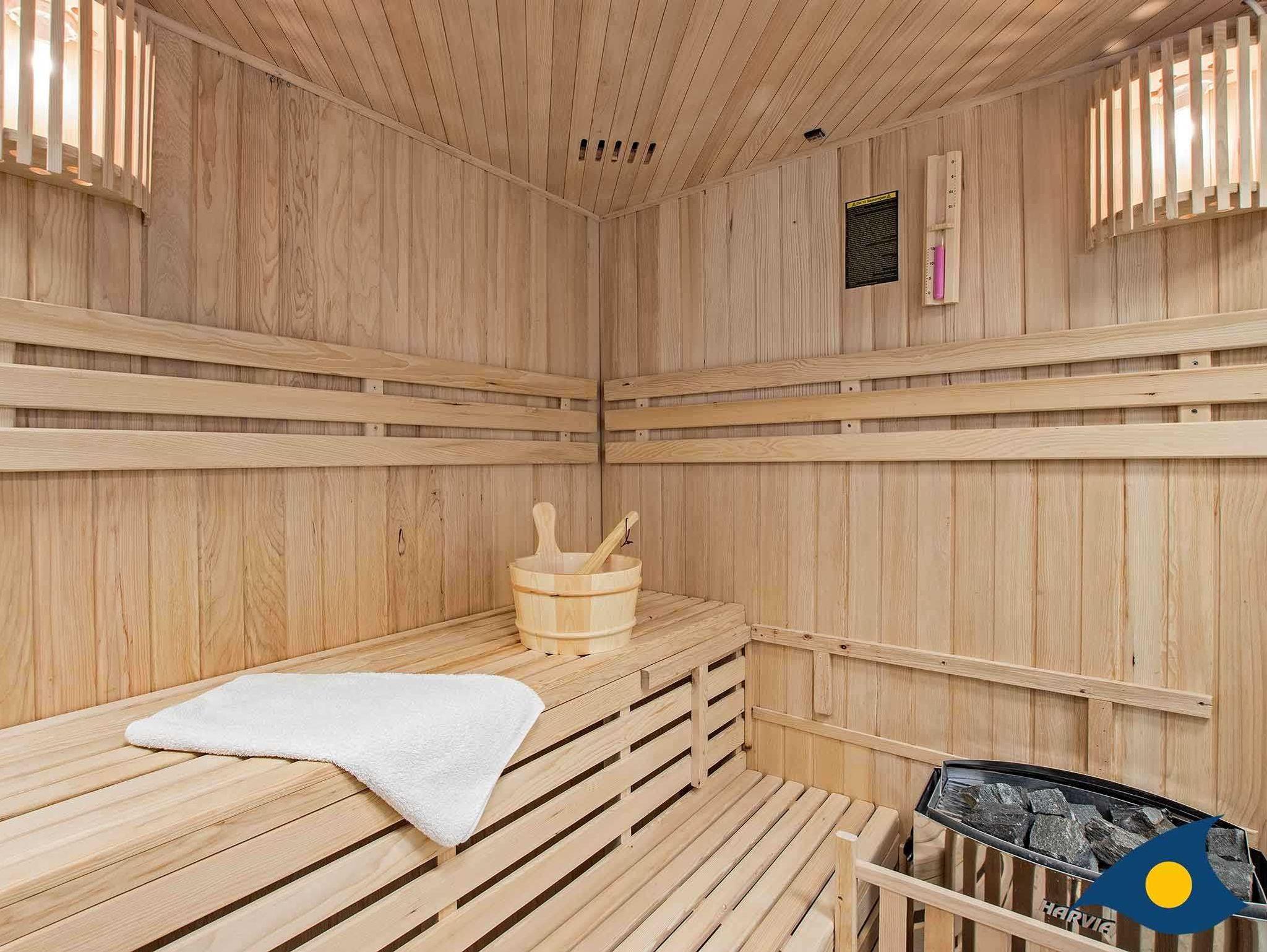 Neben einem Kamin und der Sauna erwarten Sie 3 Schlafzimmer mit einem Doppelbett und 2 Schlafzimmer mit einem Einzelbett.