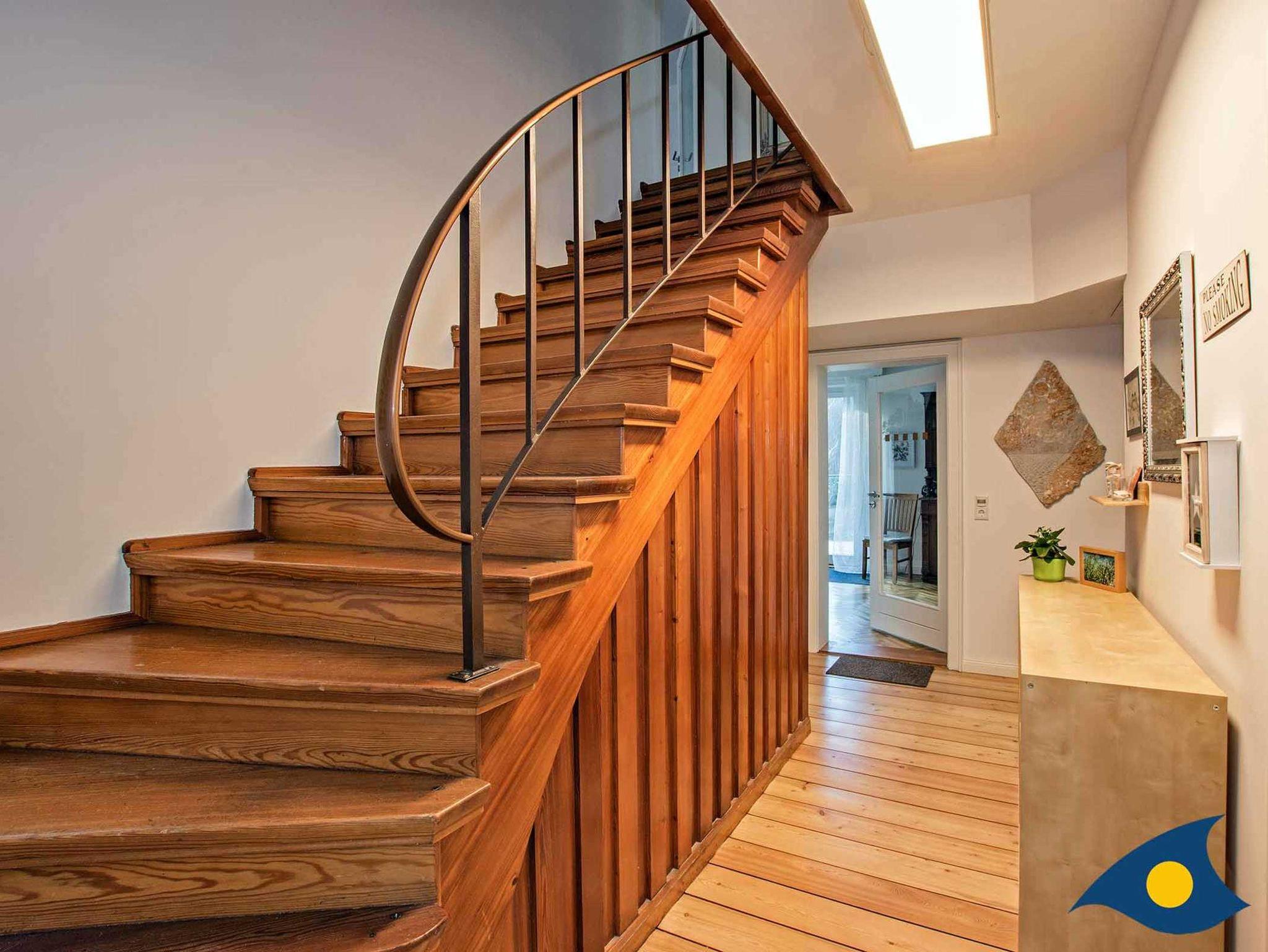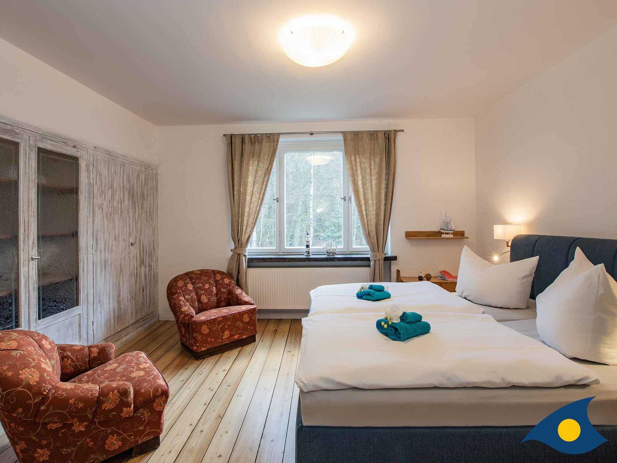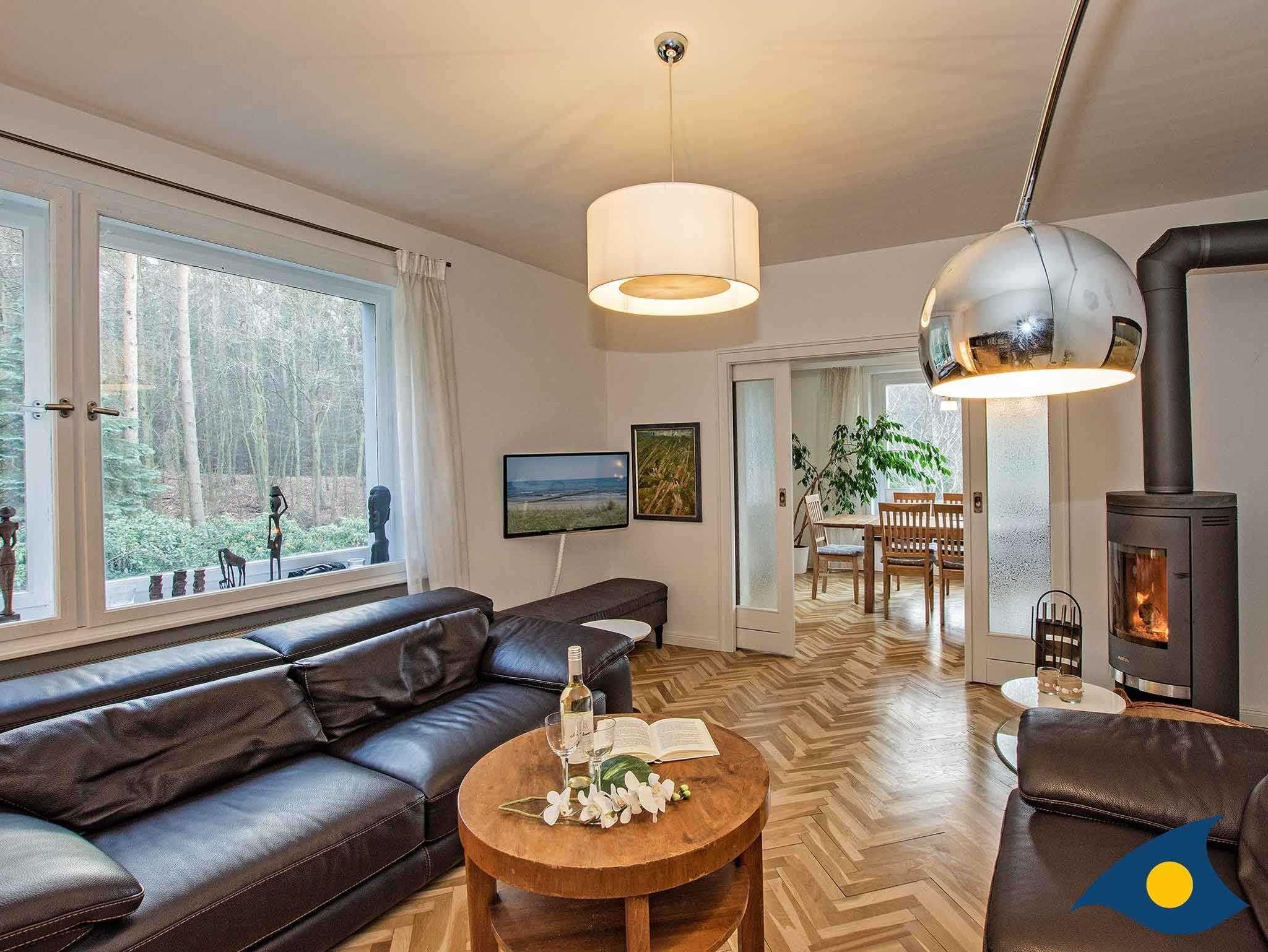 Die Villa Vogelbusch bietet Platz für bis zu acht Personen. Im Erdgeschoss befindet sich der großzügige Koch-, Ess- und Wohnbereich mit Kamin und Terrasse. Die Küche ist hochwertig ausgestattet. Der Parkettboden wurde aufgearbeitet und erstrahlt in neuem Glanz.