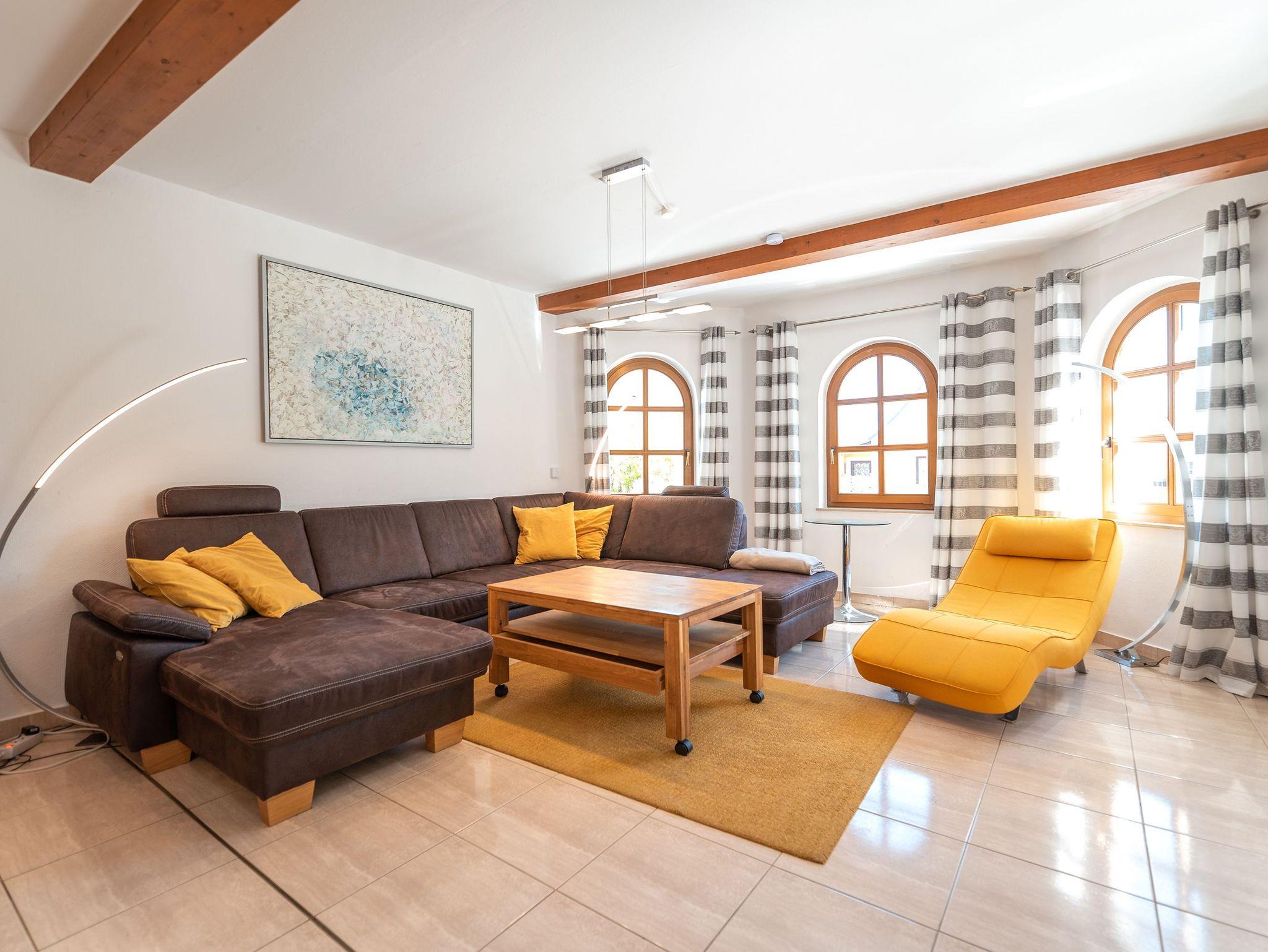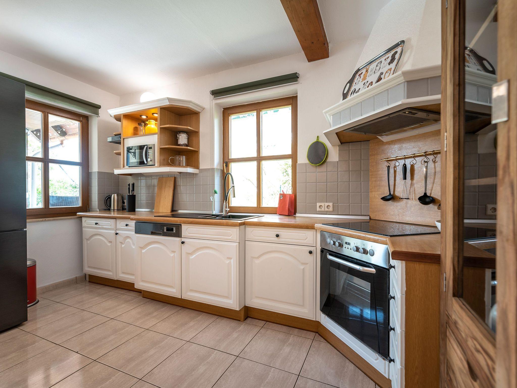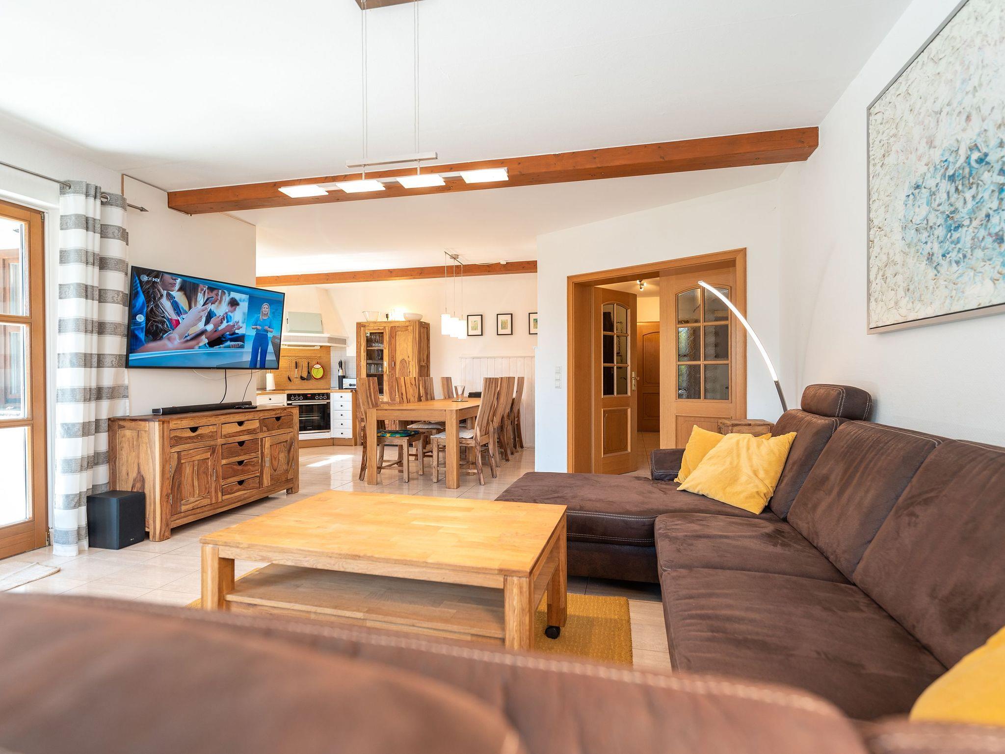 Besonders hervorzuheben ist die Ferienwohnung Ackerweg 3 im Erdgeschoss, die sich über eine Fläche von 120 m² erstreckt und bis zu 10 Personen sowie ein Kleinkind im Kinderbett bequem Platz bietet. Diese Wohnung zeichnet sich durch einen großzügigen Wohnbereich mit einem modernen, zu einem Schlafsofa umfunktionierbaren Sofa und einem großen Flat-TV aus. Die offene Küche mit Essplatz ist voll ausgestattet und bietet Sitzmöglichkeiten für bis zu 10 Personen. Von hier aus gelangt man auch auf die große Terrasse, die zu gemütlichen Frühstücken im Freien einlädt.