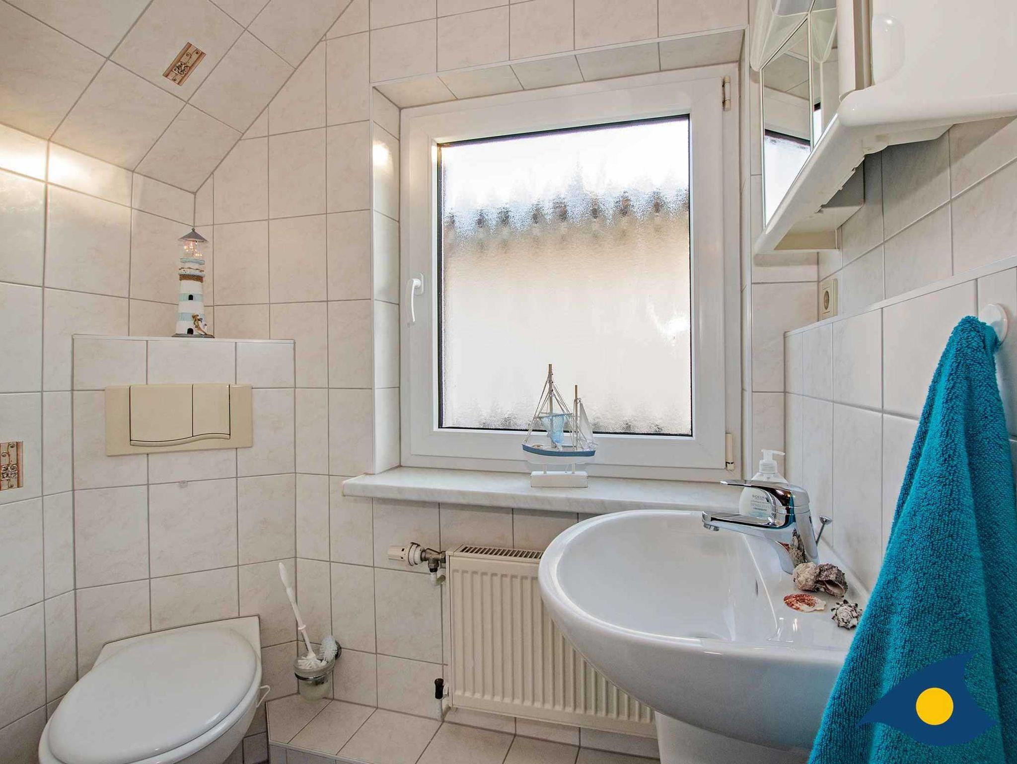 Dusche sowie WC sind räumlich voneinander getrennt. Beide Bäder sind zudem mit einem Fenster und einen Handwaschbecken ausgestattet.