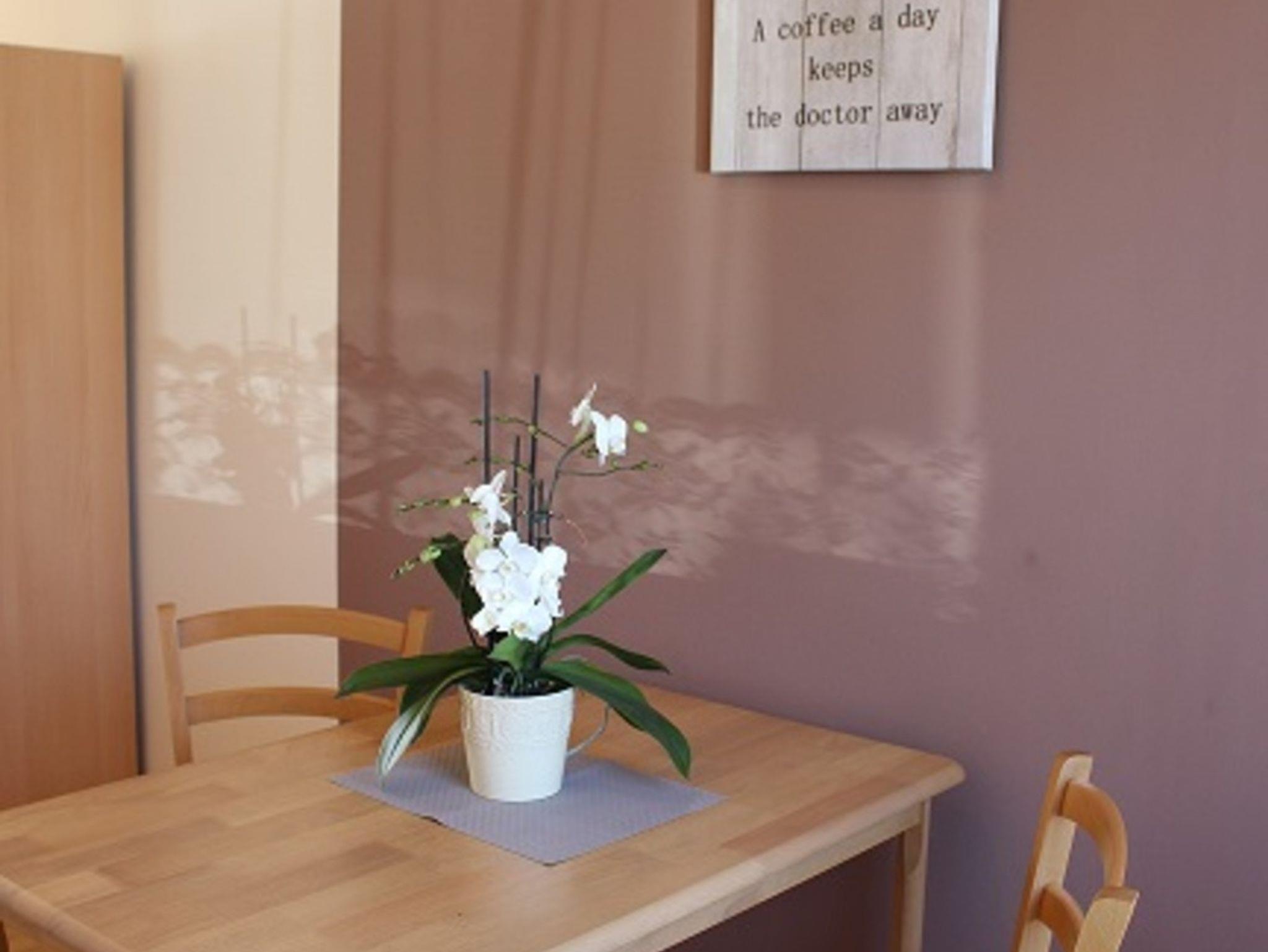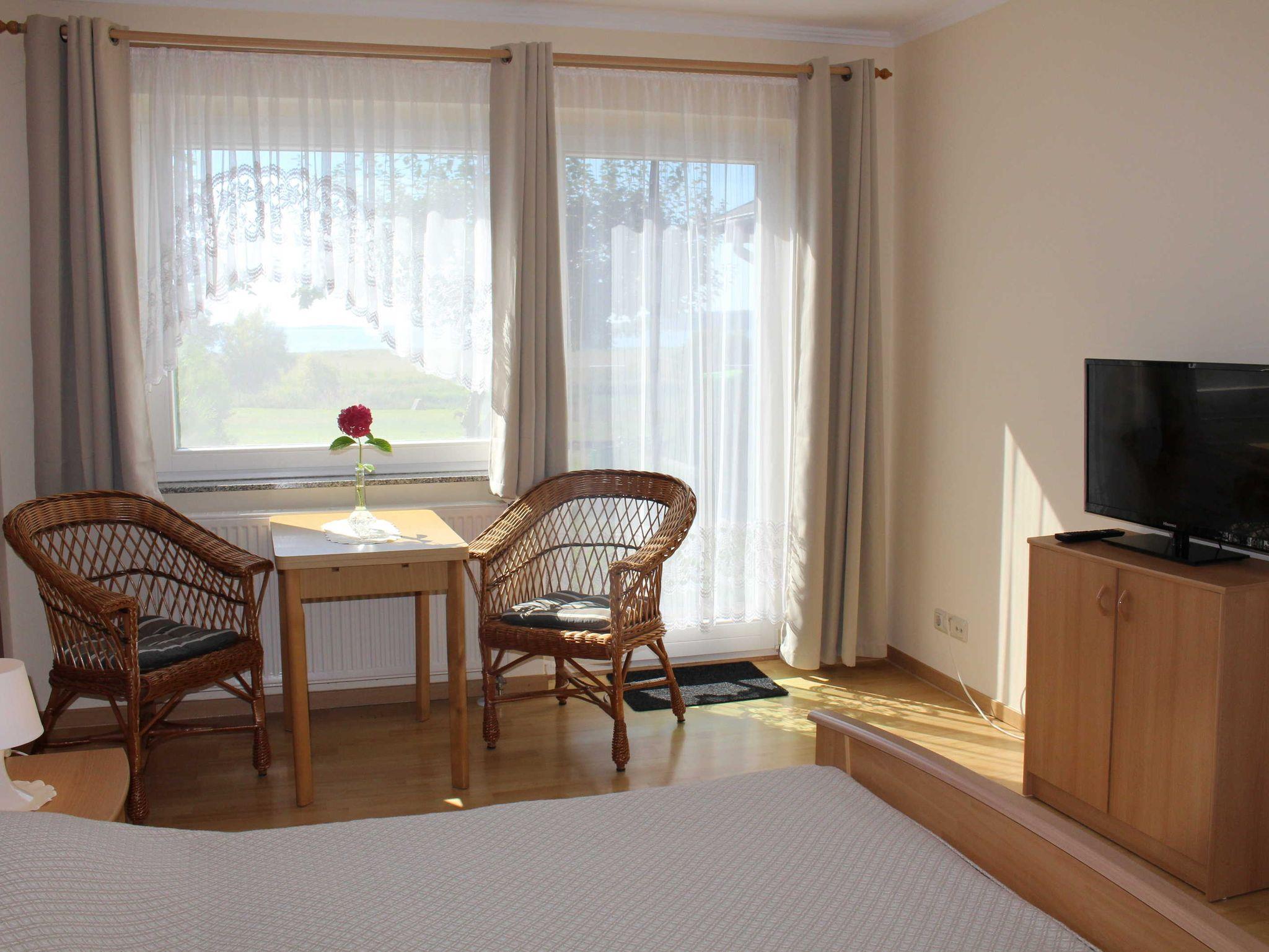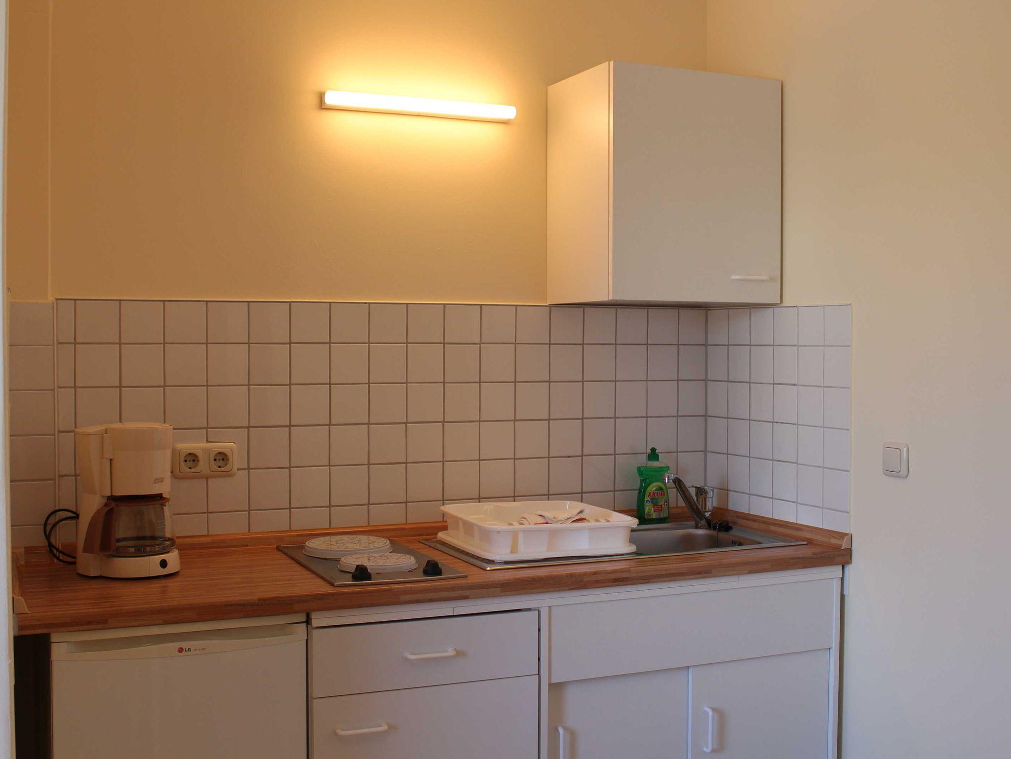 Die Ferienwohnung hat einen separaten Zugang und ist ebenerdig gelegen. Sie verfügt über einen kombinierten Wohn- und Schlafbereich mit Doppelbett mit Zugang zur eigenen Terrasse, einer Pantryküche mit üblicher Ausstattung, Sitzecke und Badezimmer (Du/WC).