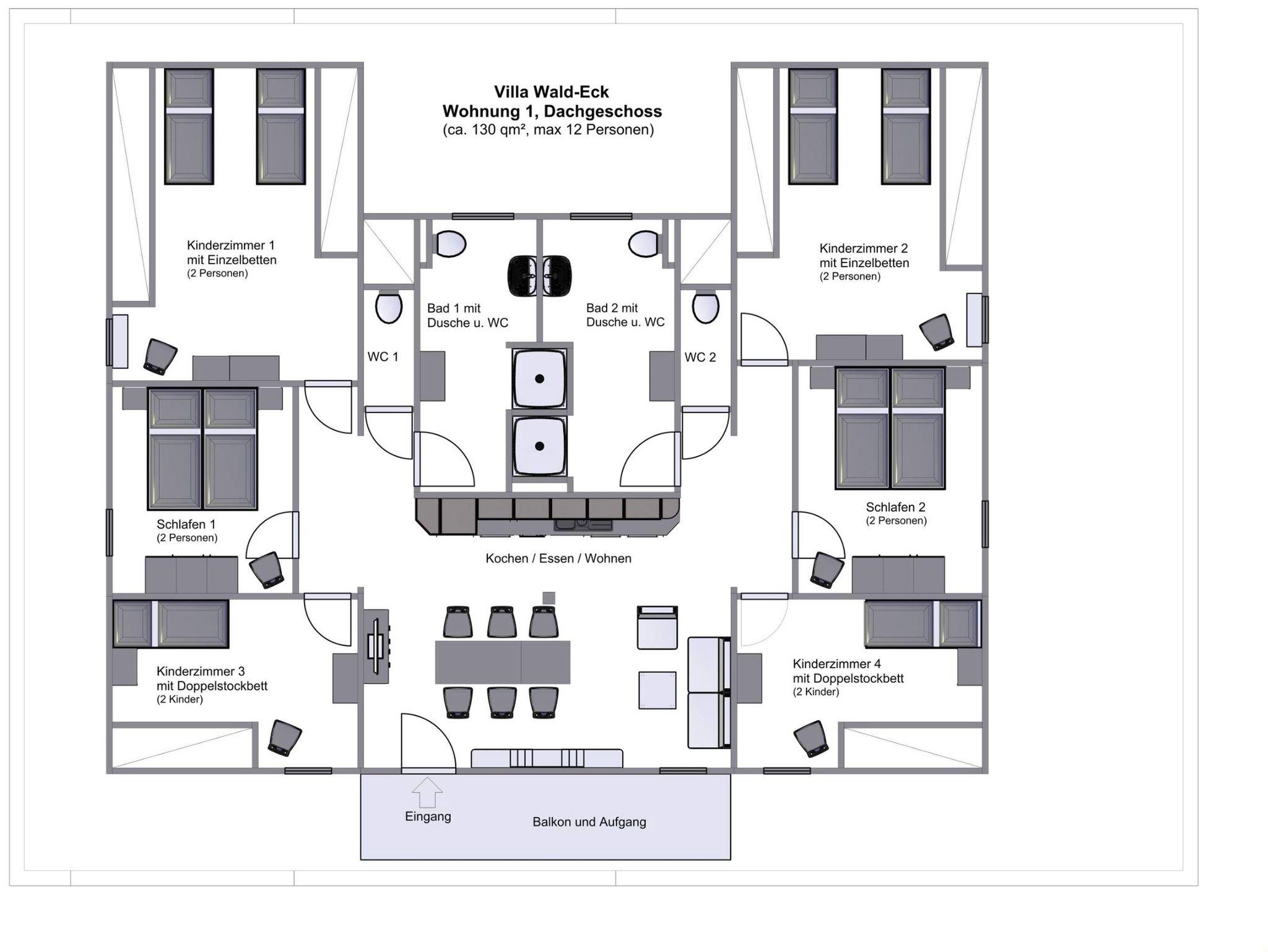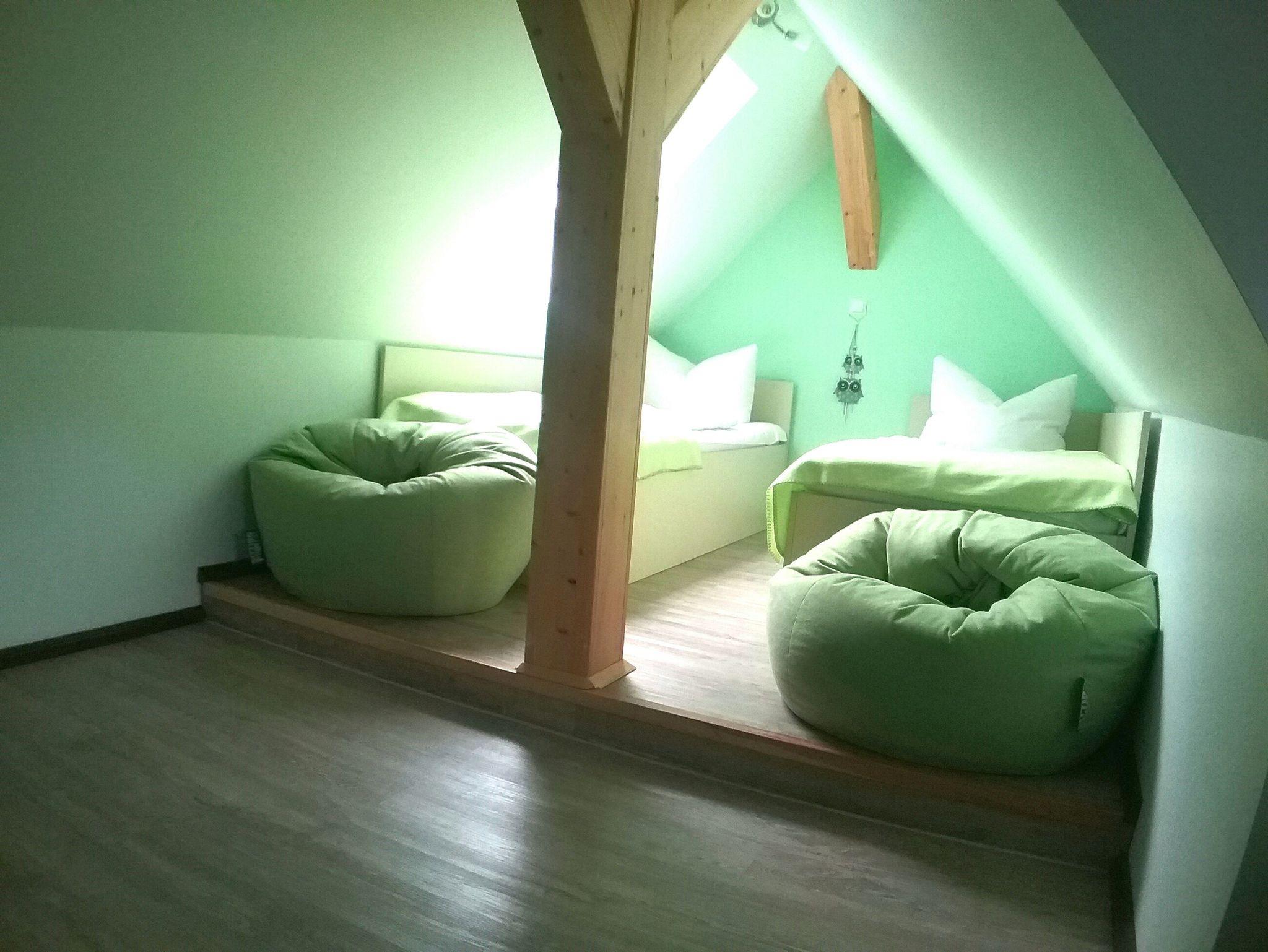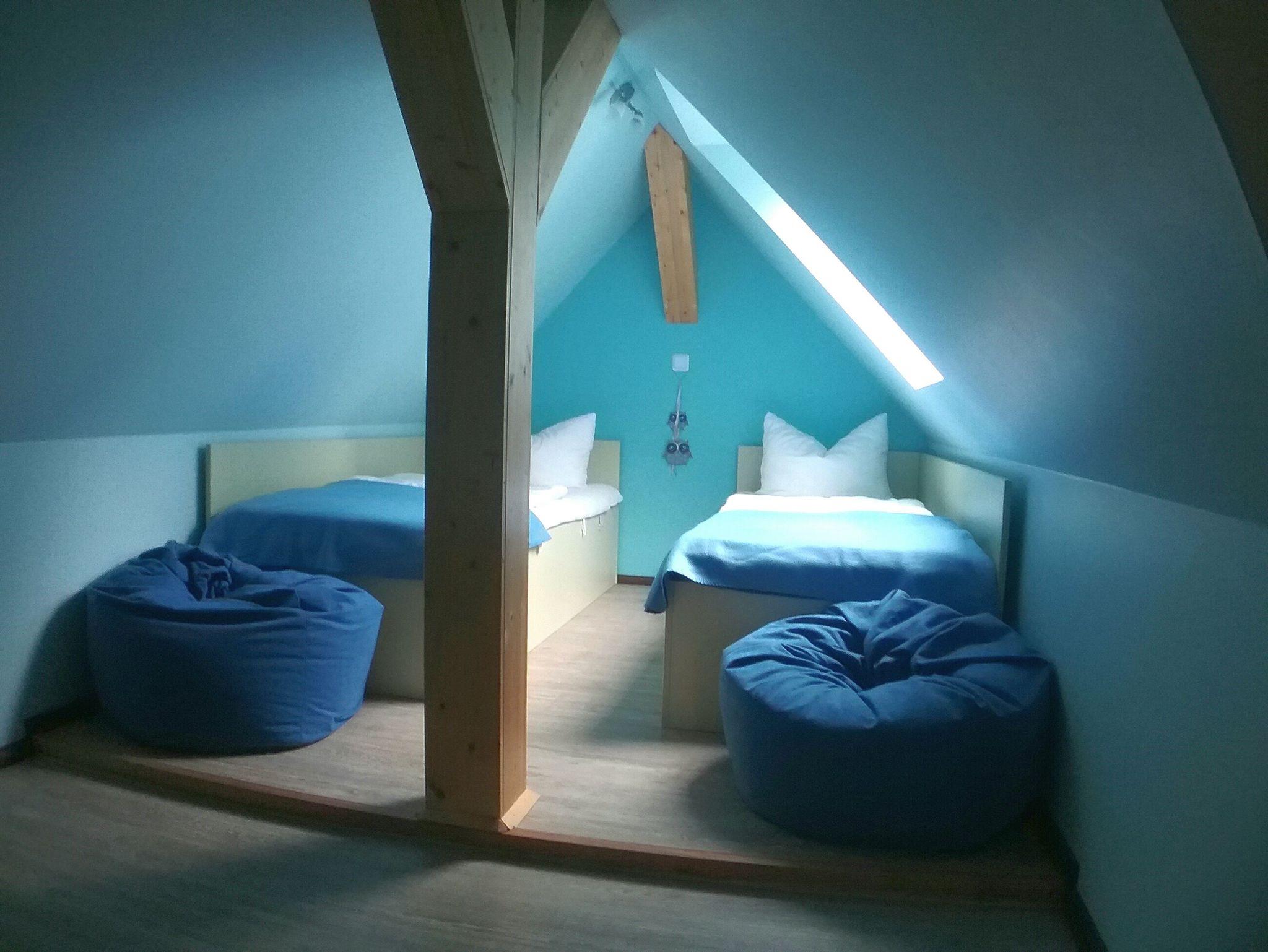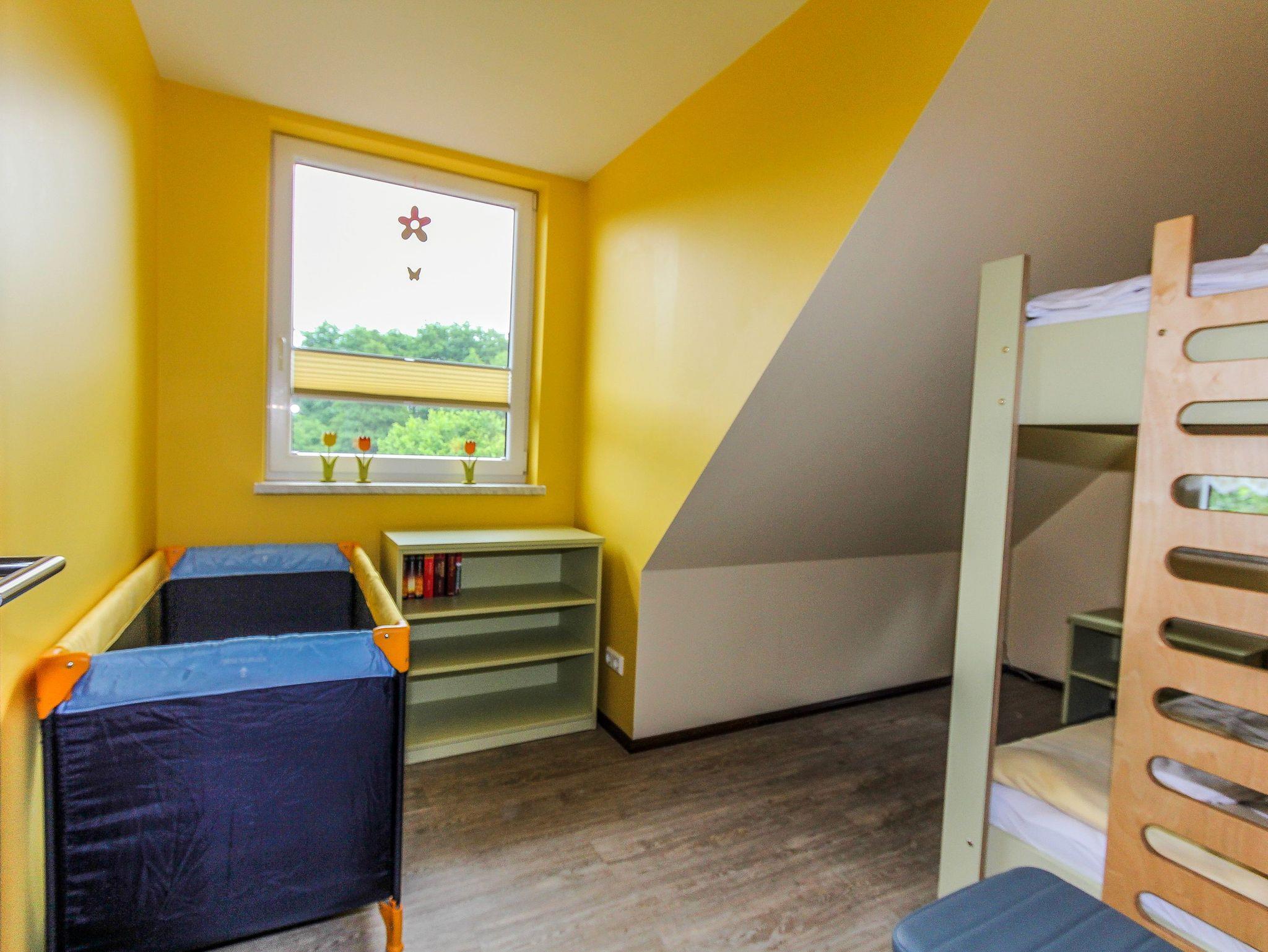 Bitte beachten Sie, dass in den Kinderzimmern Dachschrägen vorhanden sind.