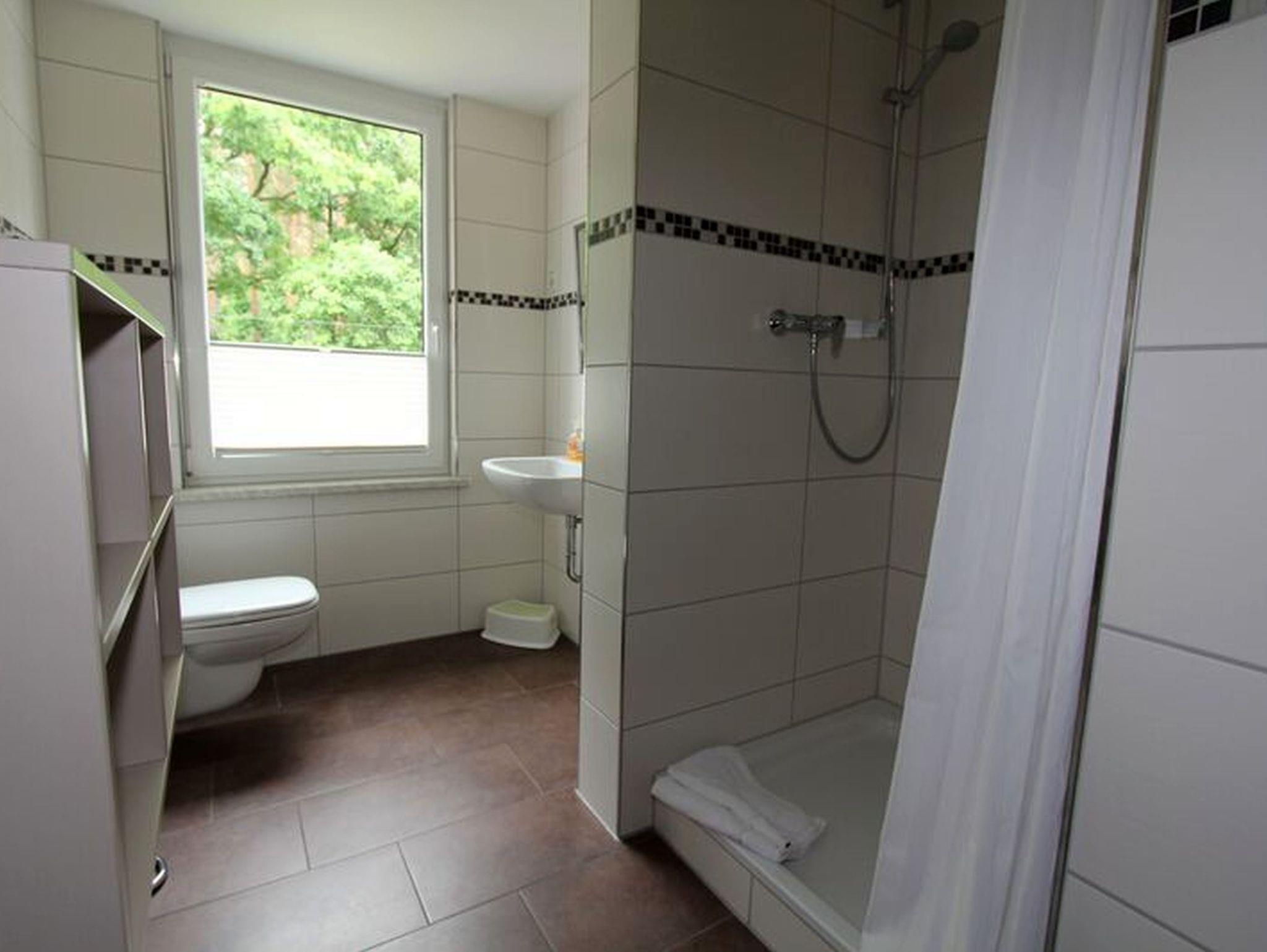 Beide Bäder sind gefliest und haben jeweils eine Dusche, sowie ein WC.