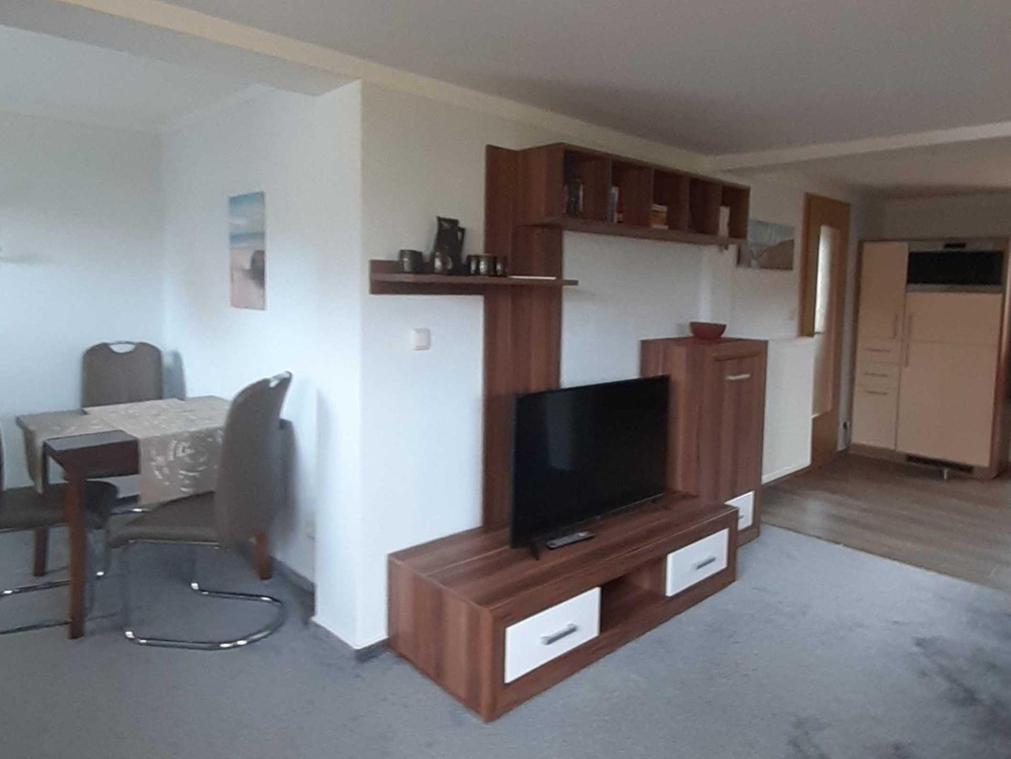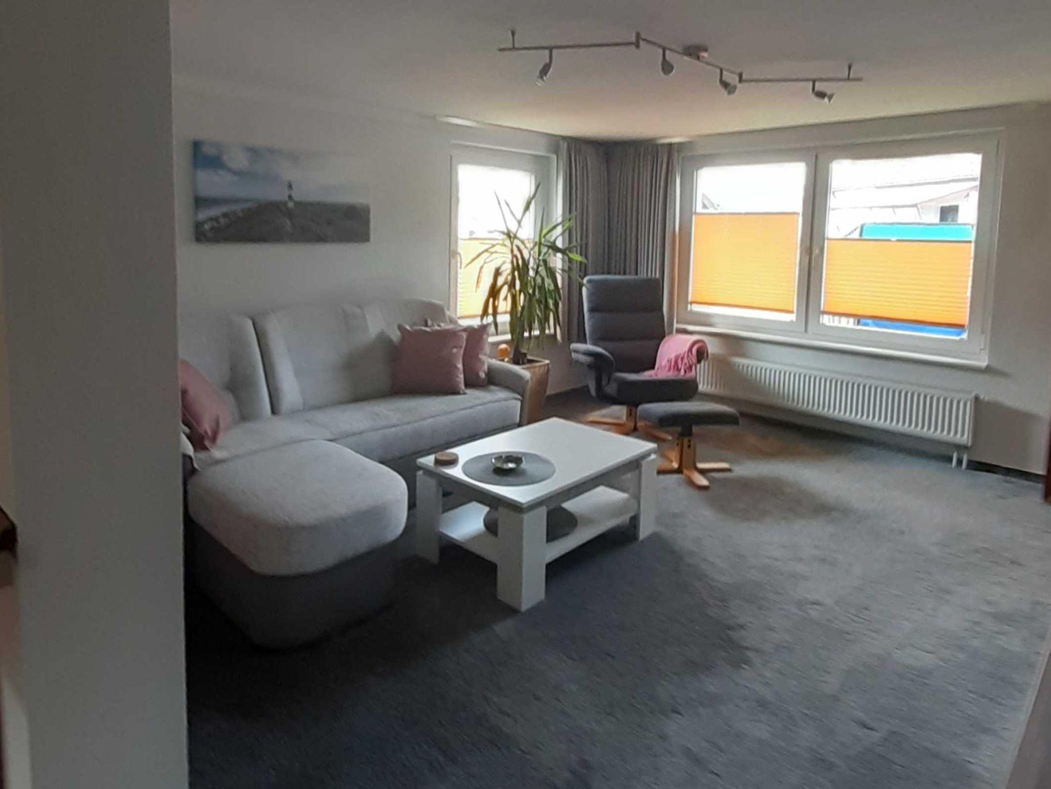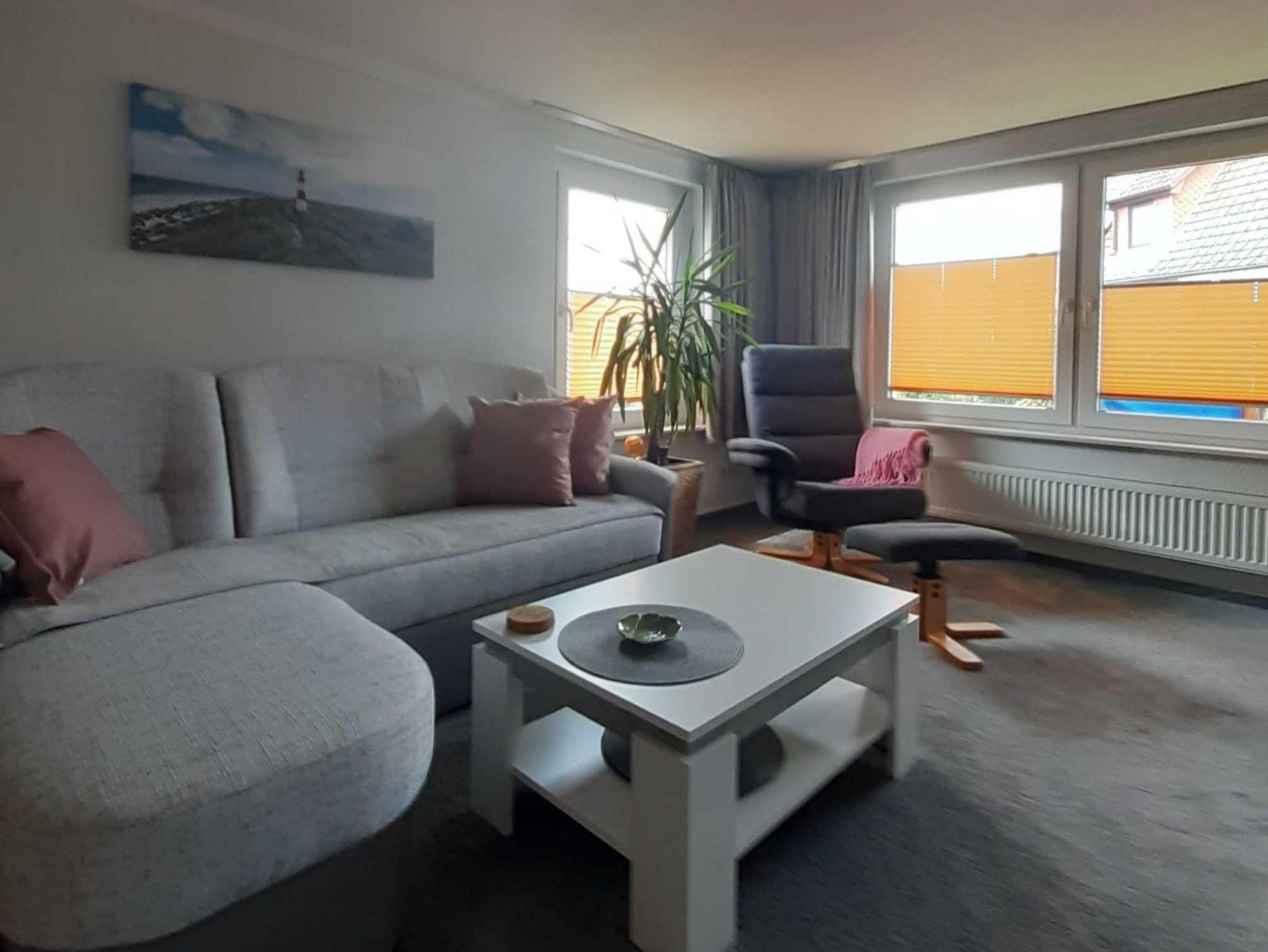 Im Erdgeschoss befindet sich der hell und freundlich eingerichtete Wohnbereich mit gemütlicher Couchecke, Couchtisch, Anrichte und Sat-TV.