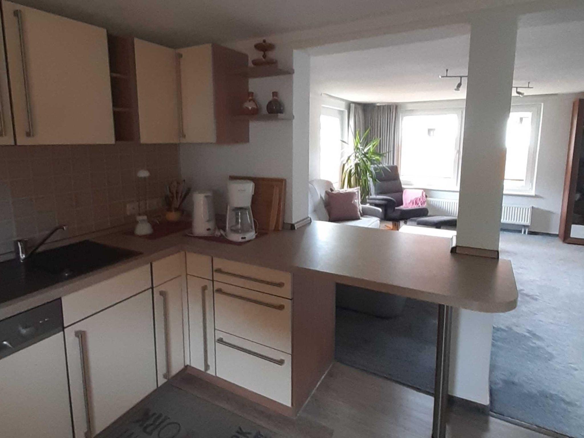 Weiterhin gibt es eine komplett eingerichte Küche (Geschirrspüler, Cerankochfeld, Backofen, Kühl-und Gefrierschrank, Mikrowelle, Toaster, Kaffeemaschine usw. ) und auch eine Essecke.