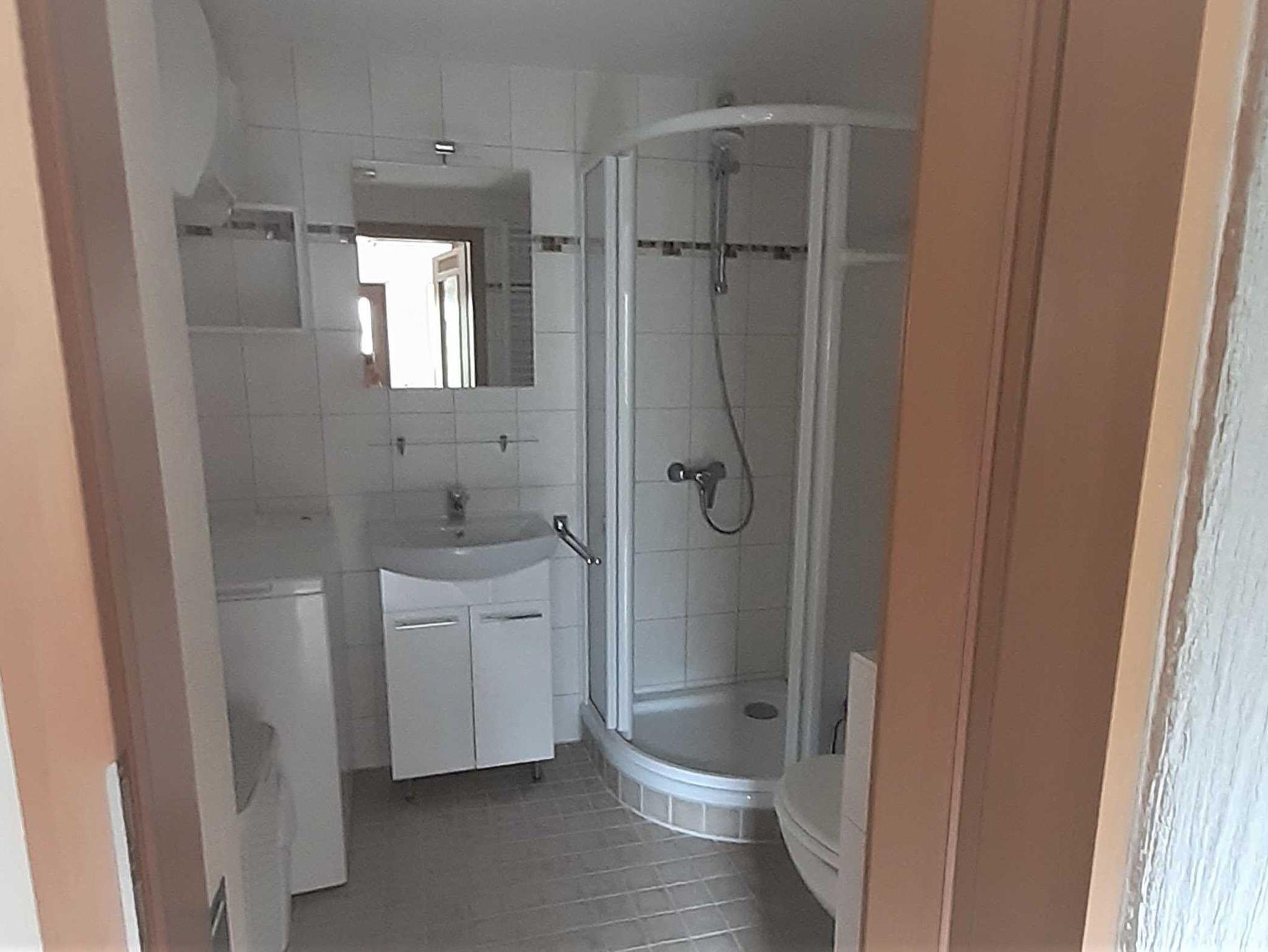 Das Badezimmer ist ausgestattet mit Dusche und WC.