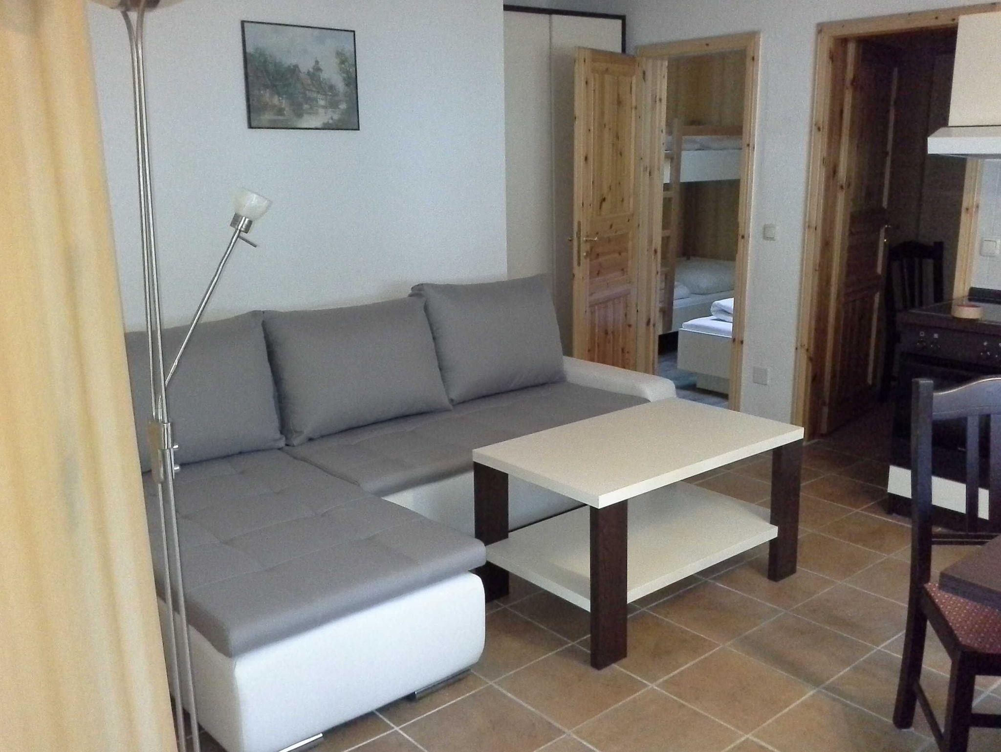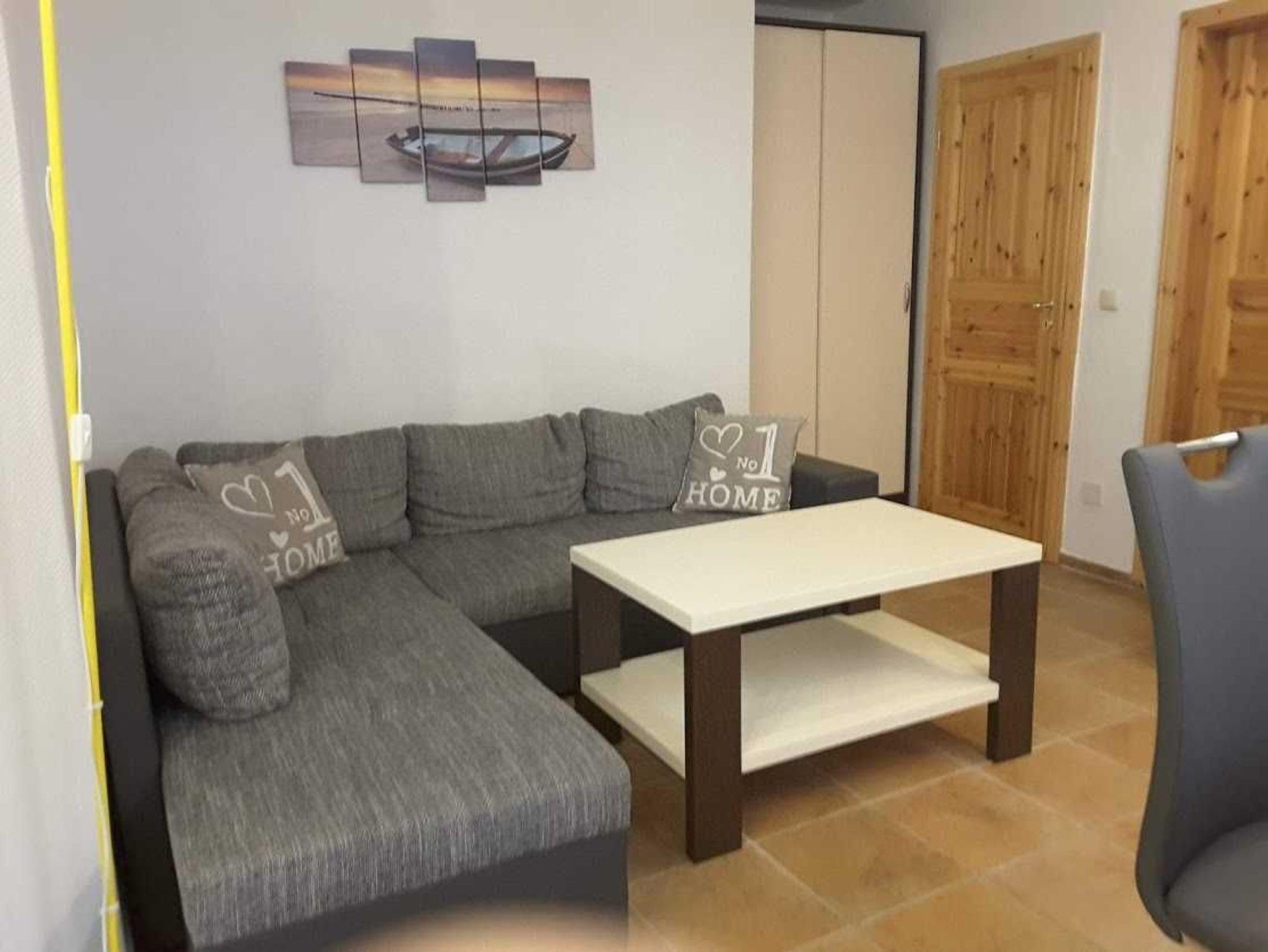 Die Ferienwohnung wurde 2014 saniert. Hier stehen Ihnen 2 Schlafzimmer zur Verfügung. In dem einem Zimmer befindet sich ein Doppelbett 180x200 cm und im anderen Zimmer sind 2 getrennt stehende Betten. Die Möbel sind von einem Tischler in hellem Design angefertigt. Eine ausklappbare Schlafcouch befindet sich im Wohnraum.