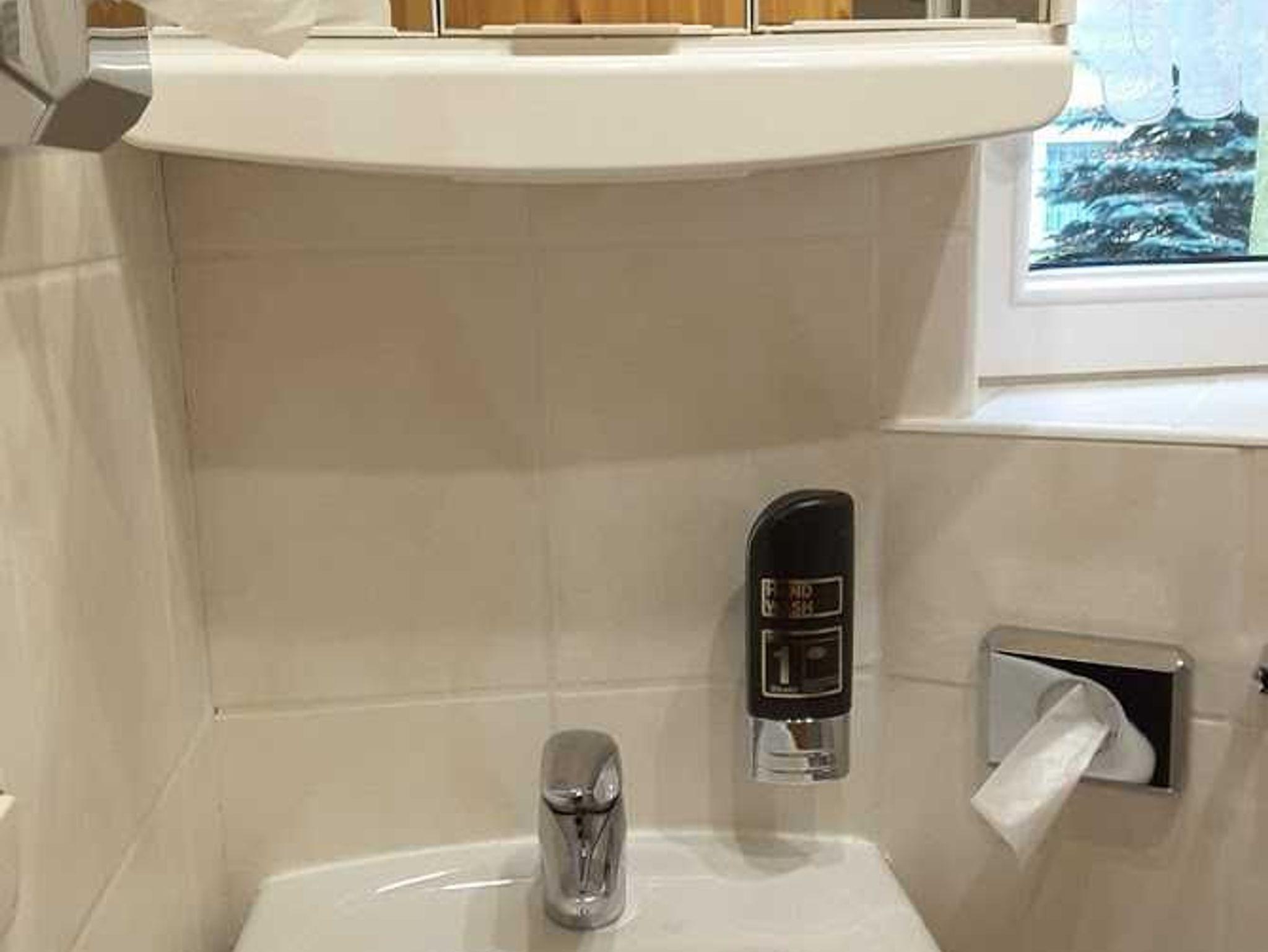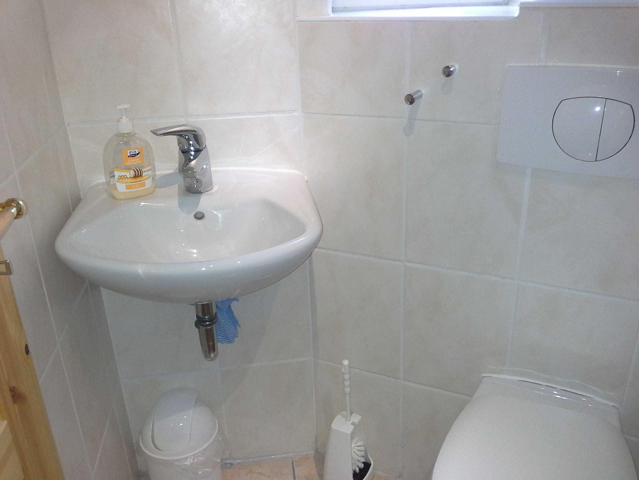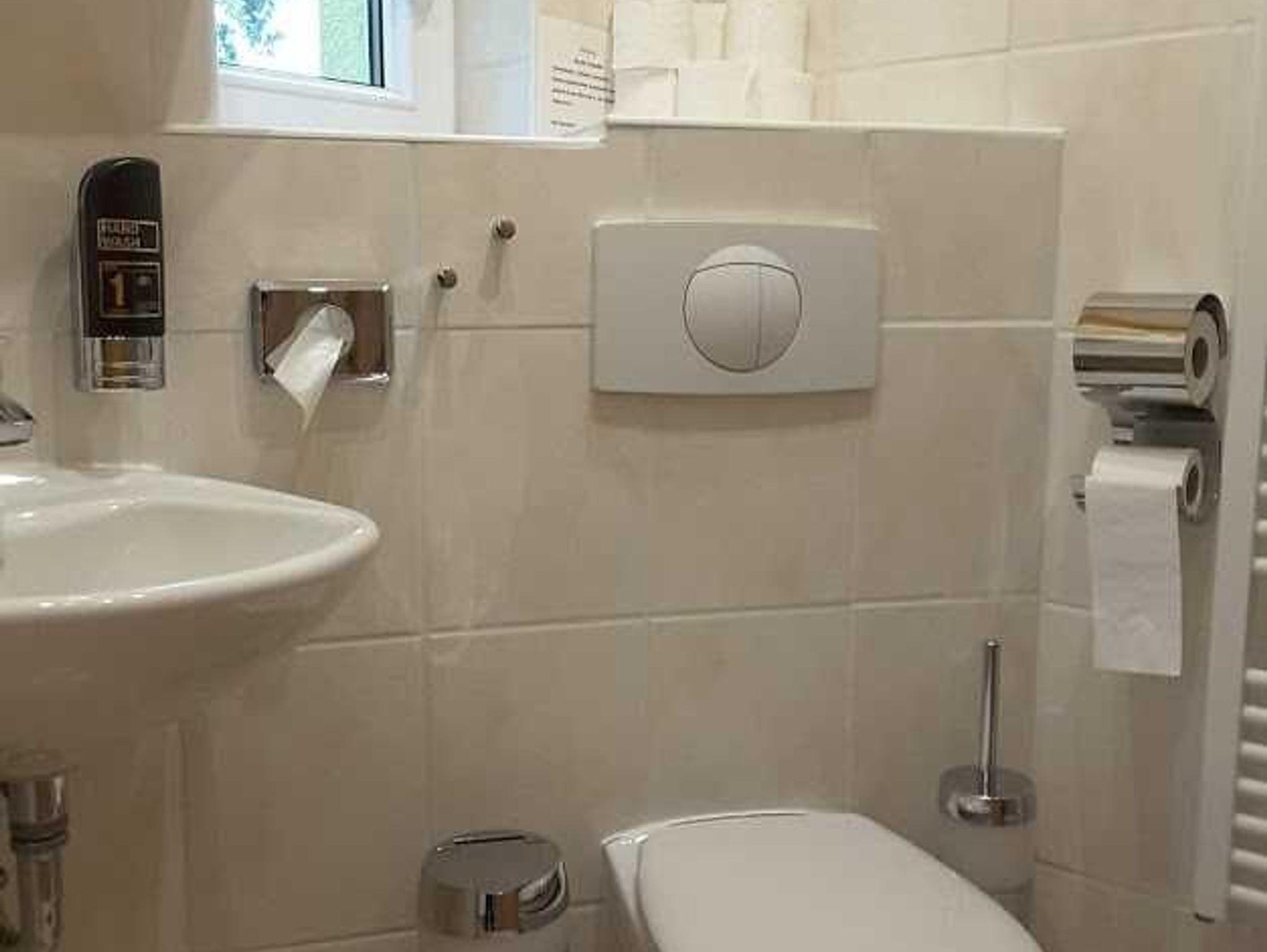 Im Badezimmer befinden sich Dusche und WC.