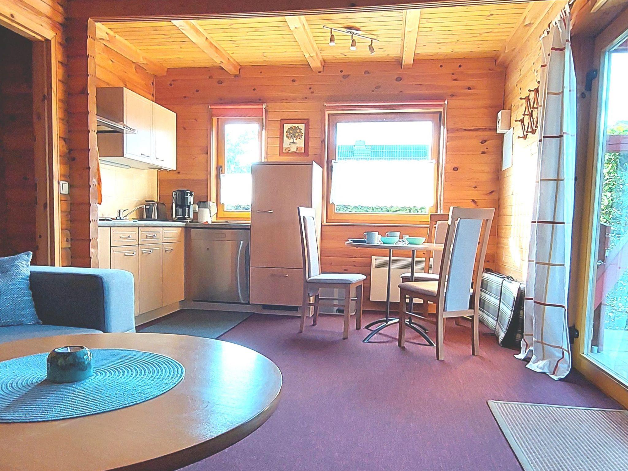 Verleben Sie Ihren Urlaub in einer gemütlichen Ferienwohnung mit separaten Eingang in einem Holzhaus. Sie können mit 2 Personen ein Wohnzimmer mit Küchenzeile, ein Schlafzimmer, ein Bad und eine teilüberdachte Terrasse nutzen. Es ist eine sehr gepflegte Nichtraucherwohnung. Ein PKW-Stellplatz ist ebenfalls vorhanden.
