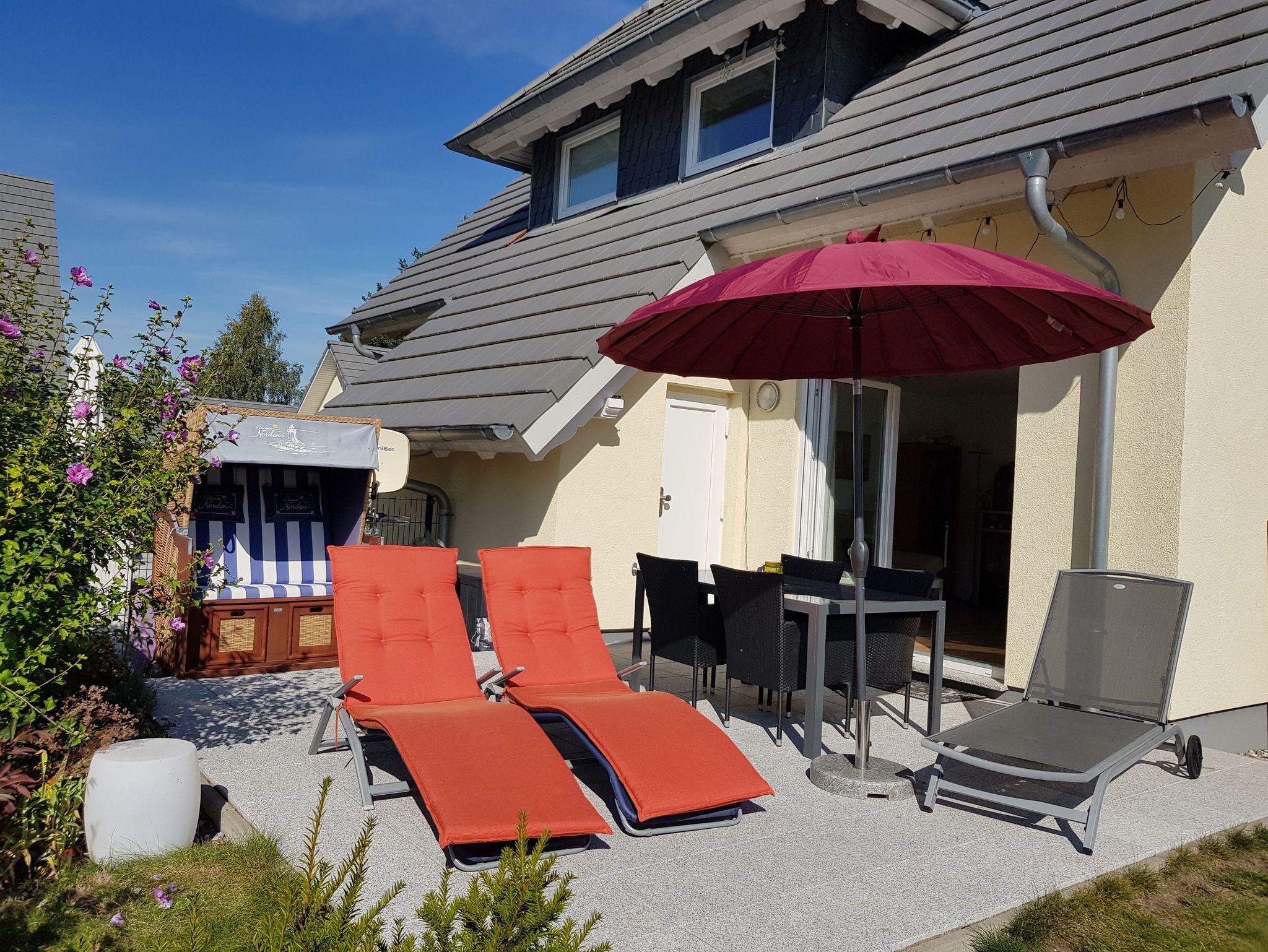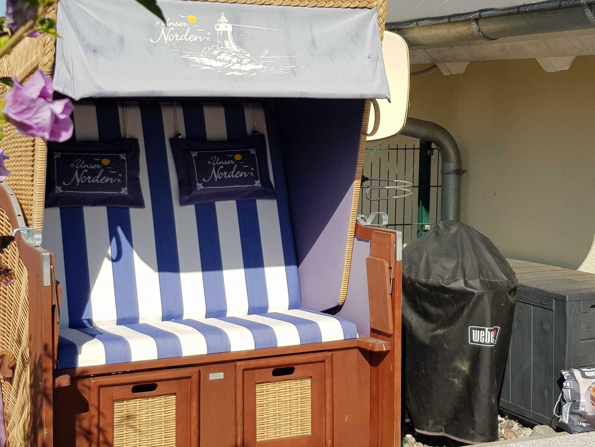 • Möblierte Terrasse mit Strandkorb und ungehindertem Wasserblick.