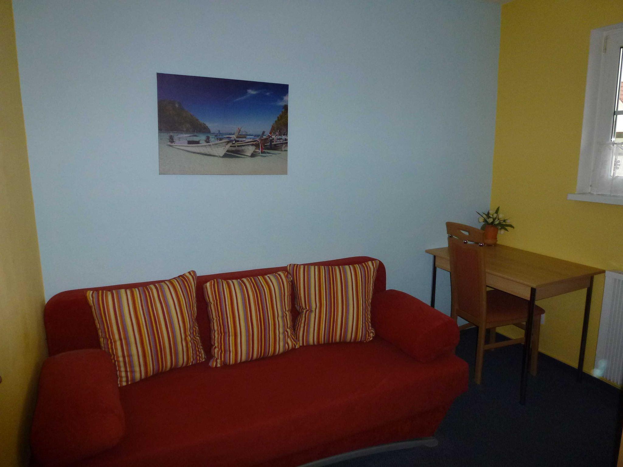 - 1 Schlafraum im OG, ausziehbare Doppelbettcouch (1600 cm x 2000 cm mit stabilen Federkern), Kleiderschrank