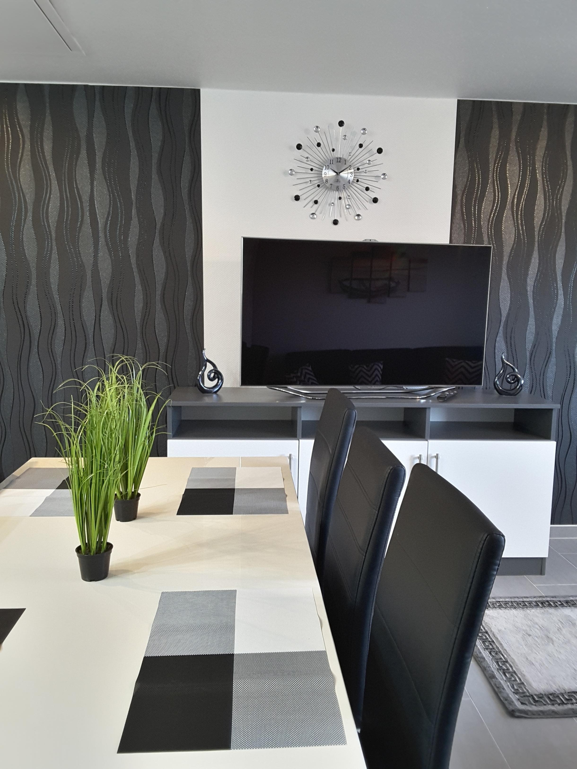 Die Wohnung verfügt über die Grundausstattung mit Kühlschrank, Herd, Kaffeemaschine, Wasserkocher und Sat TV.
