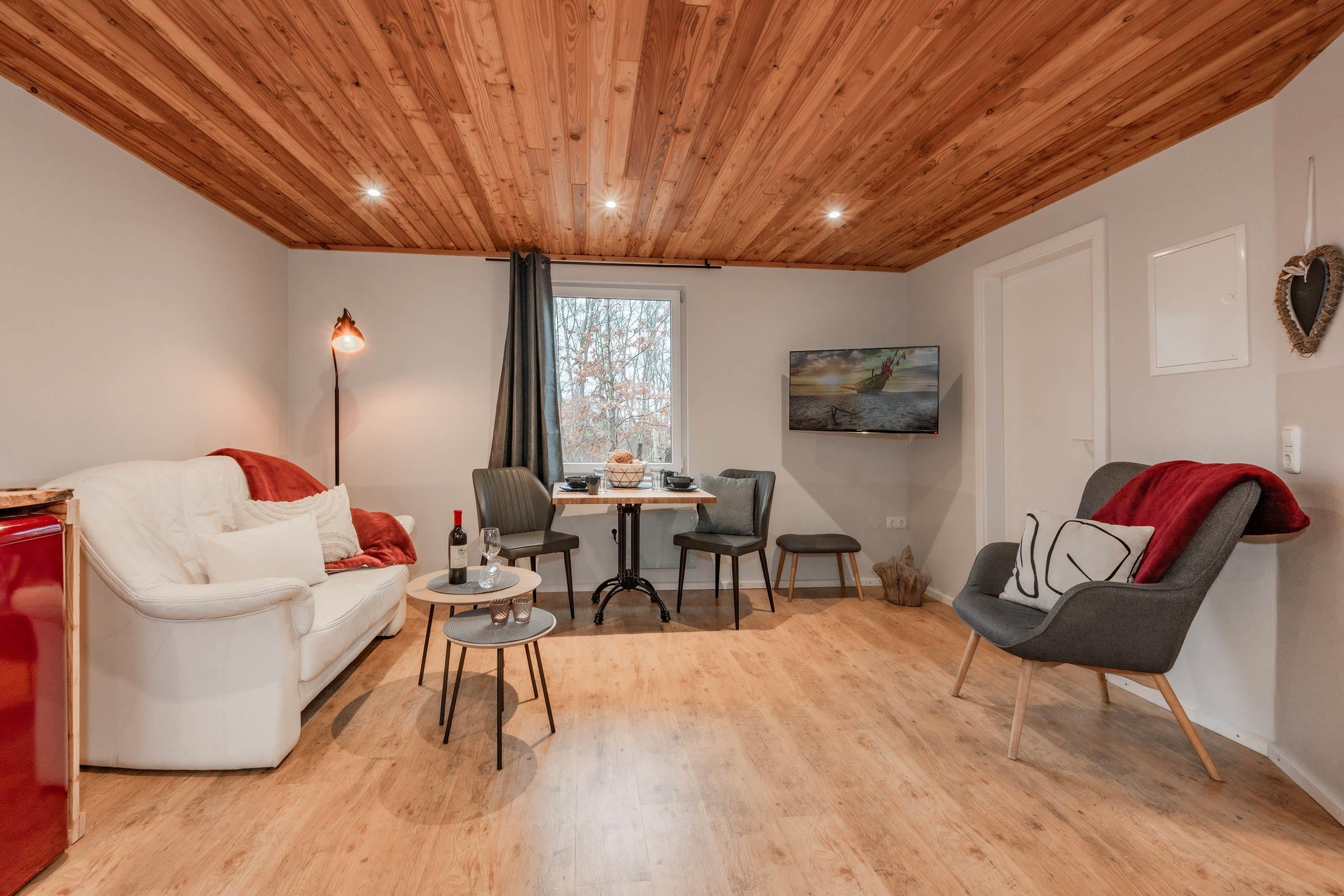 Ferienhaus für bis 2 Personen. Das Ferienhaus verfügt über 1 Schlafzimmer. Küche, Wohnzimmer, WC & Dusche und Flat-TV. Auf der hauseigenen Terrasse mit dazugehörigen Gartenmöbeln lässt es sich herrlich entspannen. Es besteht dazu noch die Möglichkeit vor der eigenen Haustür zu grillen. Reisebegleiter mit Fellnase sind hier herzlich Willkommen.