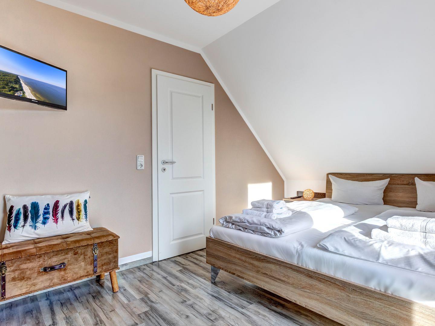 Erleben Sie erholsame Tage im Haus zum Achterwasser, Whg. 2 in Ückeritz, nur 1500 Meter vom Strand entfernt. Diese moderne Ferienwohnung im ersten Stock bietet Platz für bis zu vier Personen und ist ideal für Familien. Genießen Sie den Komfort einer voll ausgestatteten Küche, ein gemütliches Wohnzimmer mit Kamin sowie einen Balkon zur Entspannung. WLAN steht Ihnen ebenso zur Verfügung wie ein Privatparkplatz. Einkaufsmöglichkeiten und Restaurants sind in der Nähe. Ihre Auszeit beginnt hier.