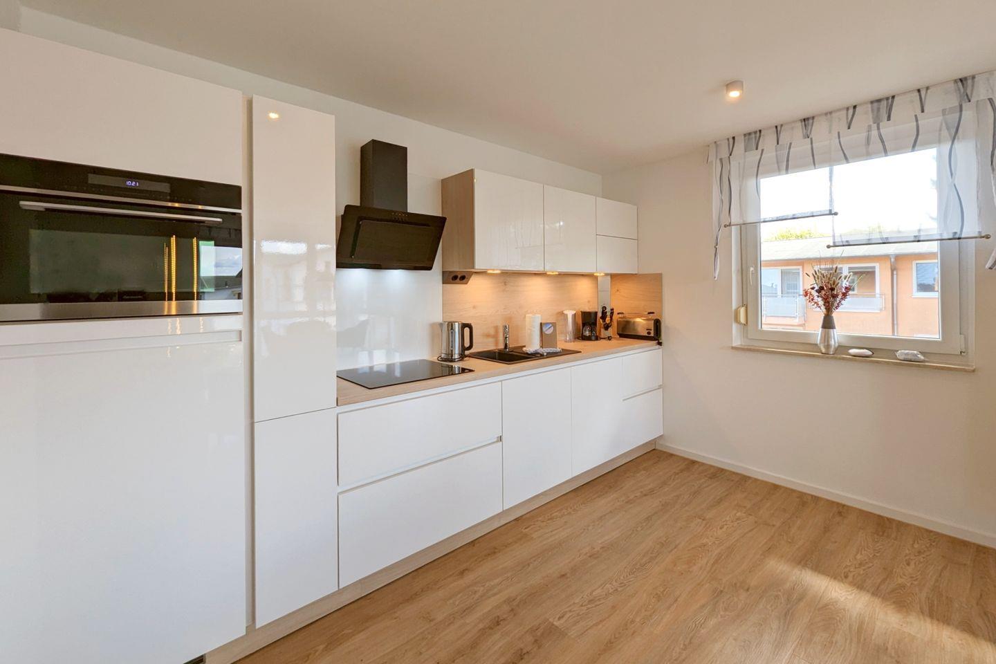 Die Wohnung verfügt über zwei gemütliche Schlafzimmer, die mit hochwertigen Vinylböden ausgestattet sind und eine ruhige Schlafumgebung bieten. Eine zentrale Heizungsanlage mit Fußbodenheizung sorgt dafür, dass es auch an kühleren Tagen immer angenehm warm bleibt. Im großzügigen Wohnzimmer finden Sie eine bequeme Sofaecke, einen Essbereich und moderne Unterhaltungstechnik, darunter ein TV mit internationalen Kanälen. Die offene Küche ist perfekt ausgestattet, um kulinarische Köstlichkeiten zuzubereiten. Genießen Sie beim Kochen den Blick auf die Natur durch die fliegengittergeschützten Fenster und nutzen Sie die Annehmlichkeiten wie Herd, Spülmaschine, Mikrowelle und Kaffeemaschine.