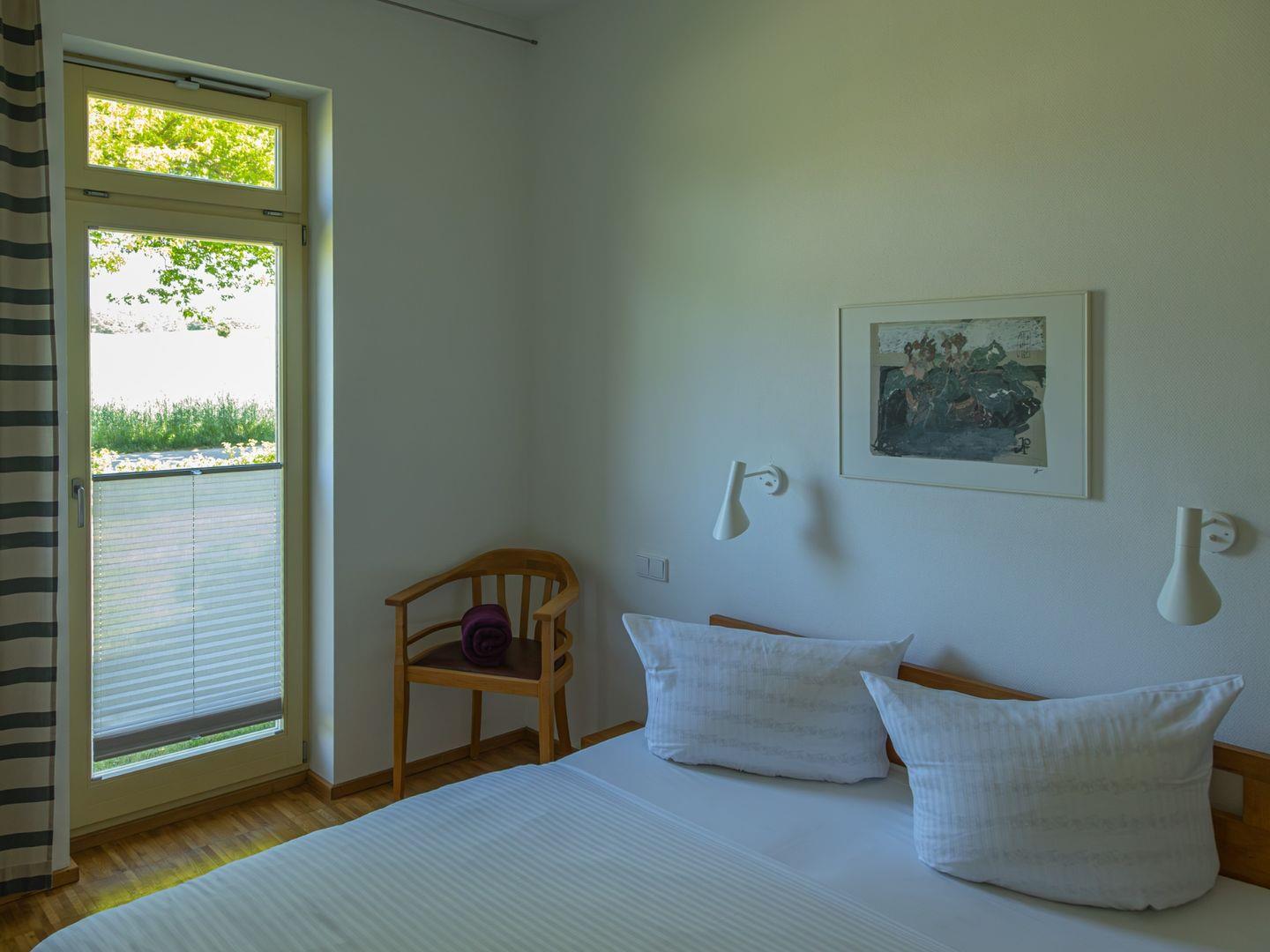Neben dem wunderschönen weiten Blick auf das Achterwasser und Wiesengrün finden Besucher eine behagliche und hochwertig eingerichtete Wohnung. Bilder und Fotografien norddeutscher Künstler, Bücher und CDs tragen zum Wohlbefinden bei.