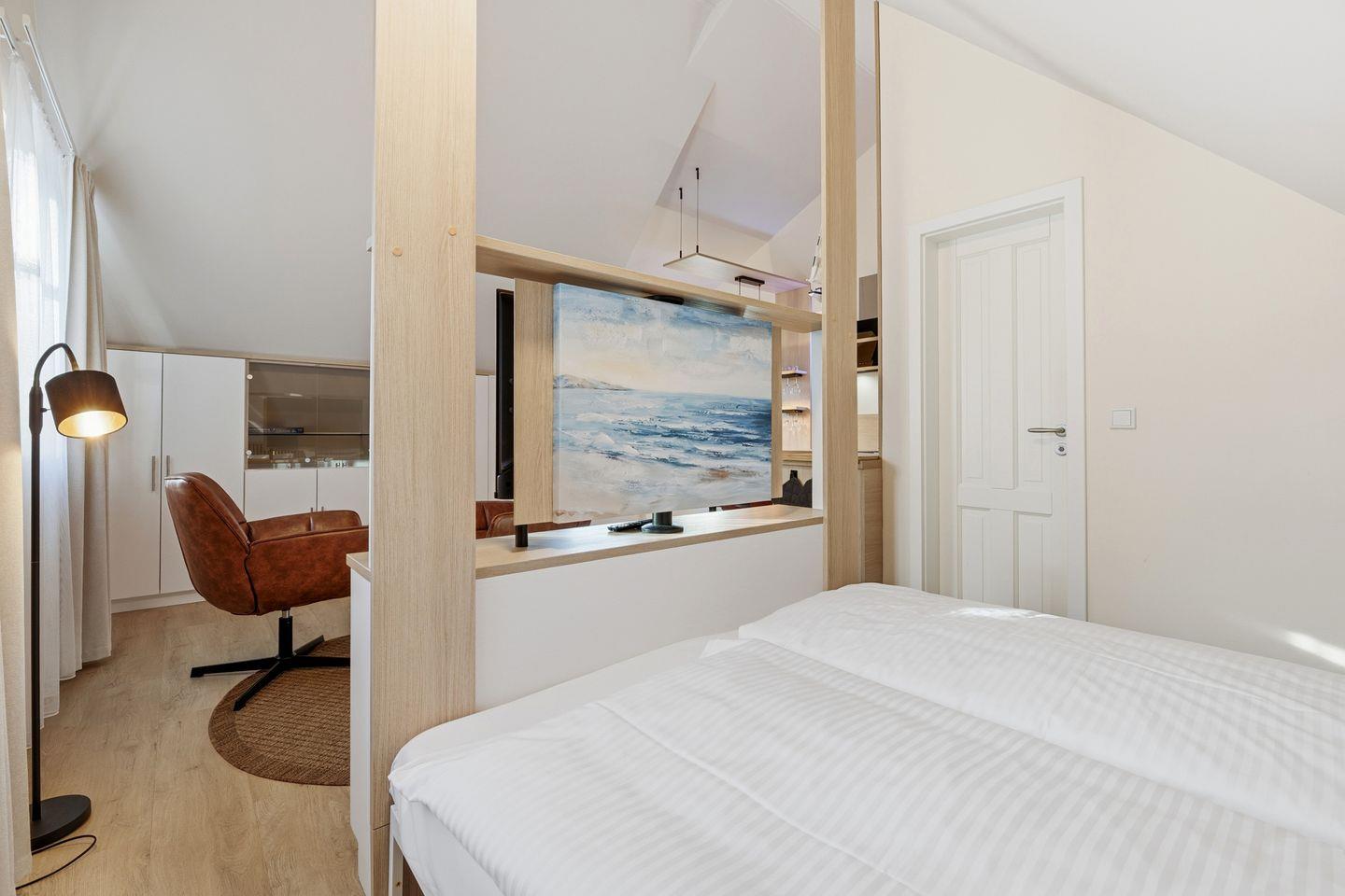 • durch Schiebetüren getrennten Wohn- und Schlafbereich