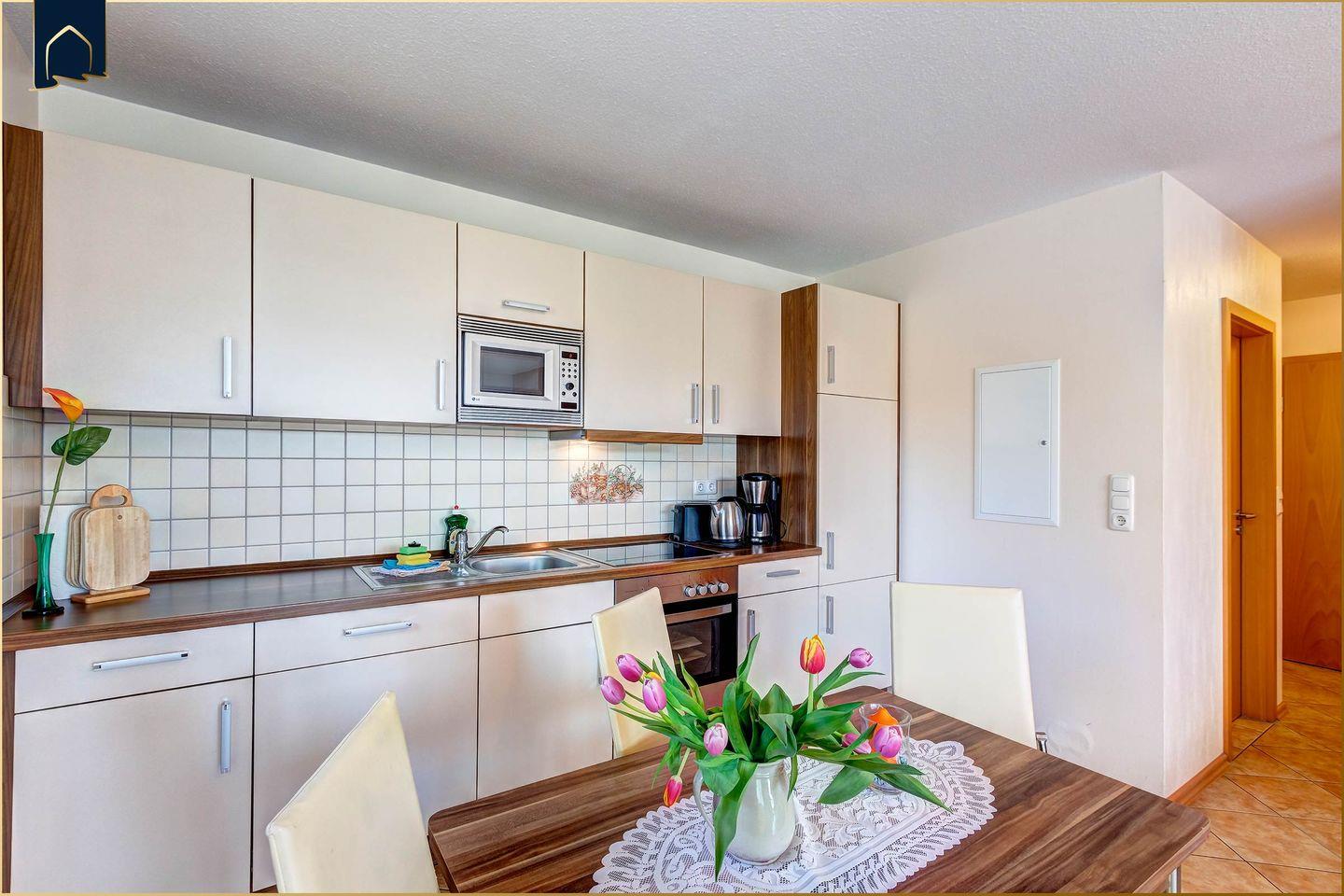 Die offene Küche lässt keine Wünsche offen: ausgestattet mit Herd, Backofen, Kühlschrank mit Gefrierfach, Mikrowelle, Spülmaschine, Toaster, Wasserkocher und Kaffeemaschine ist sie bestens vorbereitet für gemeinsames Kochen. Ein Esstisch im Wohnbereich bietet Platz für gesellige Runden. Auch die technische Ausstattung überzeugt: kostenloses WLAN, ein digitaler TV und ein modernes Badezimmer mit Dusche, Waschbecken, WC und Haartrockner sorgen für maximalen Komfort.