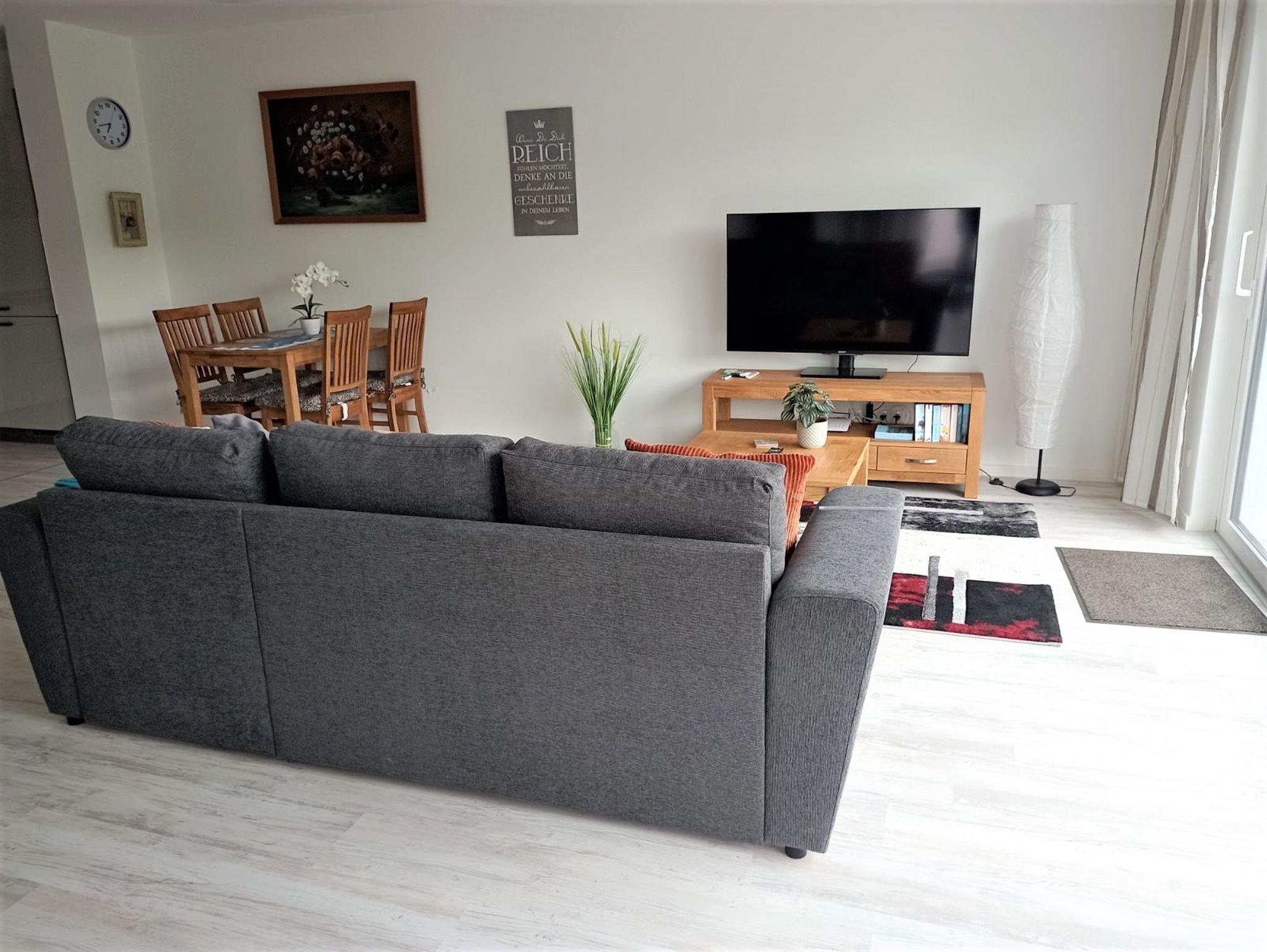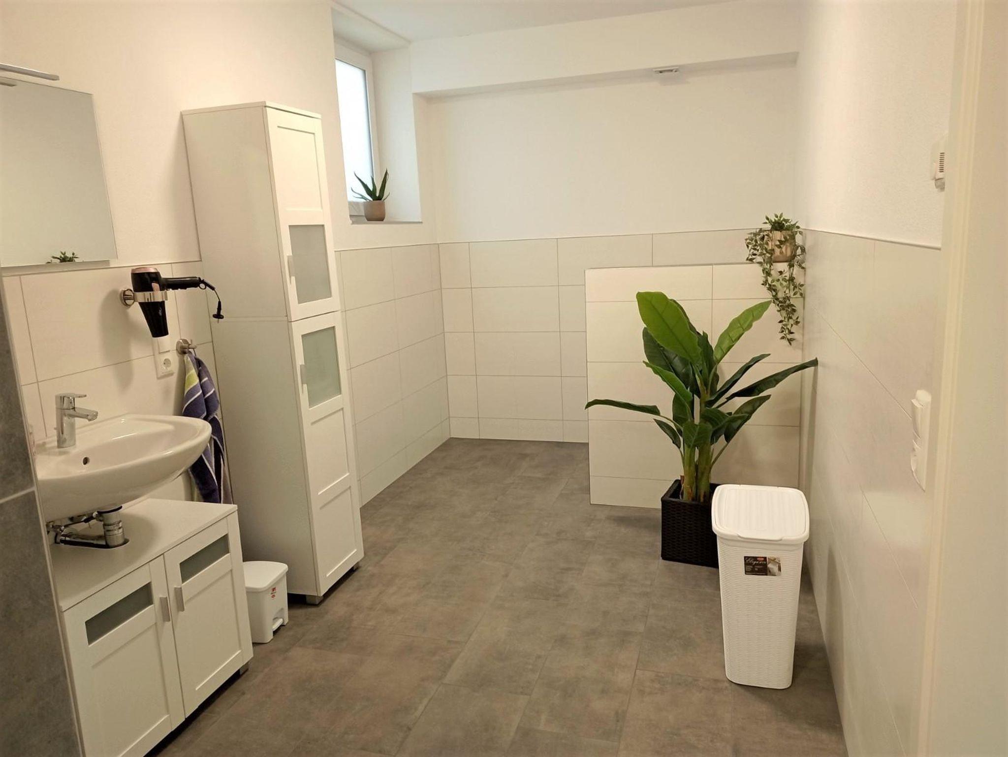 Diese gemütliche moderne neue 90,0 m² große Wohnung 1a Monika ist barrierearm. Der Parkplatz mit Wallbox ist neben der Wohnung. Die Terrasse ist barrierefrei begehbar / befahrbar. Kostenloses Wlan. Großzügige moderne Küche mit Essplatz im Wohnzimmer, und großzügiges Badezimmer mit Dusche.