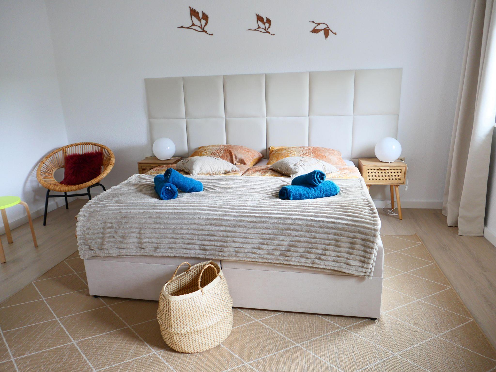 Die Schlafzimmer sind geschmackvoll eingerichtet und bieten Ihnen einen erholsamen Schlaf. Jedes Zimmer strahlt eine angenehme Atmosphäre aus und lädt zum Träumen ein. Das Badezimmer ist modern und stilvoll gestaltet und verfügt über alle Annehmlichkeiten, die Sie für Ihre tägliche Pflege benötigen.