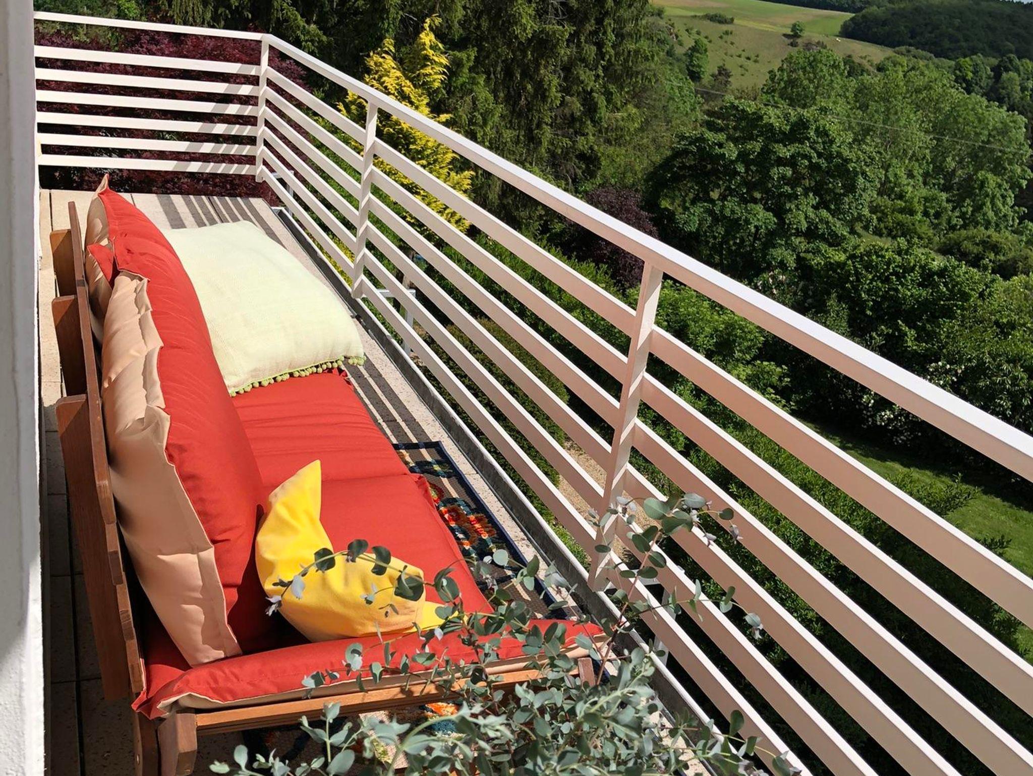 Mit traumhafter Aussicht auf den Garten und die Hügel des Betterberges ist unsere rund 75 Quadrameter große Ferienwohnung Das Krönchen im 1. OG für zwei Personen ausgelegt. Das Krönchen bietet euch ein geschmackvoll eingerichtetes Wohnzimmer, eine offene Küche mit Essplatz, ein großzügiges Bad, Schlafen im Himmelbett (1,60 m) und einen schönen Balkon mit herrlichem Blick in die Natur.