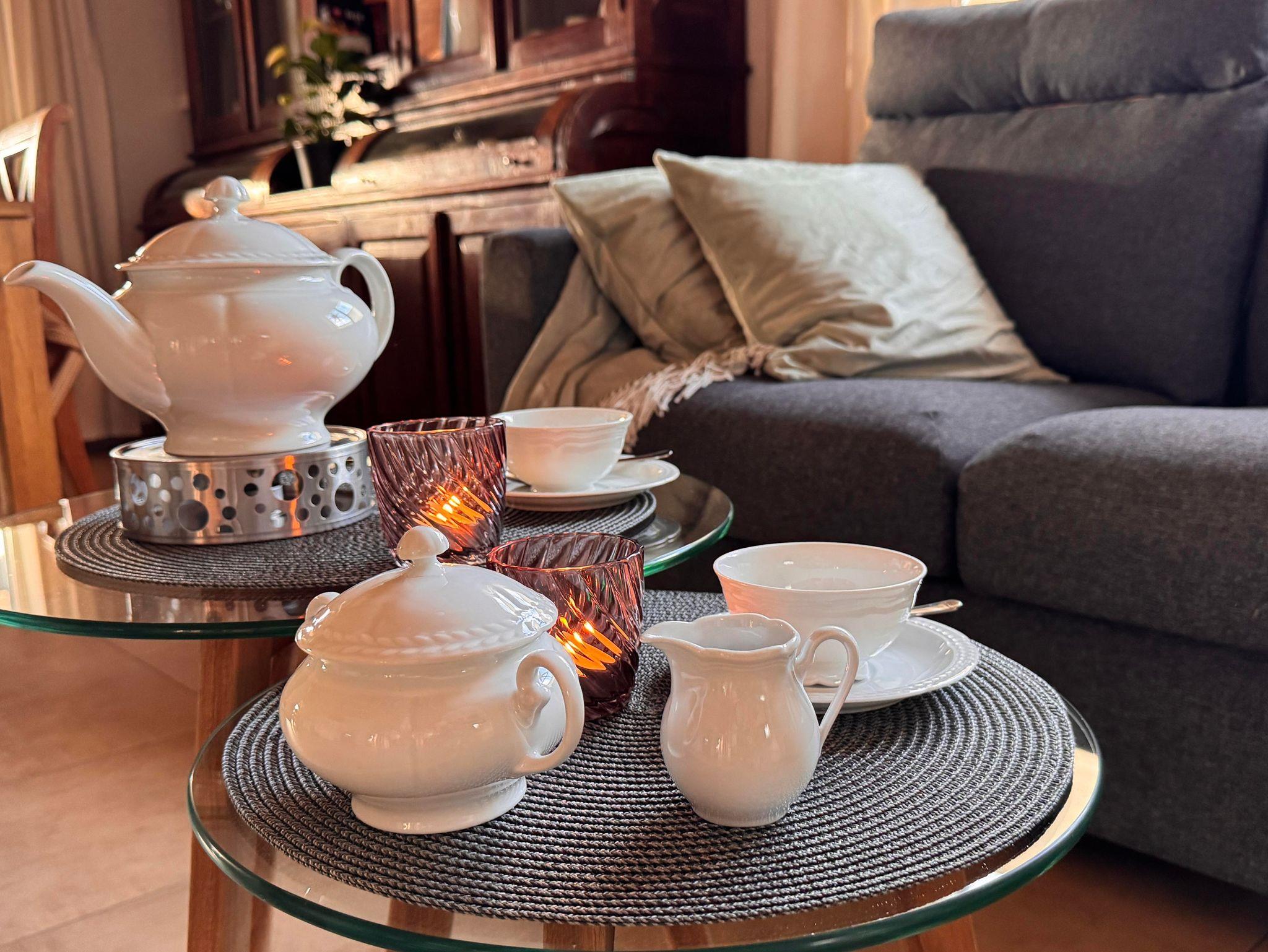 Die Küche ist mit gehobener Technik und umfangreichen Gebrauchsgegenständen ausgestattet. Hierzu gehören Herd mit Backofen und Dunstabzugshaube, Spülmaschine und großer Kühlschrank (ohne Gefrierfach). Weiterhin finden Sie in der Küche Filterkaffee-Maschine, Senseo-Pad-Maschine, Wasserkocher, Toaster, Waffeleisen, Handmixer, Stabmixer, Küchenmaschine, Brotschneidemaschine, ein elektrisches Fondue und einen Elektro-Grill.