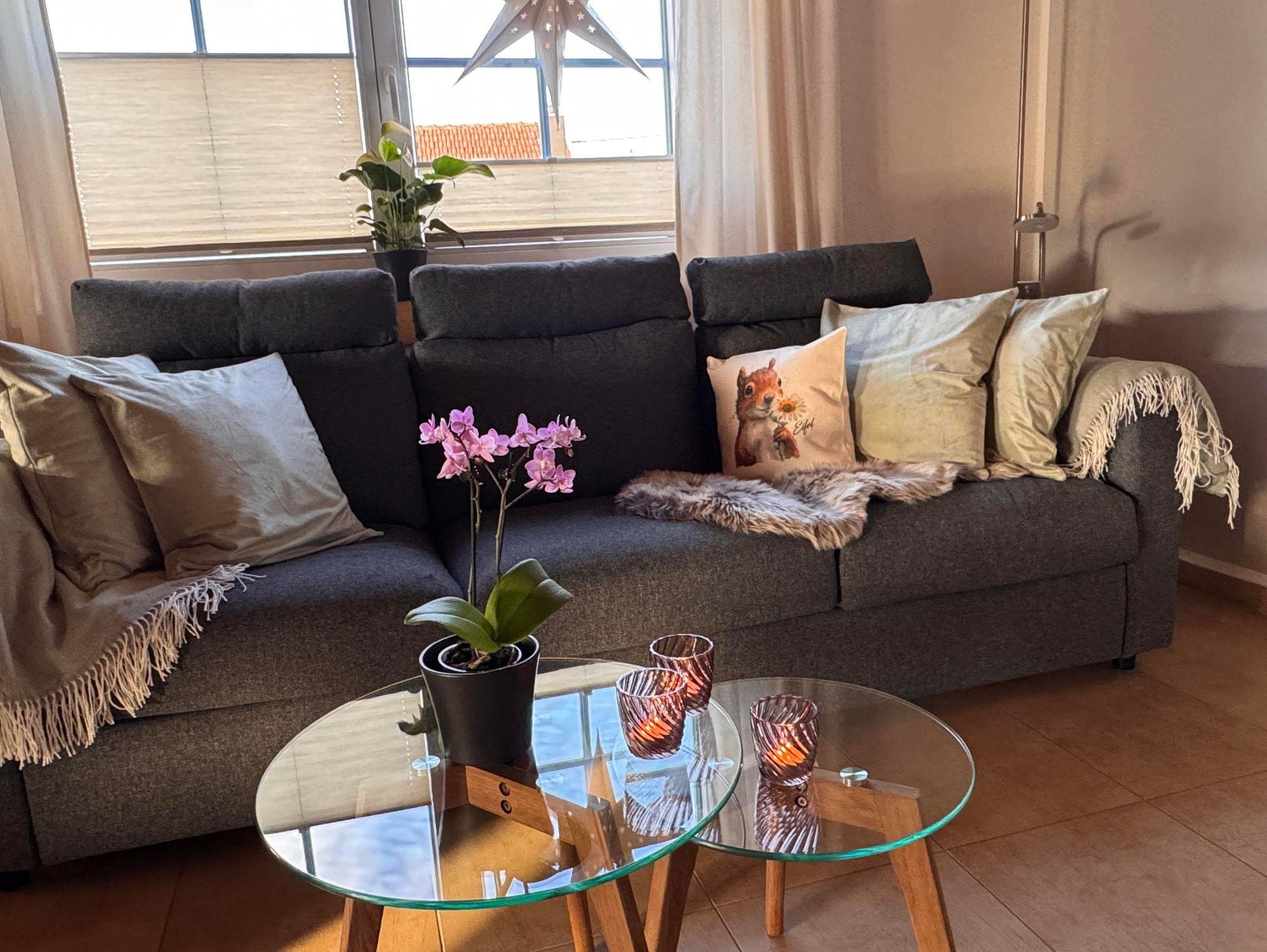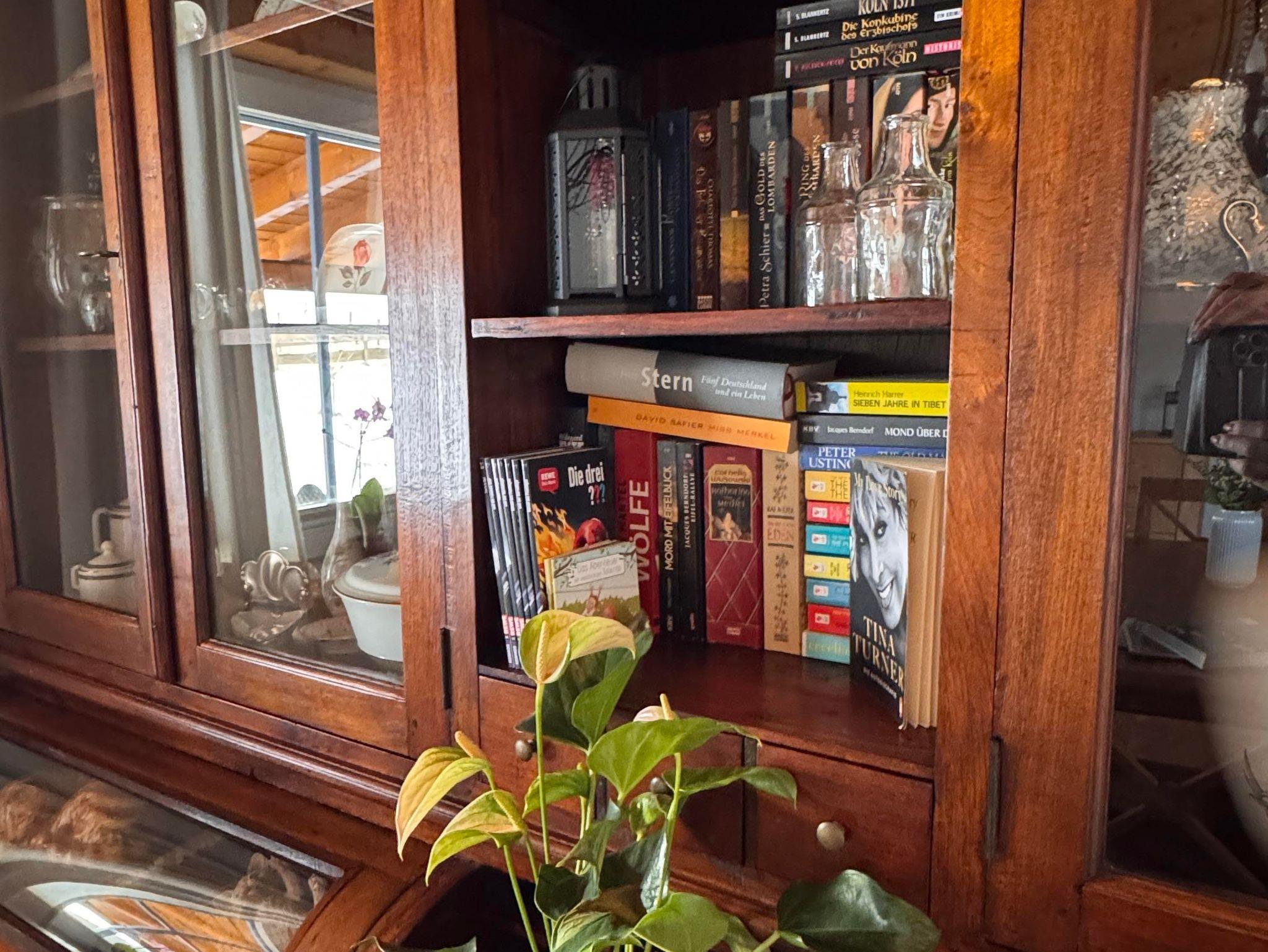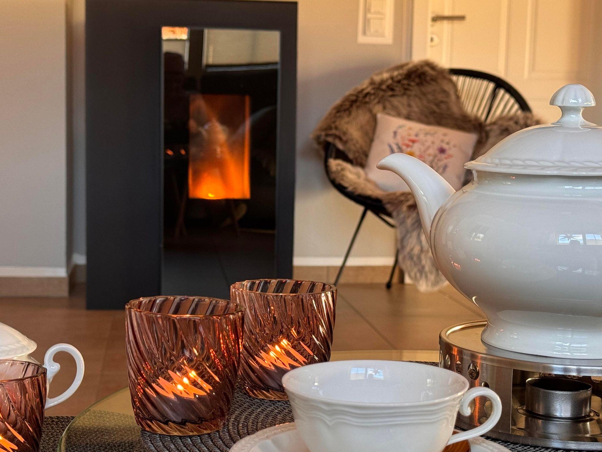 Der geräumige Wohn-/ Essbereich des Hauses verfügt über einen großen Esstisch mit 6 Stühlen und über eine komfortable gemütliche Couch mit Sessel. Zur Ausstattung gehört weiterhin ein großer schwenkbarer SAT-Fernseher, sowie eine kleine Musikanlage und ein gemütlicher Kaminofen. Für Ihren Aufenthalt stellen wir Ihnen eine Auswahl von Spielen, CDs, Zeitschriften und Büchern und sogar ein Fernglas zur Verfügung.