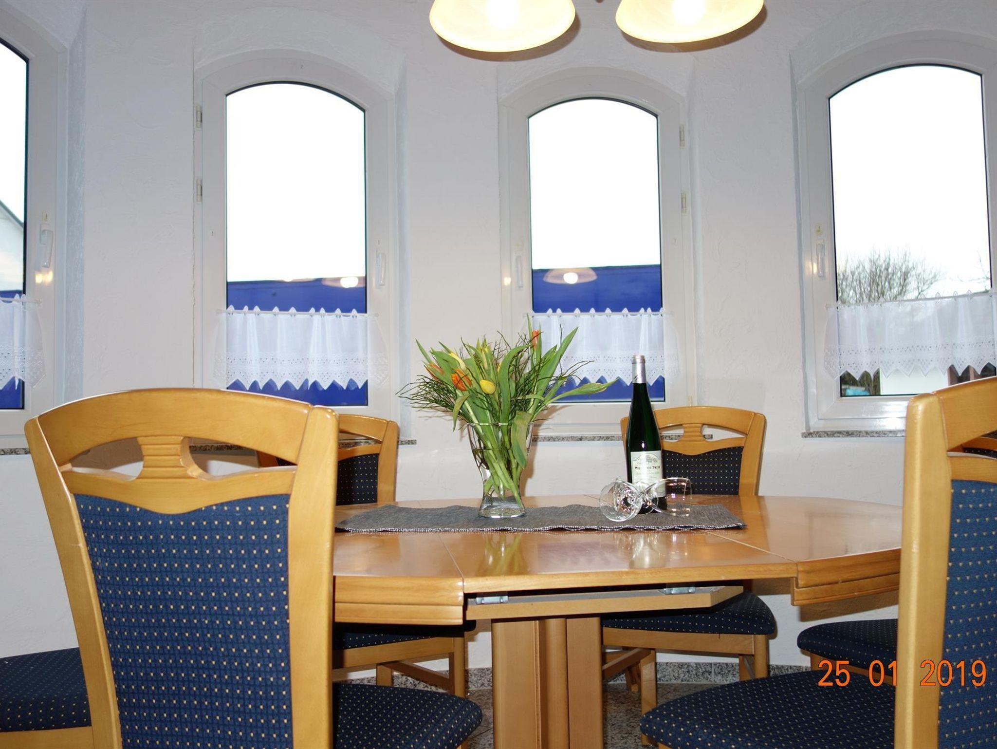 Unser Ferienhaus Ahbachtal liegt im kleinen Eifeldörfchen Üxheim mit einem herrlichen Blick auf die einzigartige Landschaft der Vulkaneifel. Insgesamt stehen Ihnen im Ferienhaus zwei Doppel- und ein Zweibettzimmer zur Verfügung. Im großzügigen Bad mit Dusche und Badewanne können Sie nach ausgiebigen Wandertouren wohlig entspannen. Küche, Esszimmer und Wohnzimmer sind offen, eine kleine Terrasse, die Richtung Dorf ausgerichtet ist, erreichen Sie direkt vom Wohnzimmer aus. Unsere Küche haben wir mit größter Sorgfalt ausgestattet, neben ausreichend Geschirr für insgesamt 6 Personen, finden Sie z.B. auch ein Handrührgerät, einen Wasserkocher etc.. Die überdachte, zweite Terrasse im hauseigenen Garten erreichen Sie durch den Hauswirtschaftsraum. Hier befindet sich auf Wunsch eine Waschmaschine.